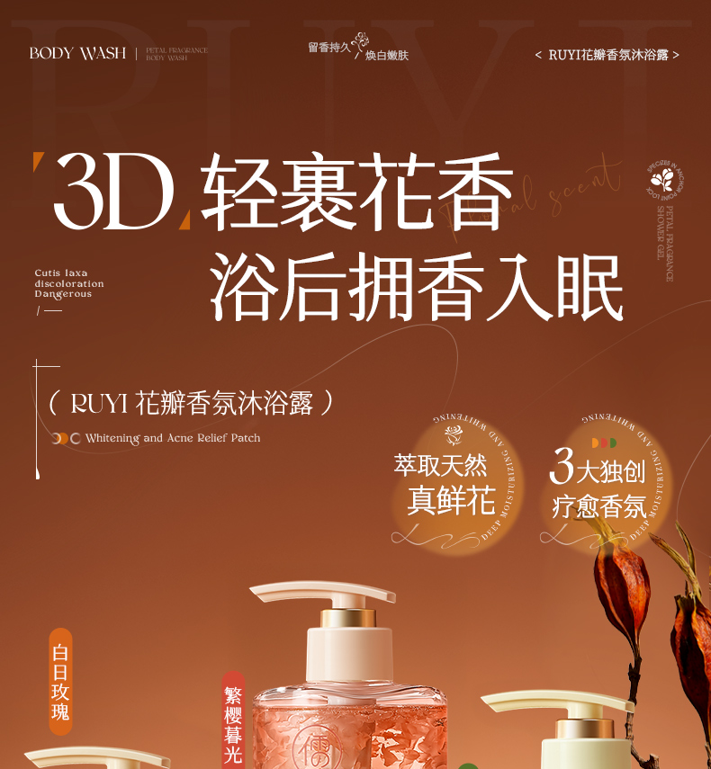 儒意花瓣香氛沐浴露500ml 花瓣香氛沐浴露持久留香滋润美白|儒意官方商城