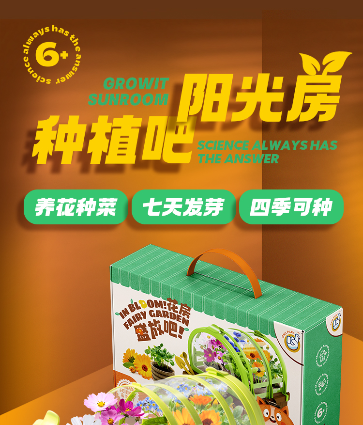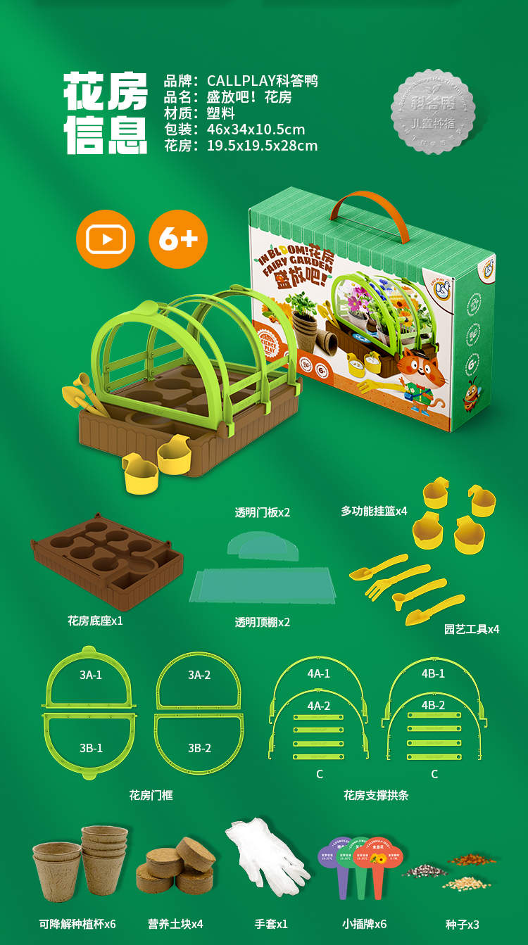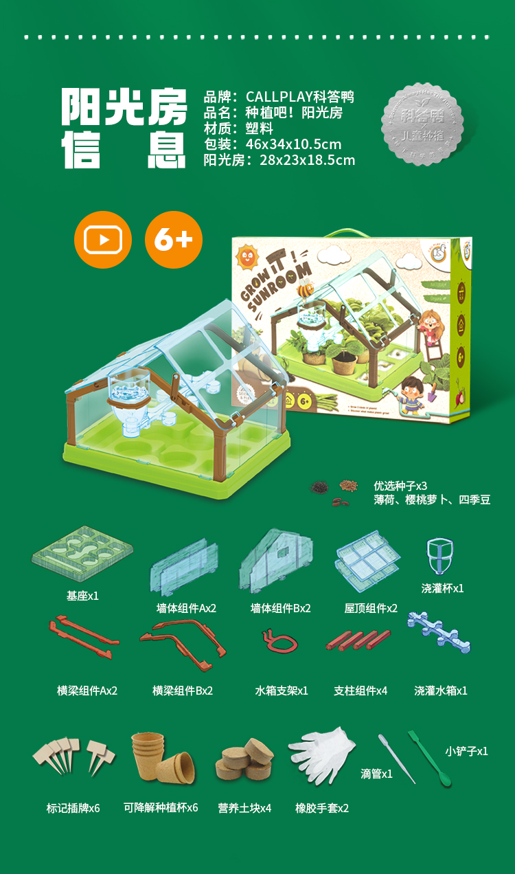 新年礼物CALLPLAY科答鸭植物吧阳光种植房花房儿童种植小盆栽科学实验生长观察窗玩具 灌溉系统三款种子四季可种、发芽率高、儿童礼物六一儿童节儿童礼物圣诞礼物生日礼物