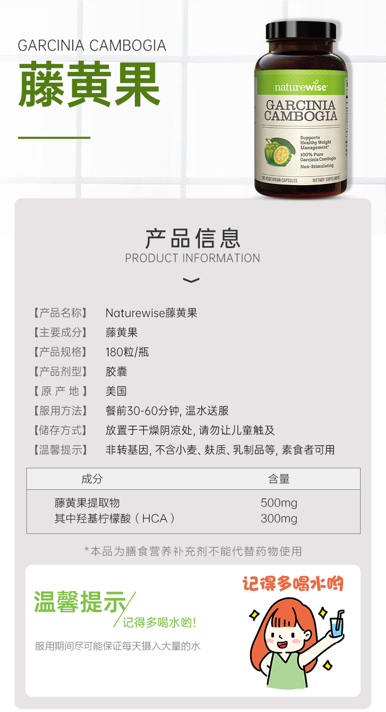 Naturewise 美国进口藤黄果胶囊180粒