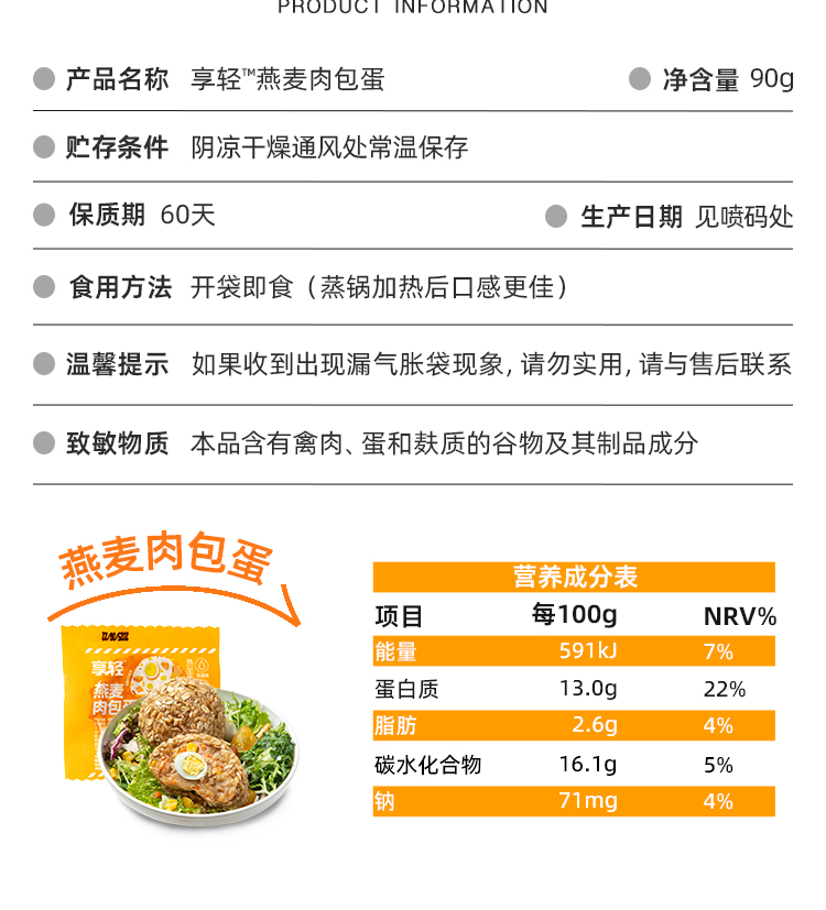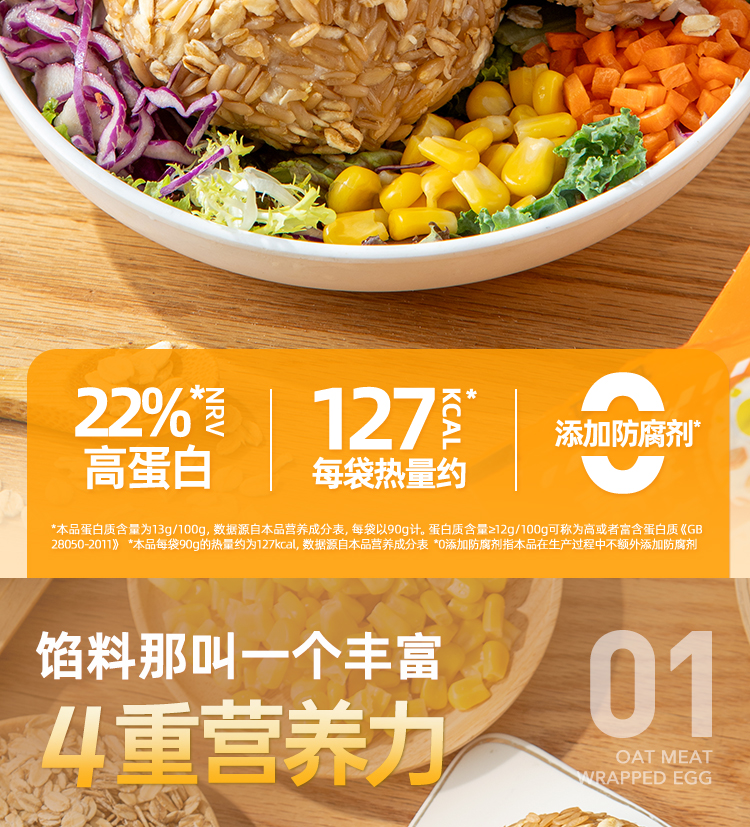 哥本享轻燕麦肉包蛋饭团 90g/枚