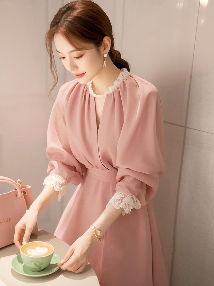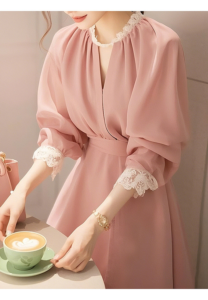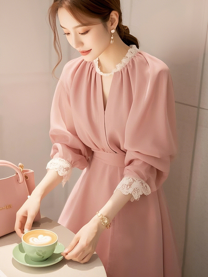 韩系蕾丝花边连衣裙海边度假2025年春季新款流行女装多巴胺裙子
