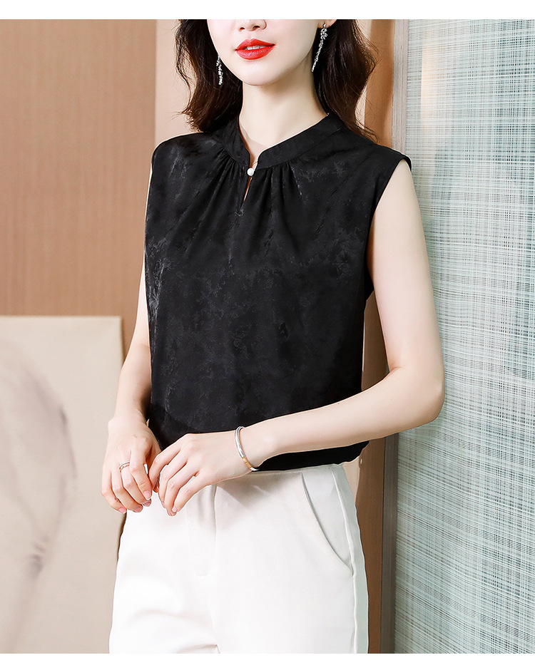 新款提花设计感中国风立领显瘦针织上衣打底小背心KQL-435H5272
