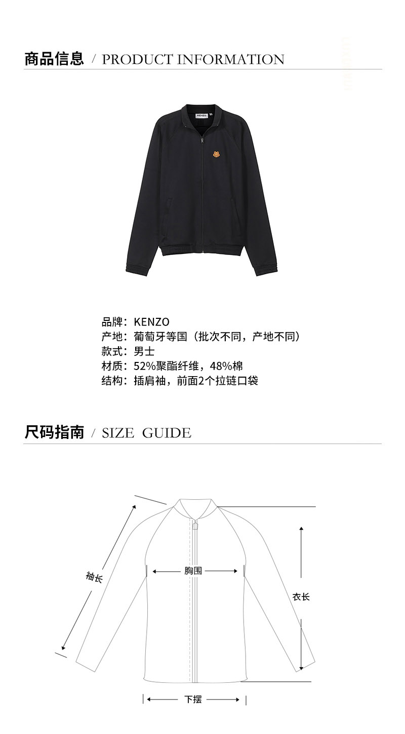KENZO/高田贤三【22春夏新款】男士立领拉链卫衣开衫运动衫外套 5BL733 4IP