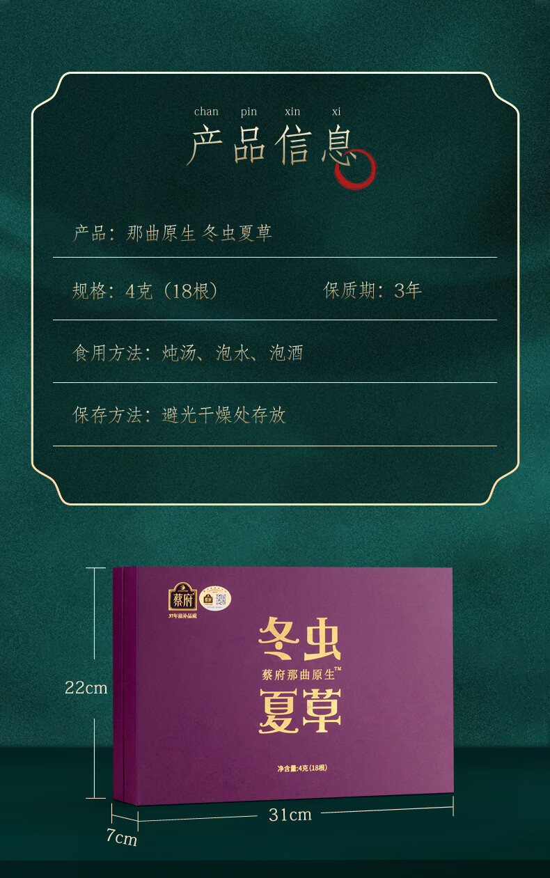 【一件包邮 传统滋补】蔡府3A冬虫夏草4g/170038 内含18根根根甄选虫体饱满有光泽 甘肃/青海/内蒙古/新疆/西藏/宁夏/海南/港澳台不发货