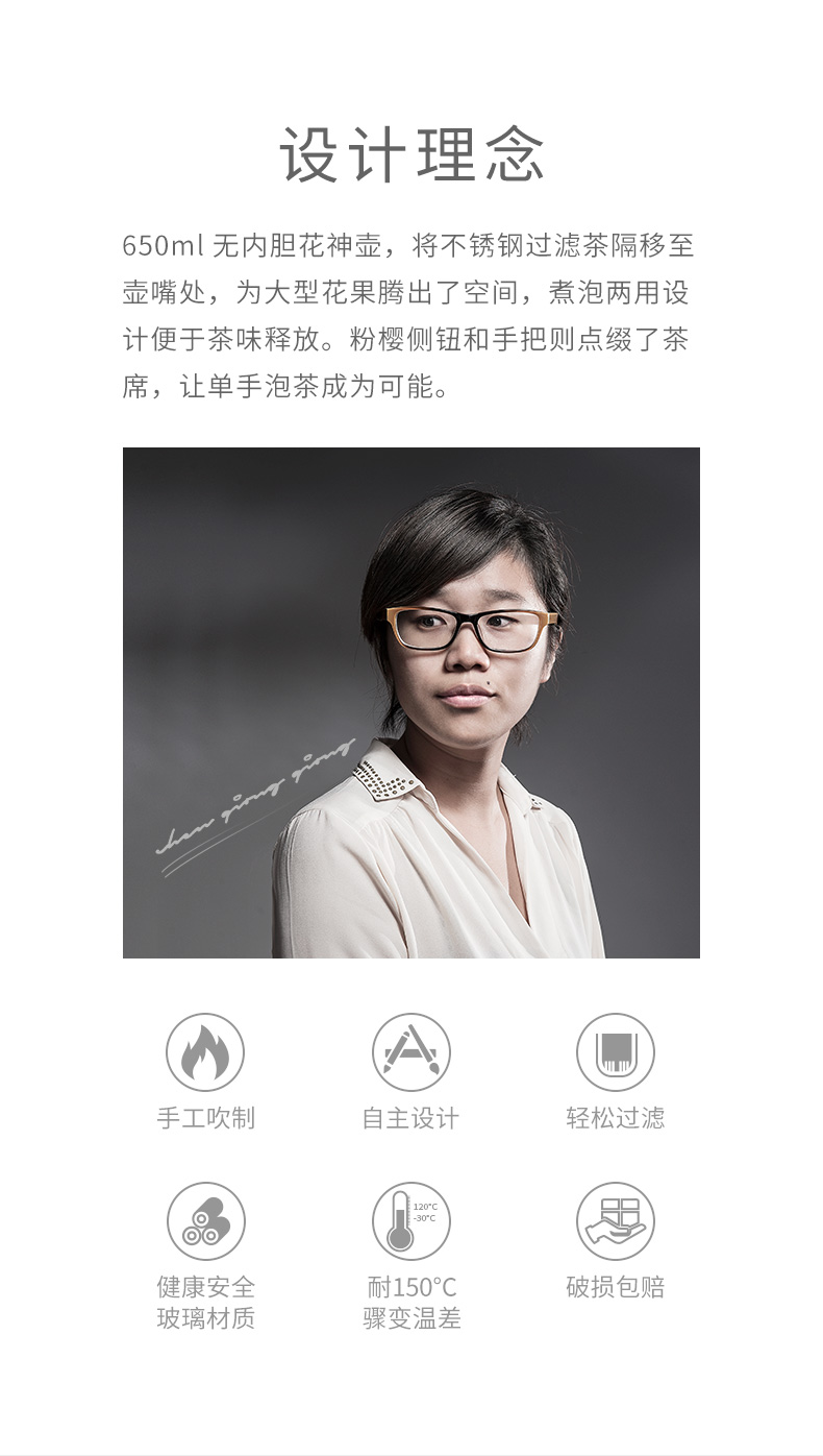 雅集玻璃壶花神壶650ml(樱粉)