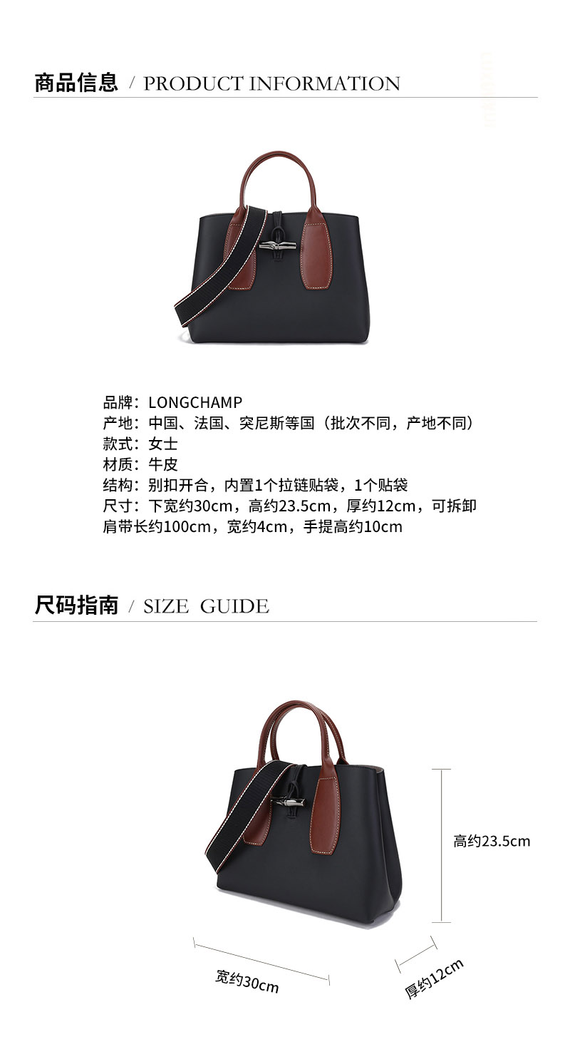 Longchamp/珑骧 女士ROSEAU系列中号牛皮手提单肩斜挎包 10058 HXK