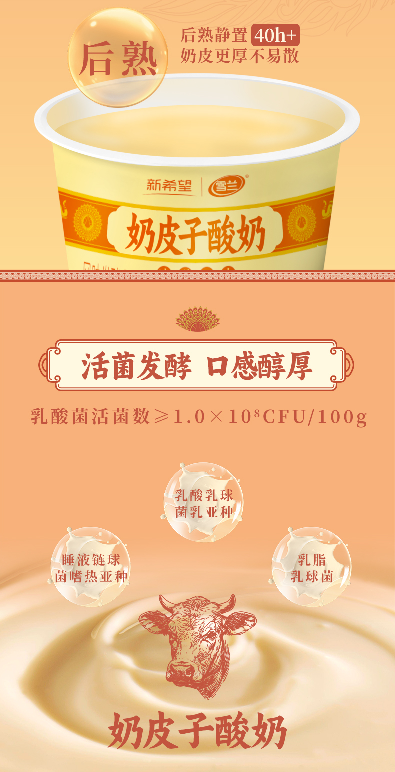 【新希望奶皮子酸奶】 海拔2000+高原纯净原奶 每100g富含3.8g优质乳蛋白,110mg乳钙 ,细腻爽滑,美味高营养