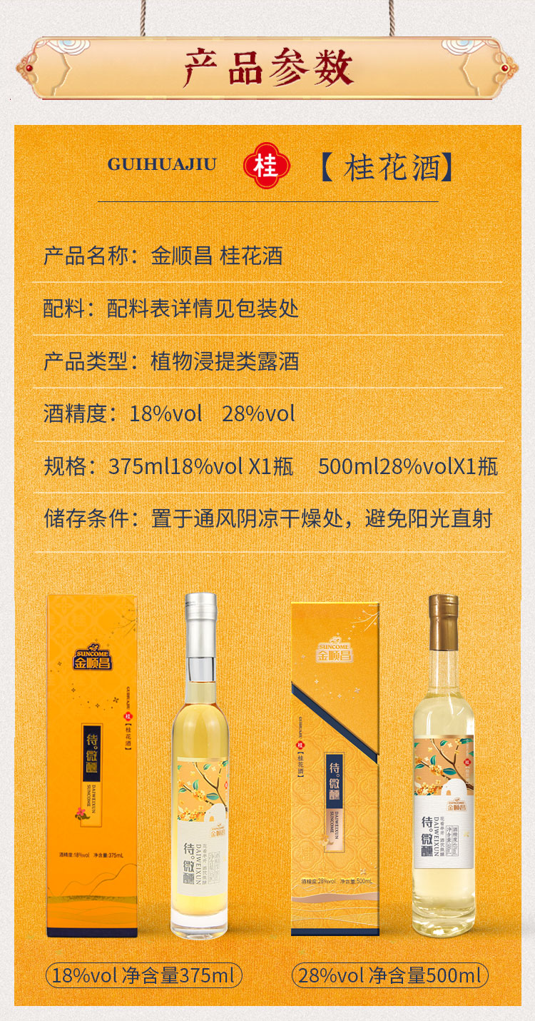 金顺昌米酿桂花酒聚会女士低度375ml/500ml瓶果酒甜酒礼盒装送礼