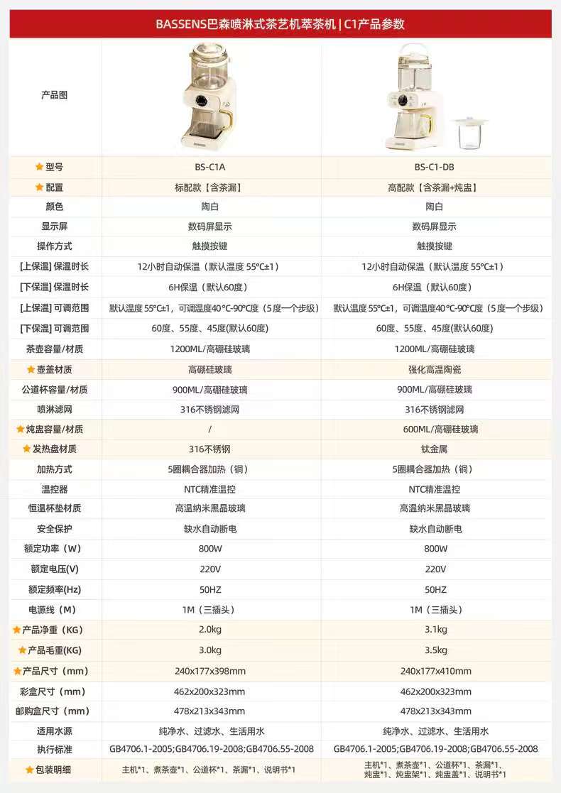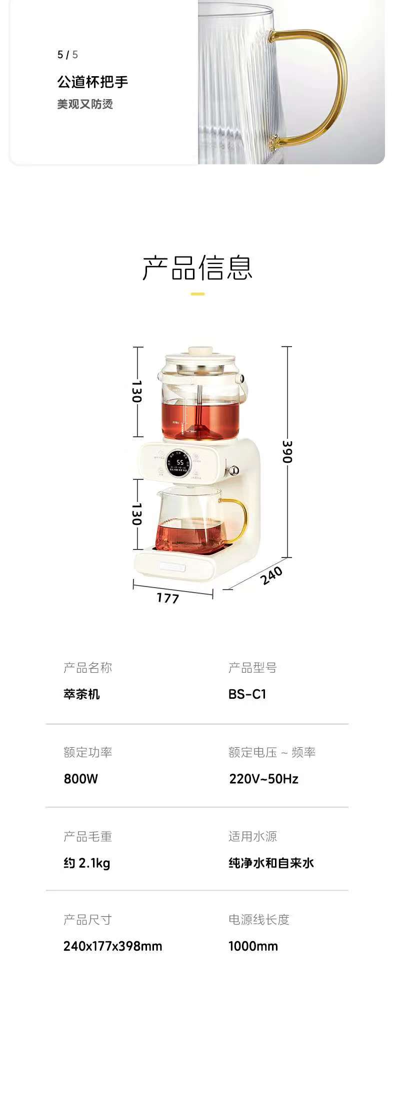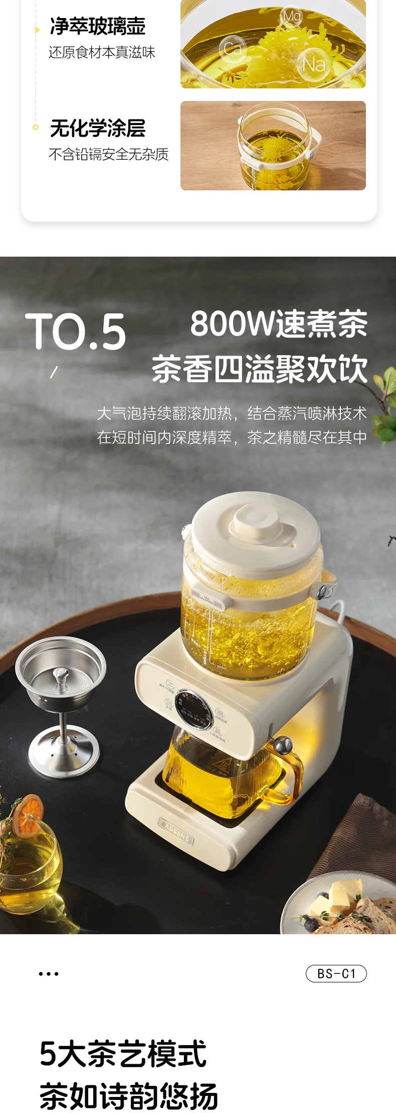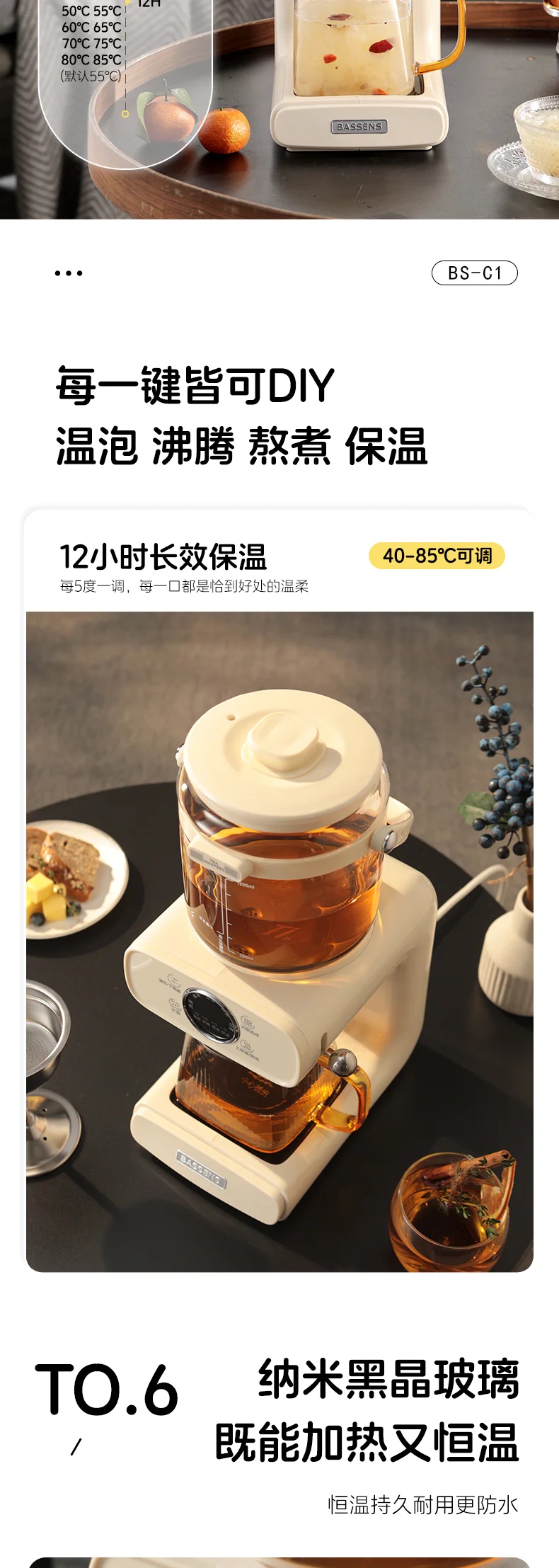 【巴森】 煮茶器 喷淋式蒸汽茶饮多功能 恒温养生壶