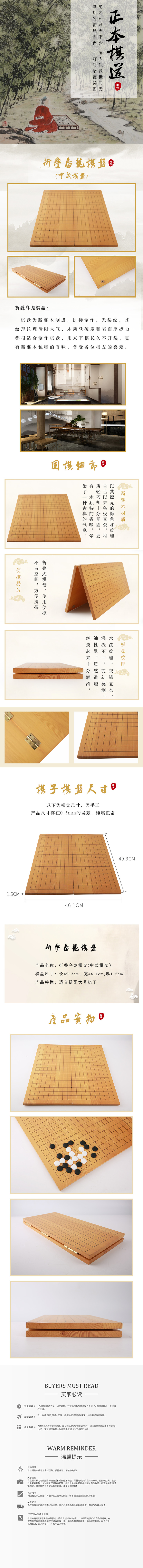 折叠乌龙中式新榧实木棋盘