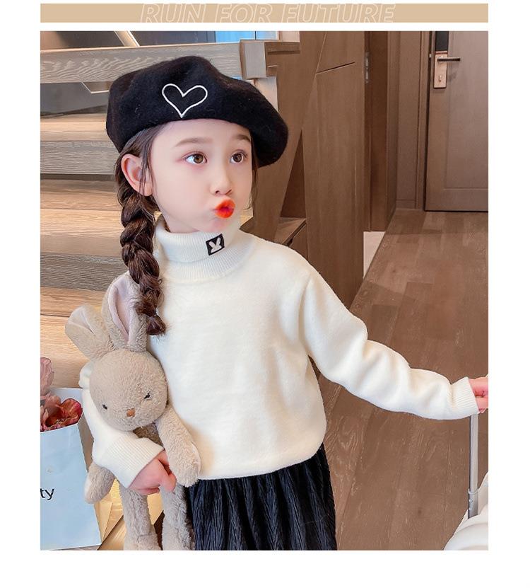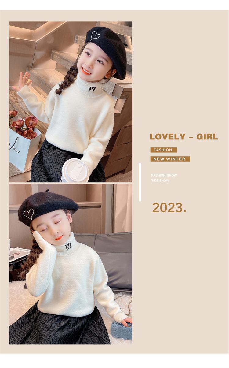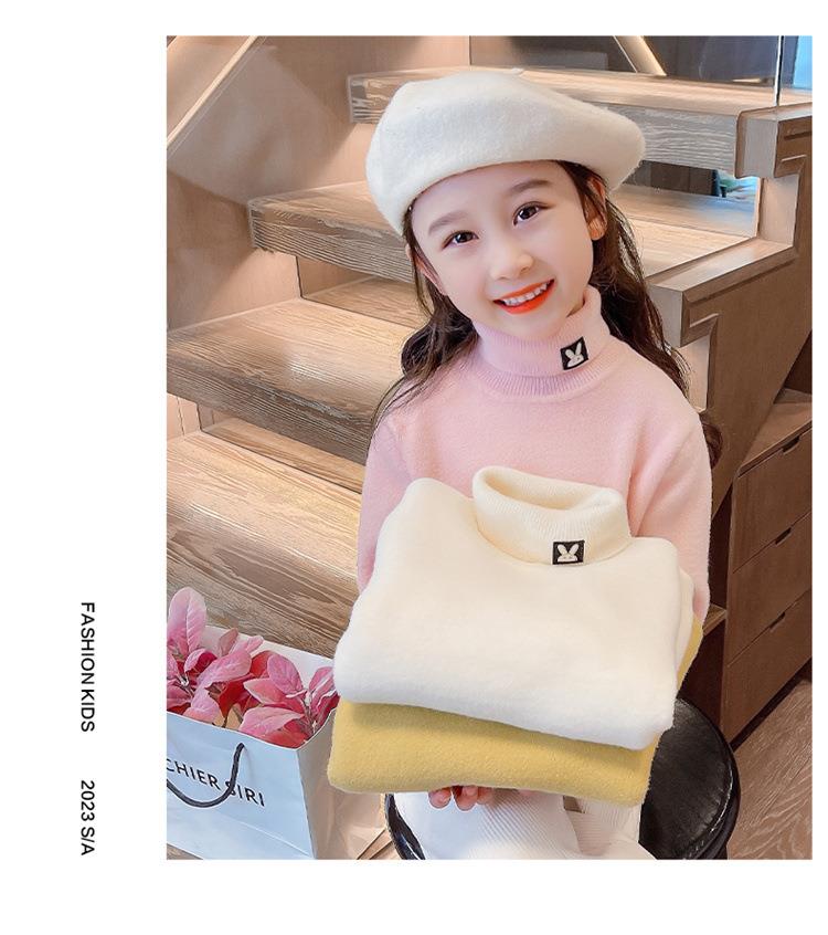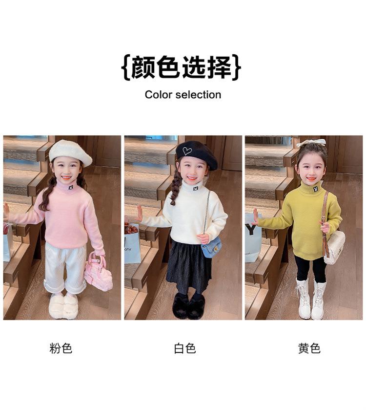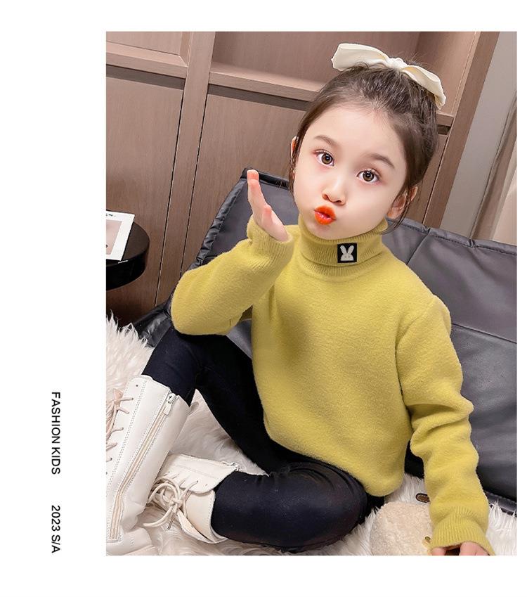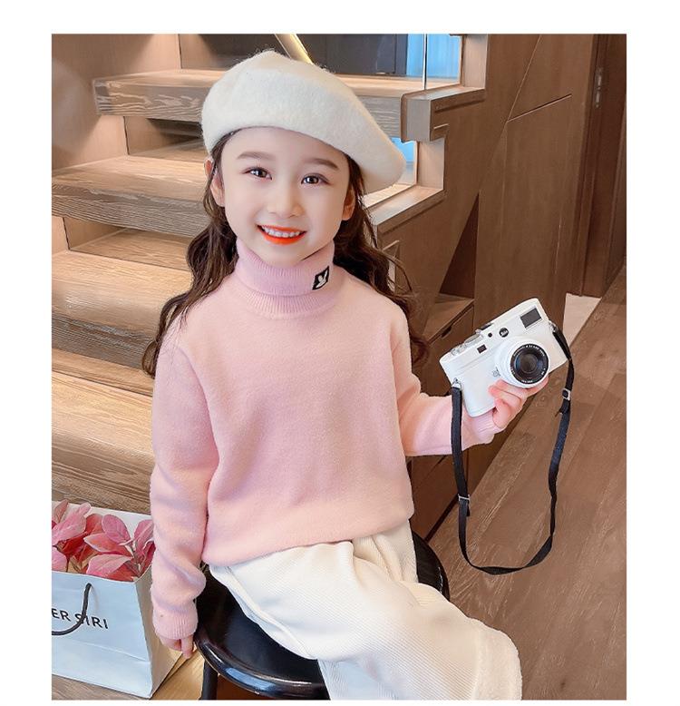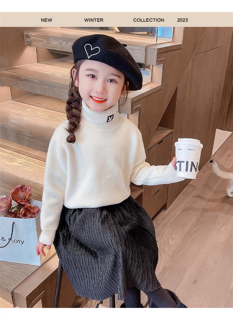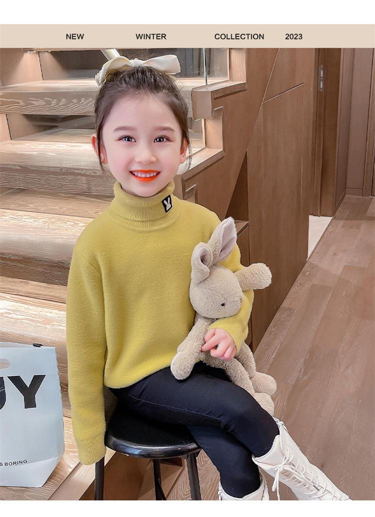 女童高领卡通毛衣冬季2023新款宝宝韩版洋气打底衣童装潮
