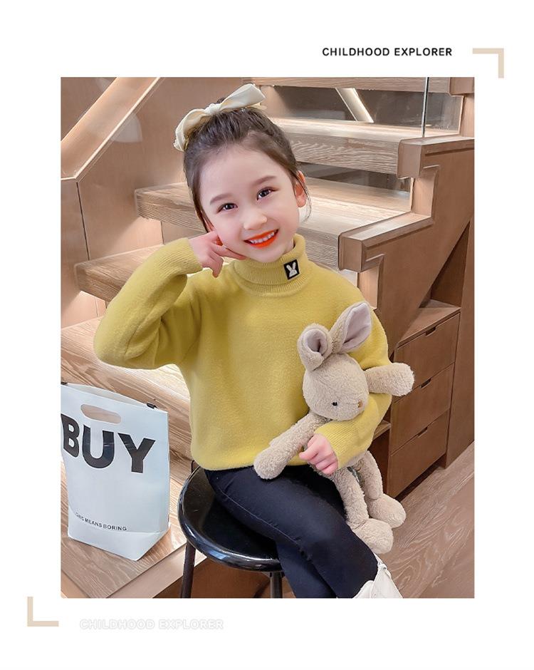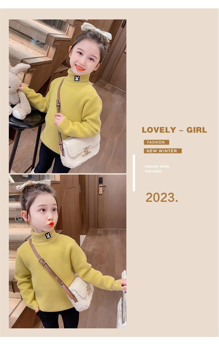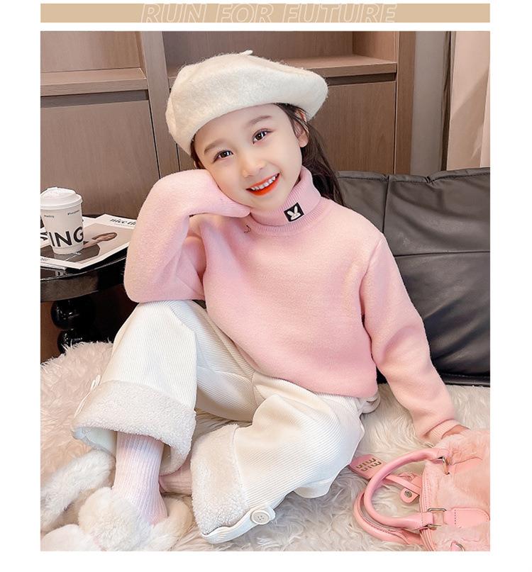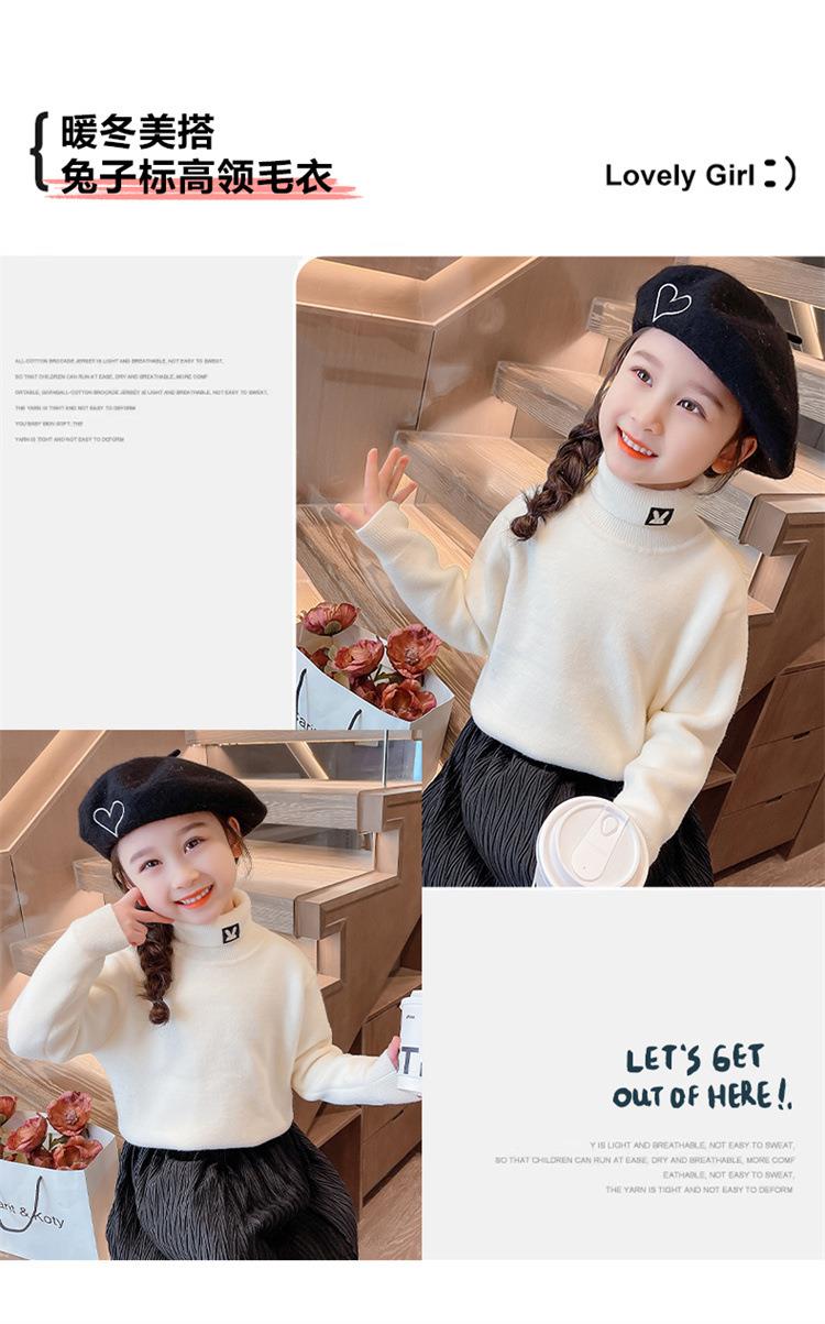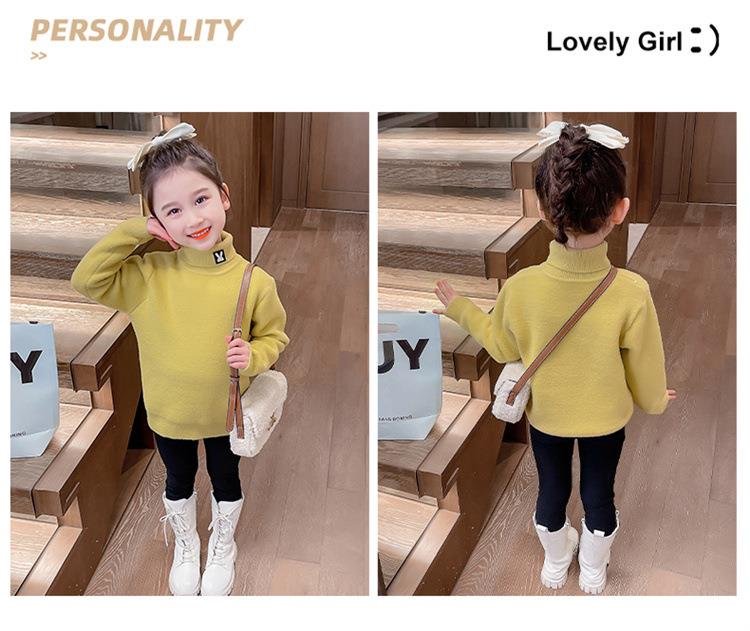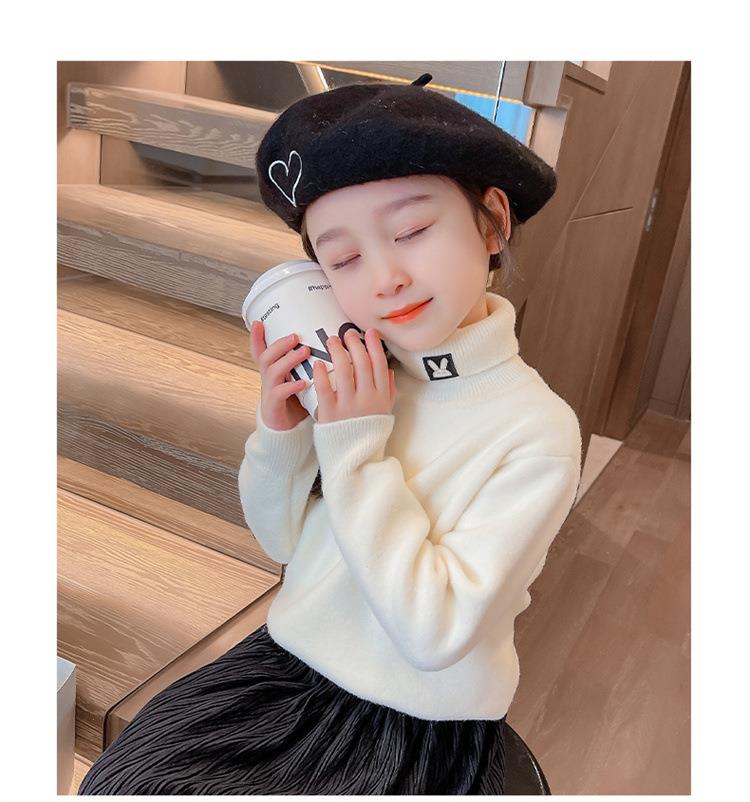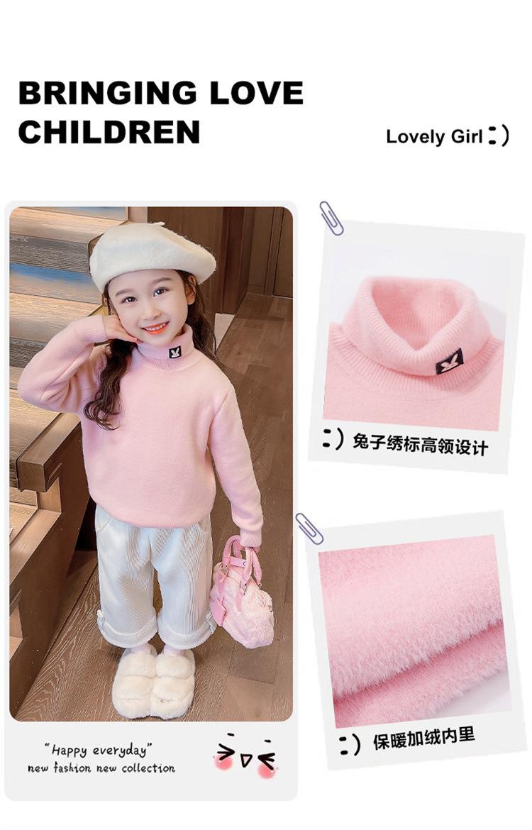 女童高领卡通毛衣冬季2023新款宝宝韩版洋气打底衣童装潮