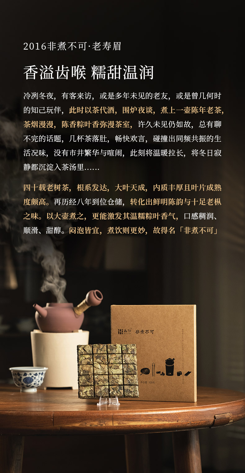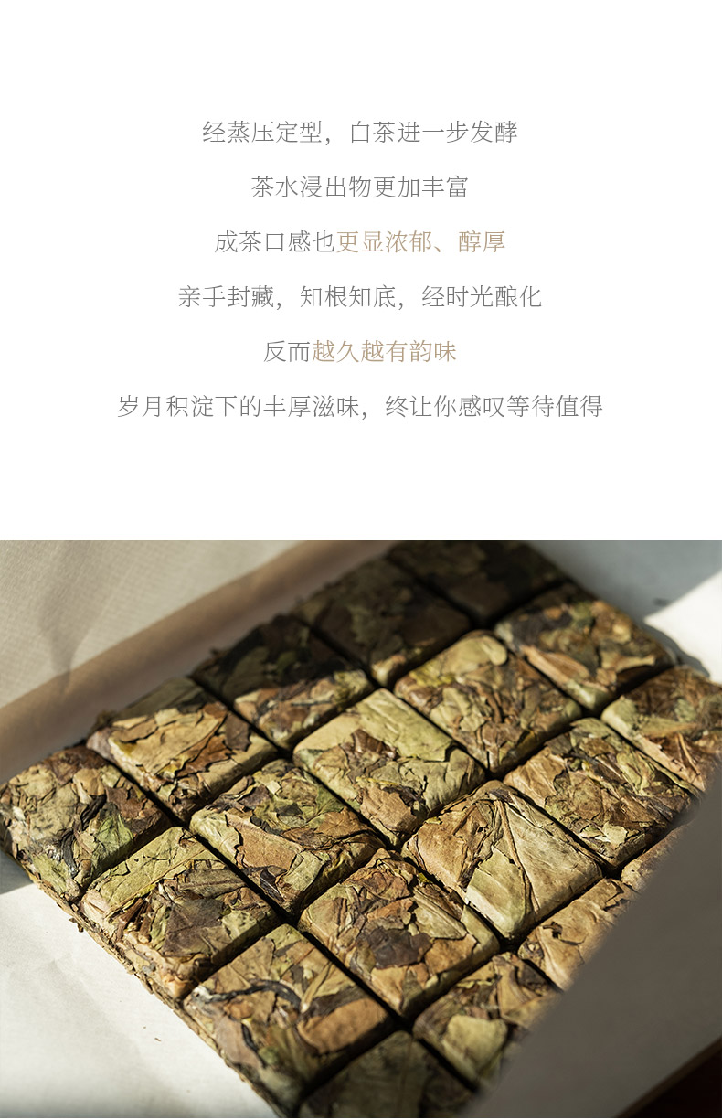 - 工艺天然 可藏可品 鲜甜甘爽 醇厚香甜 源自福鼎 始于1796 茶中瑰宝 史称北路