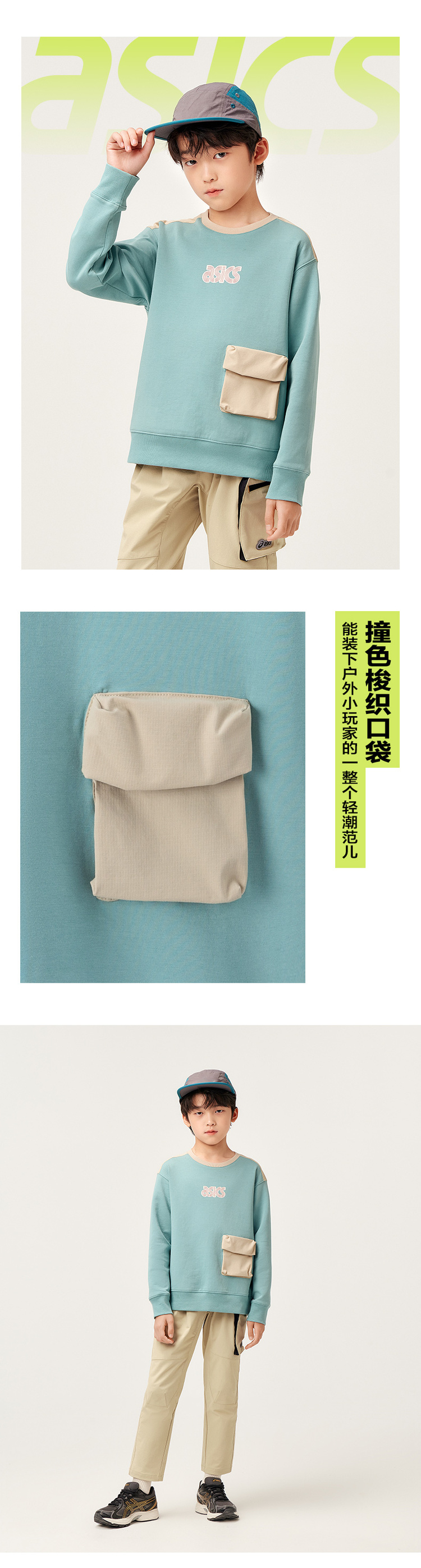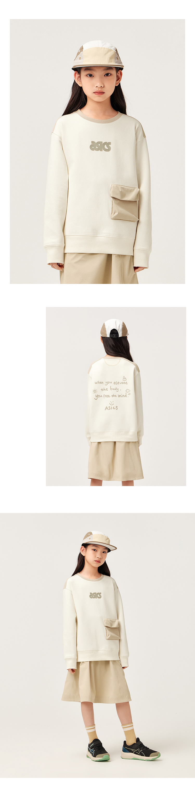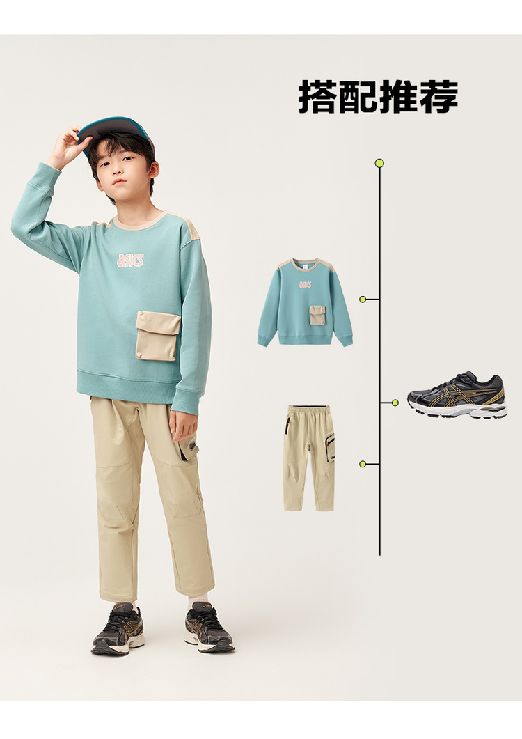 【商城同款】ASICS/亚瑟士童装秋季长袖拼接卫衣童趣印花2024新品