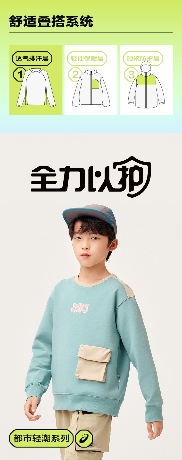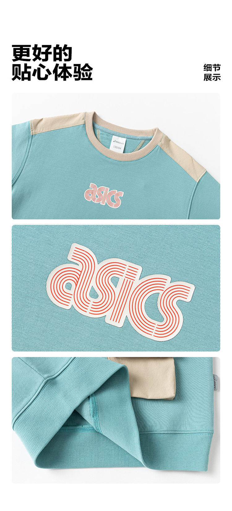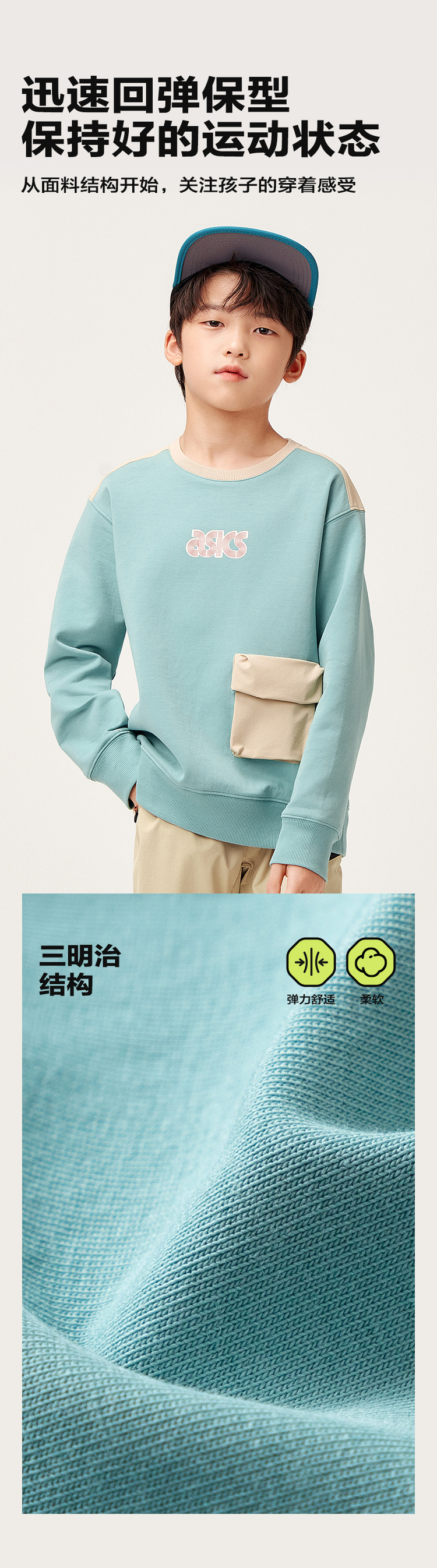 【商城同款】ASICS/亚瑟士童装秋季长袖拼接卫衣童趣印花2024新品