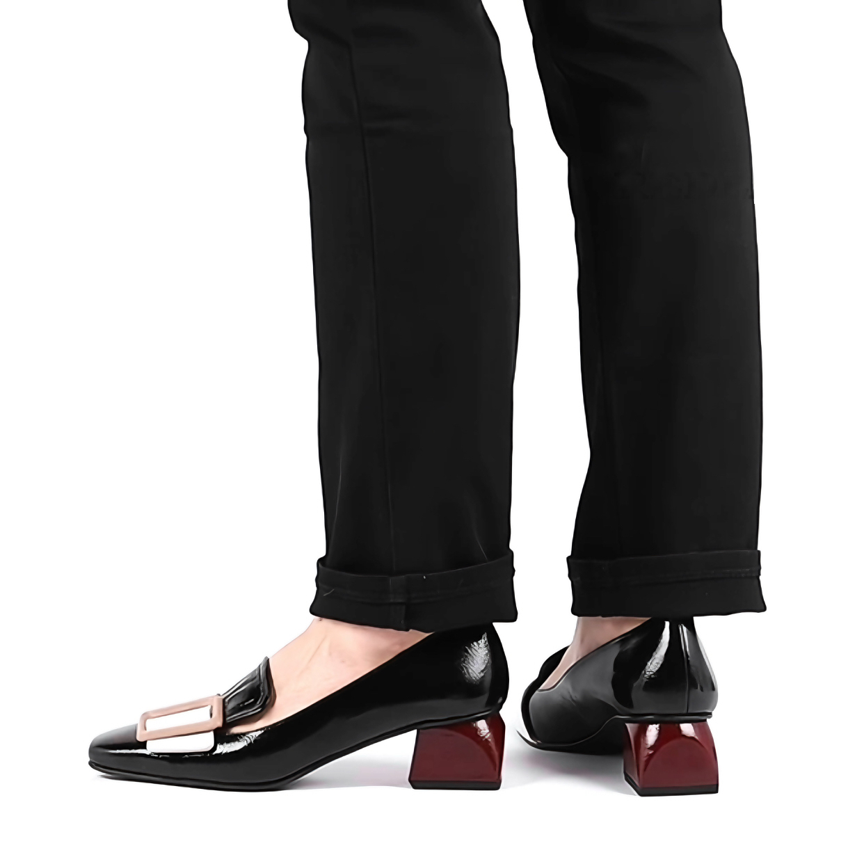 西班牙原产优雅舒适女款时装鞋5982,鞋面材质精选欧洲优质头层牛皮,柔软透气,鞋内衬为柔软羊皮,鞋型显双脚纤细,时尚的酒红色方形跟,极度舒适,时尚女神必备单品。