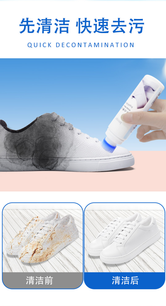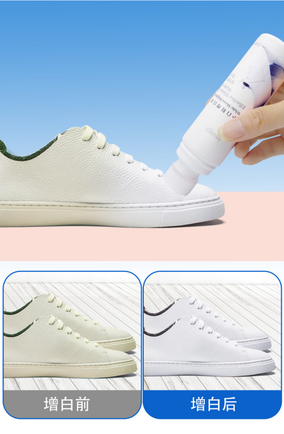 适用于小白鞋、波鞋、运动鞋、旅游鞋、PU塑料、橡胶、真皮材质的白色部位的增白护理哦