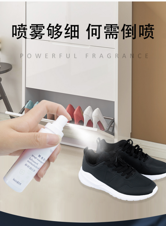 均匀喷洒在鞋子内部、袜子或鞋垫表面