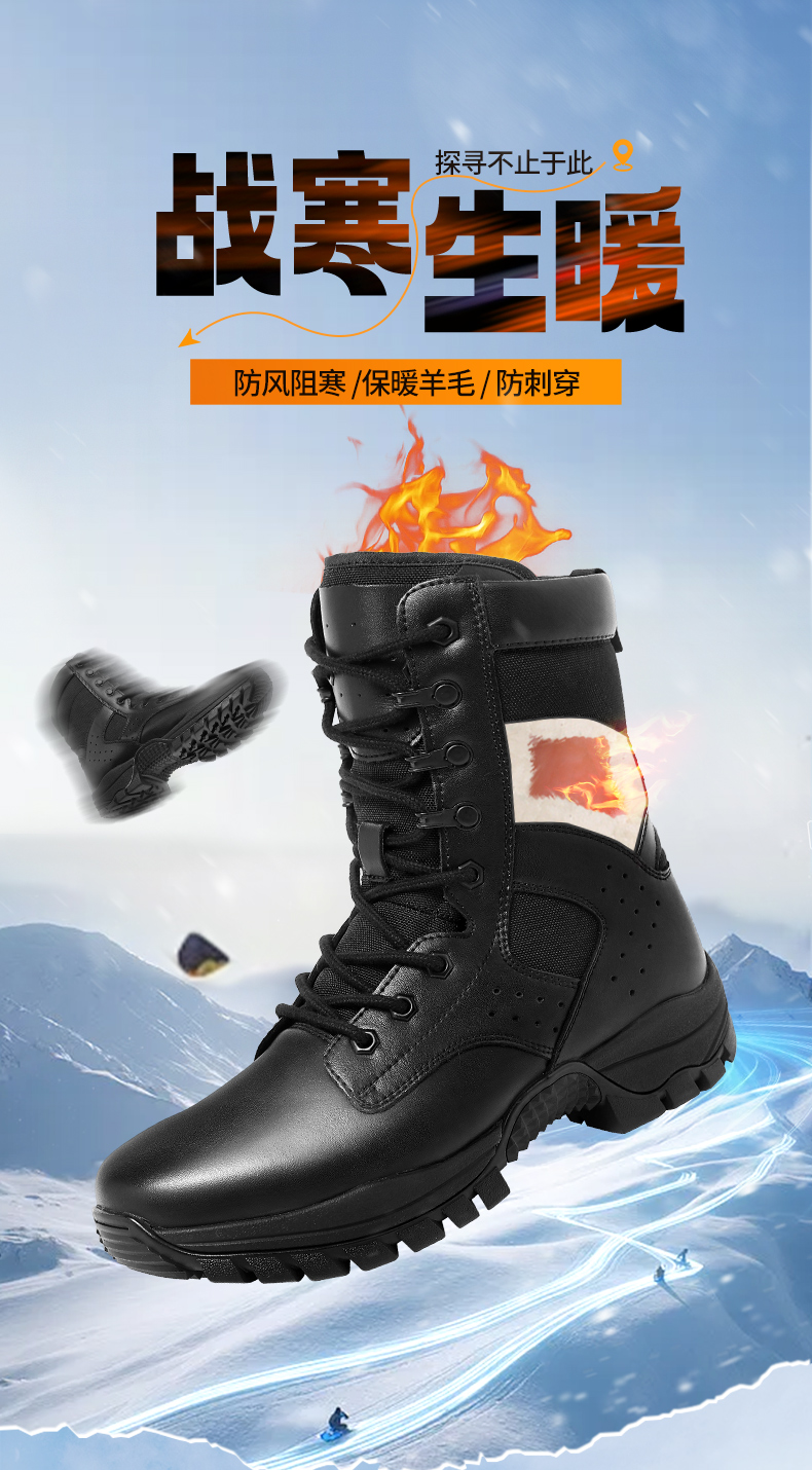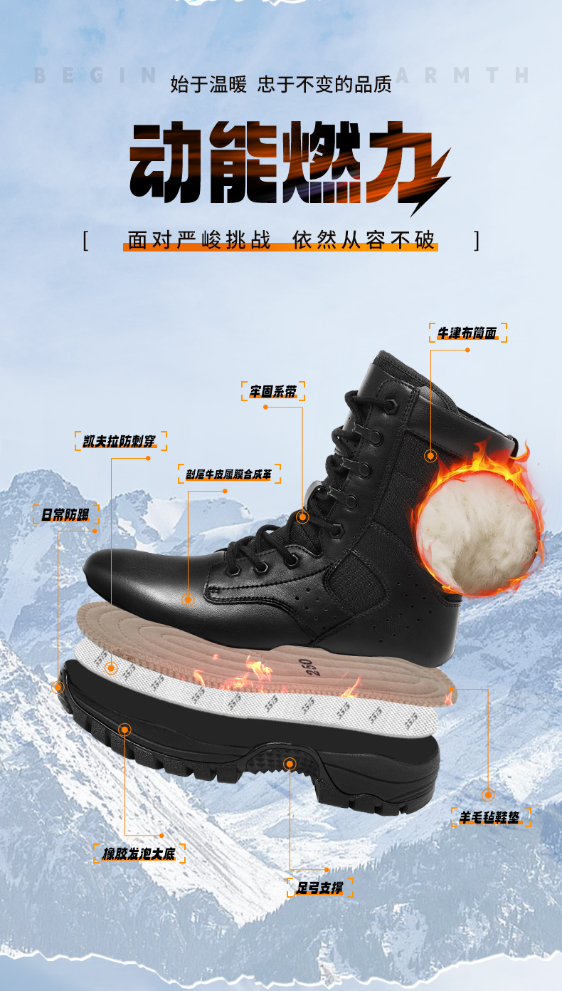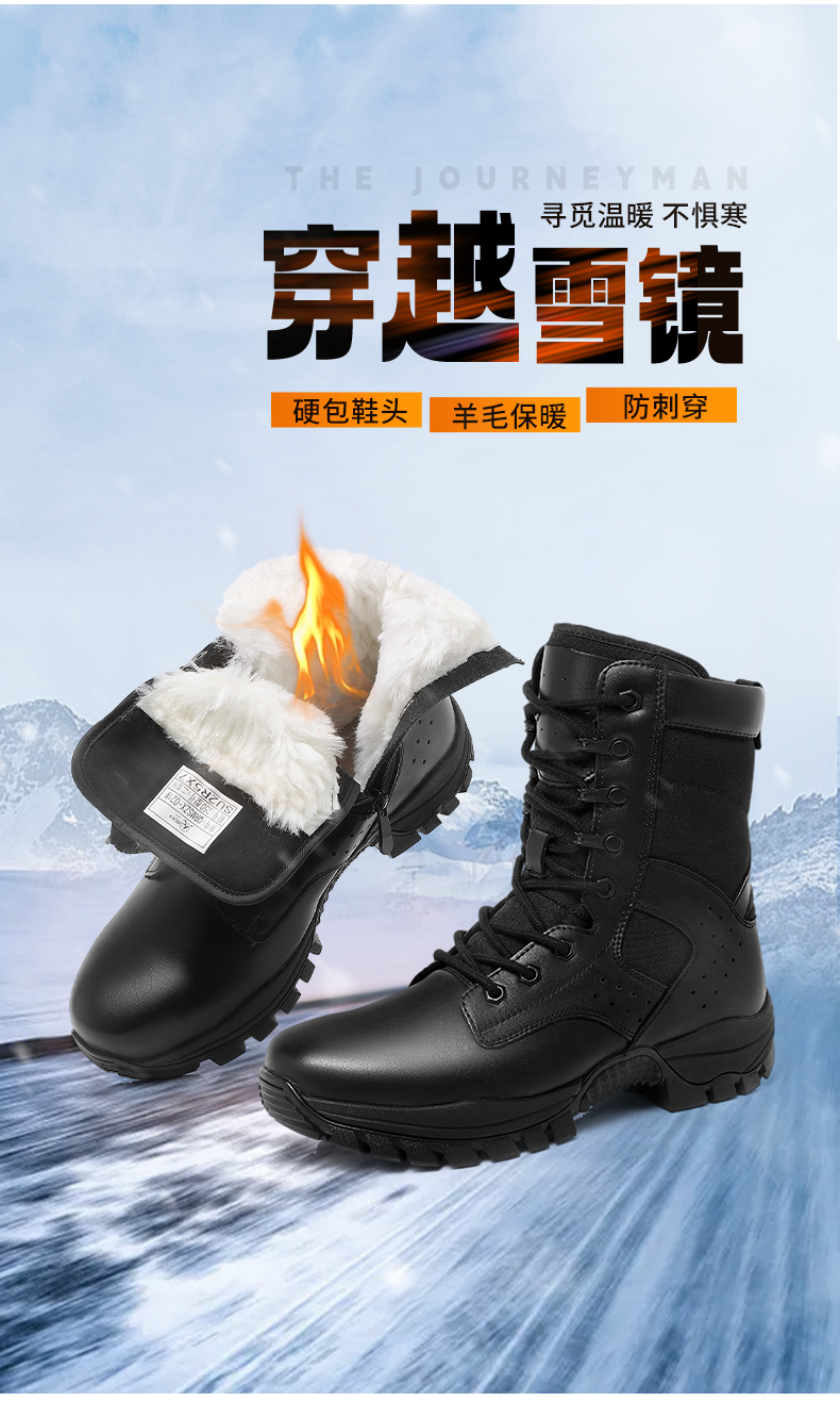 强人3515男靴冬季加绒保暖羊毛靴凯夫拉防穿刺户外登山靴厚底棉靴