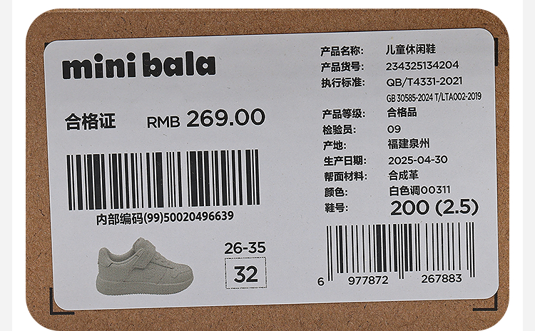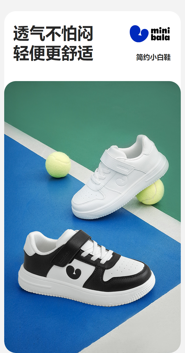 迷你巴拉儿童小白鞋男女童宝宝低帮户外透气舒适简约滑板鞋