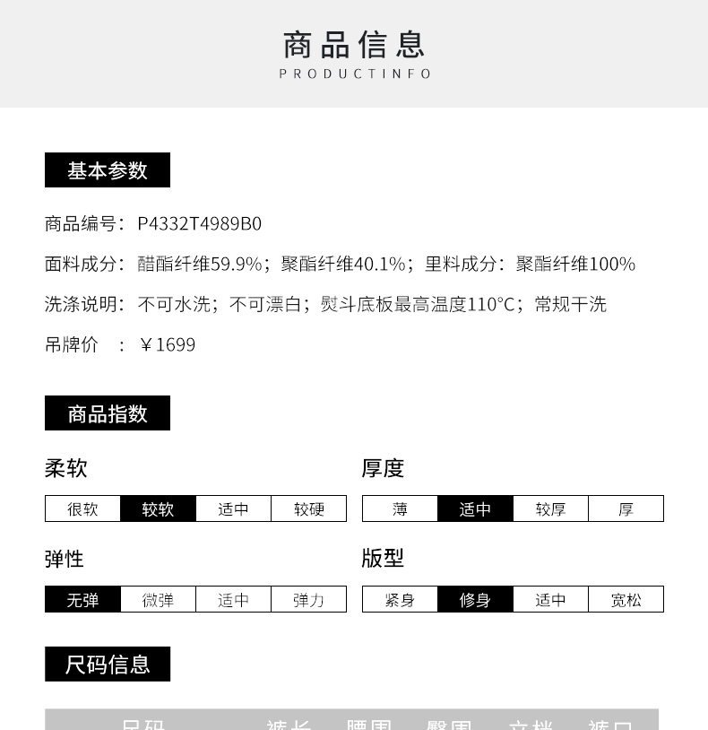 成熟、稳重、高贵典雅、大方得体 融合东方文化的含蓄和法国的浪漫 将创意的艺术性与消费需求相结合 为自信女性塑造高品质场合服装