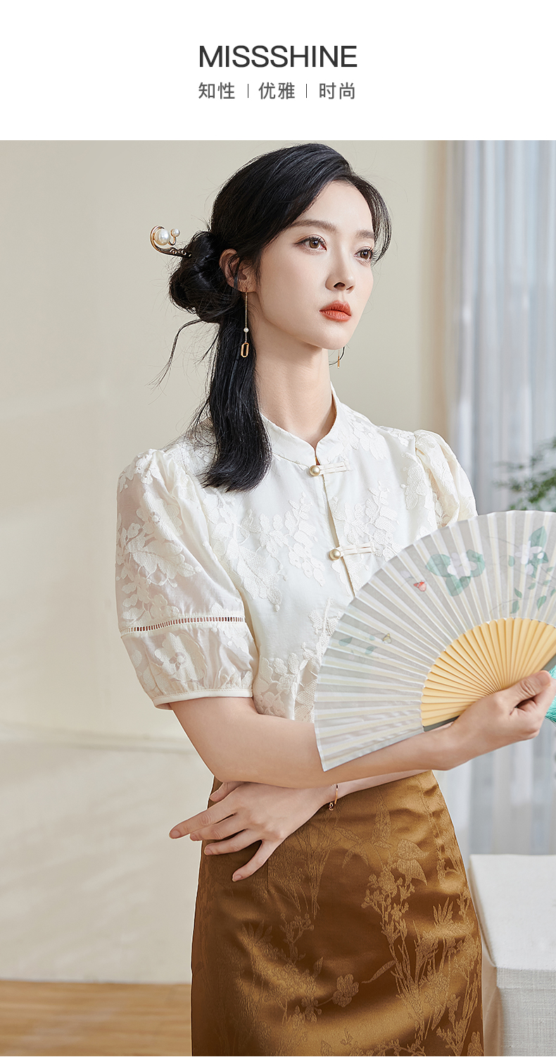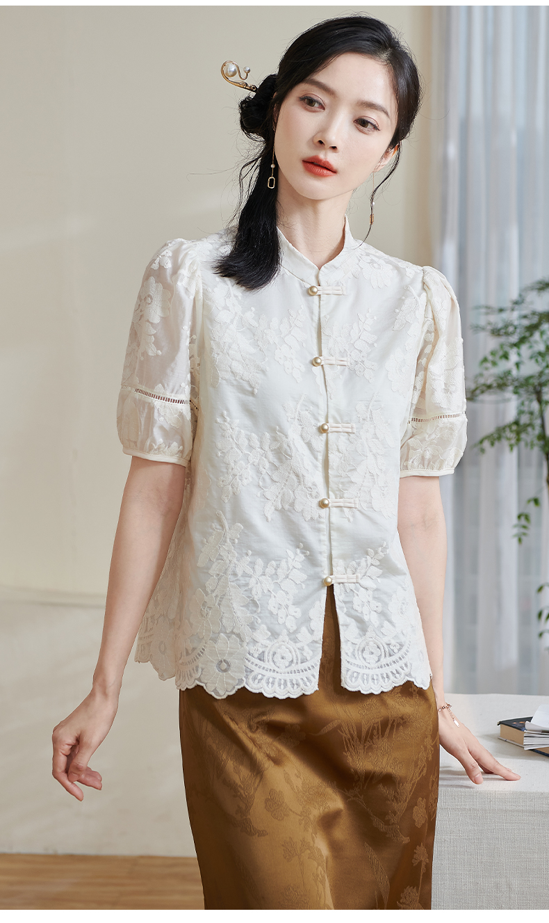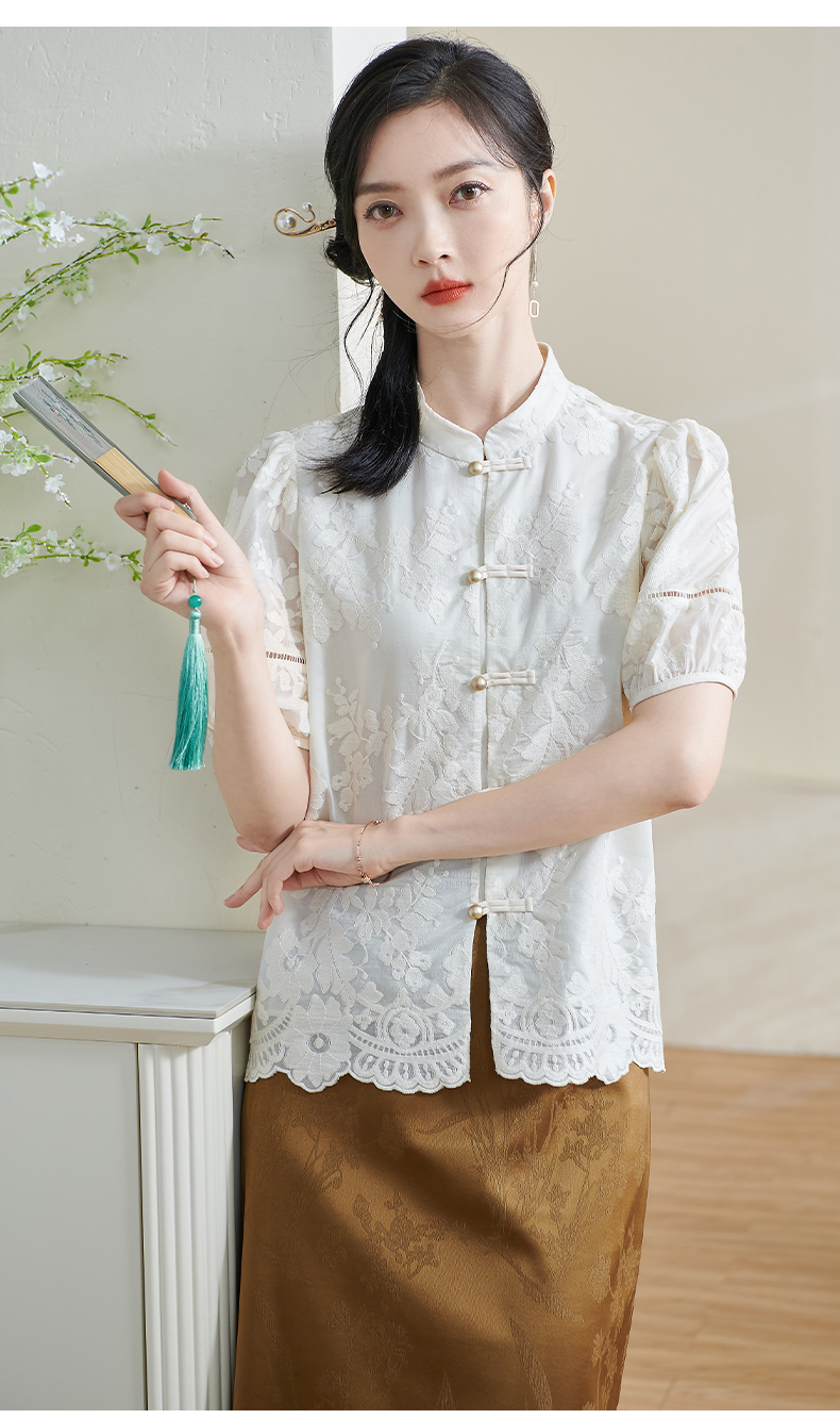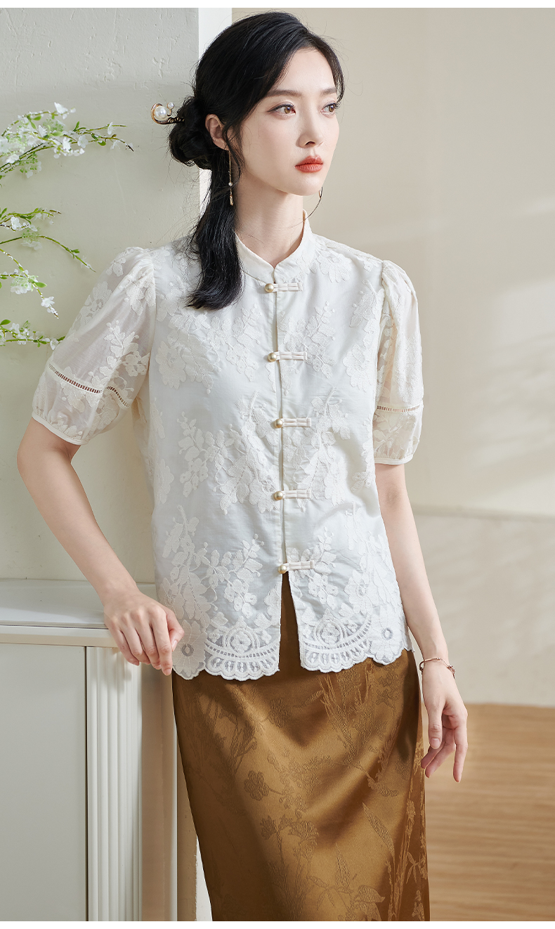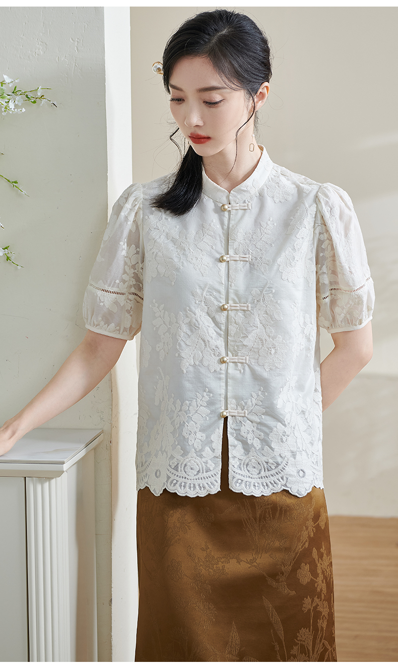 米思阳2025夏季新款新国风复古莱赛尔衬衫绣花花边设计衬衣女1675