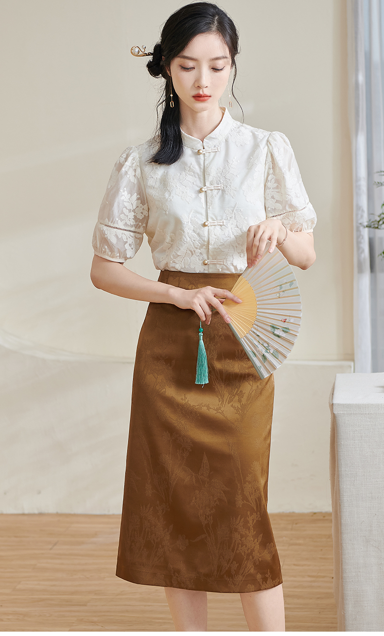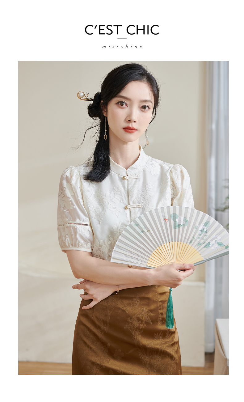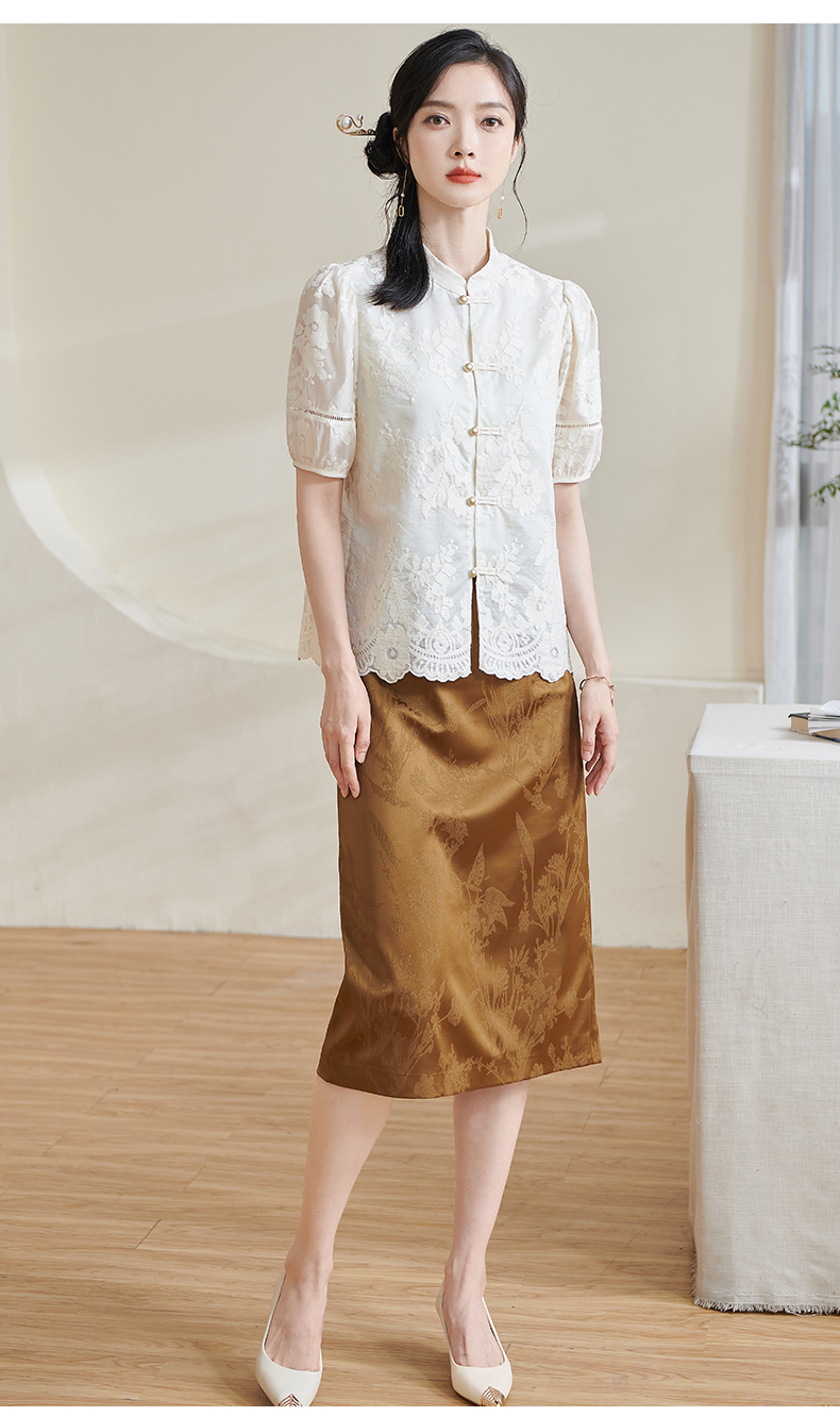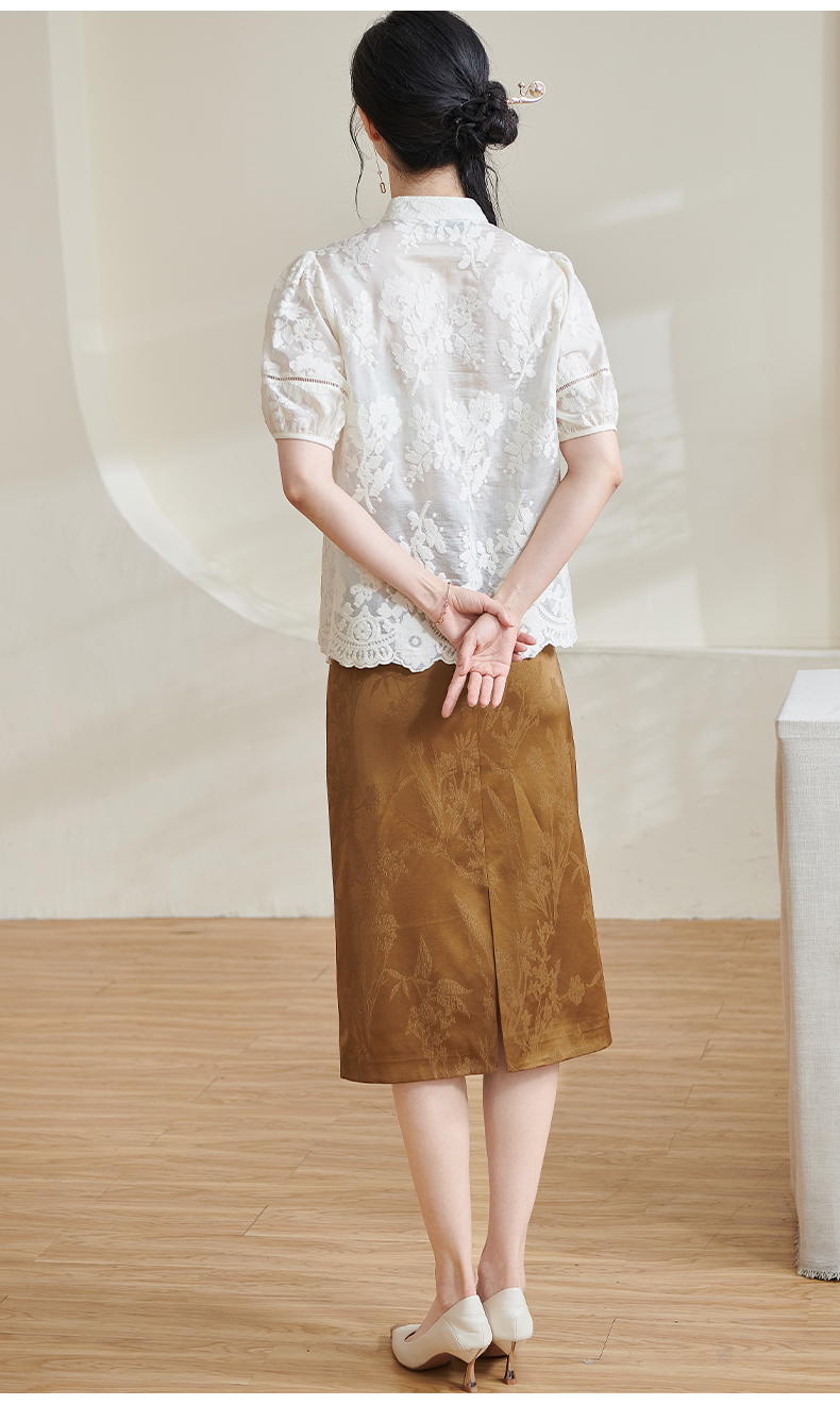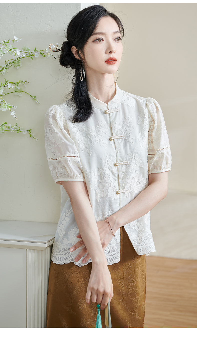 米思阳2025夏季新款新国风复古莱赛尔衬衫绣花花边设计衬衣女1675