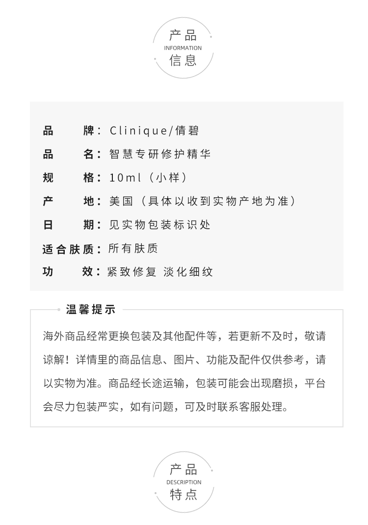 倩碧肽A紫光瓶抗老精华智慧专研修护精华液10ml中小样A醇紧致淡化细纹
