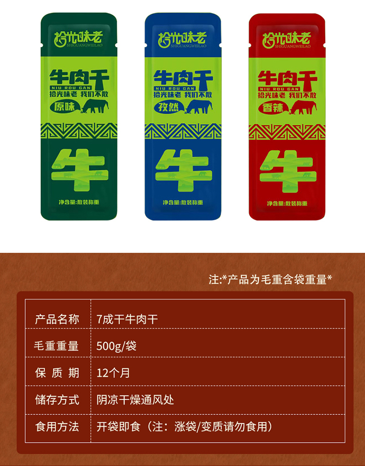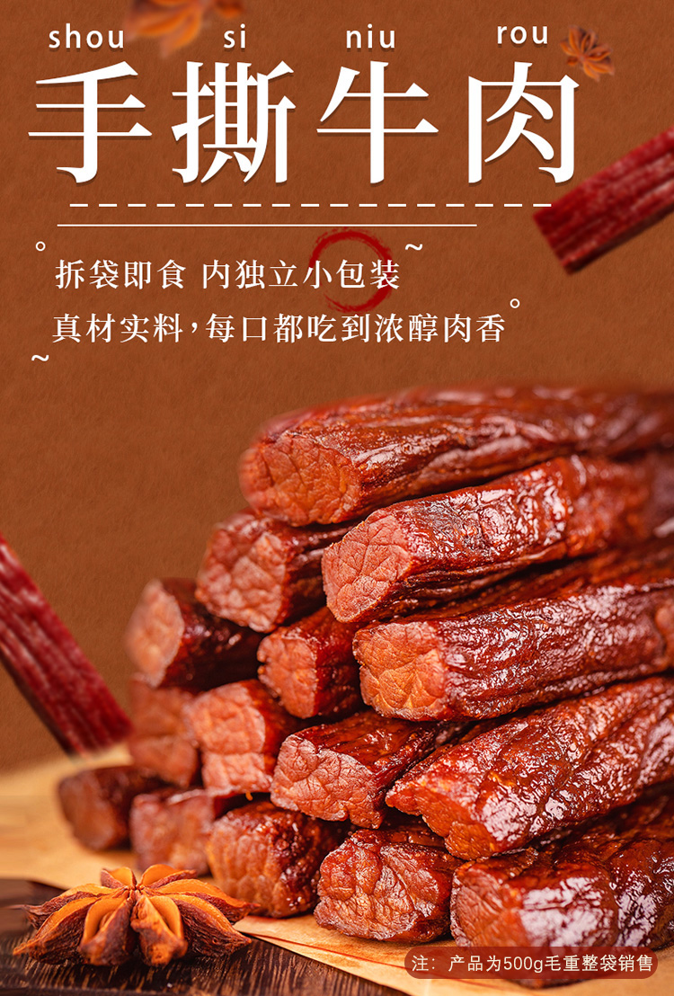 【拾光味老】风干牛肉干500g*1斤正宗内蒙古特产手撕牛肉干小零食毛重