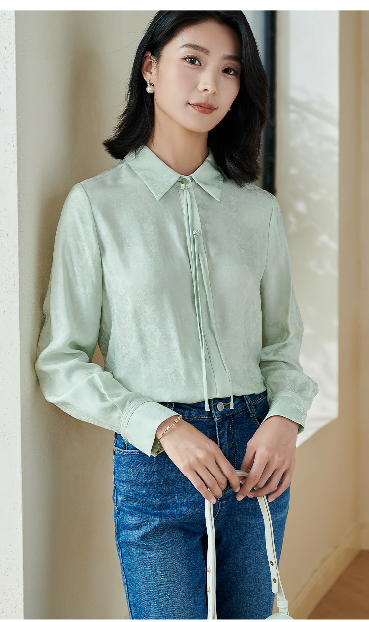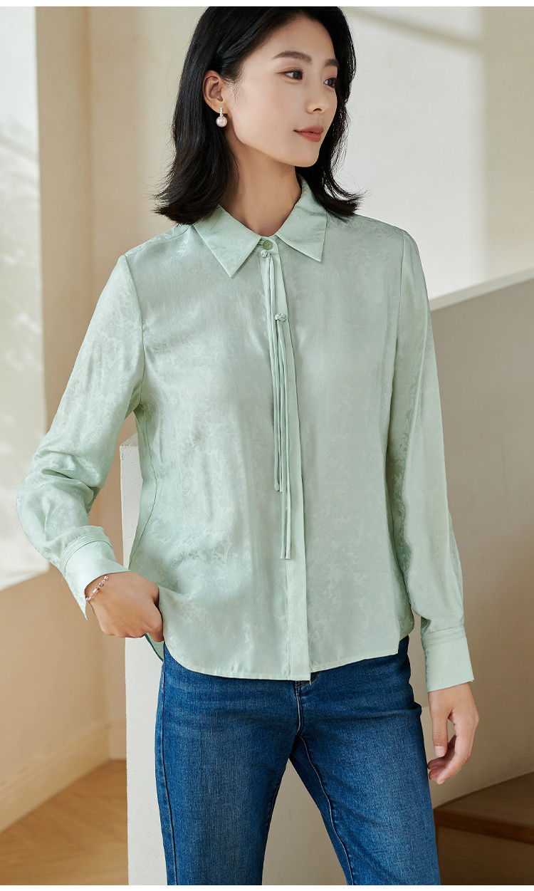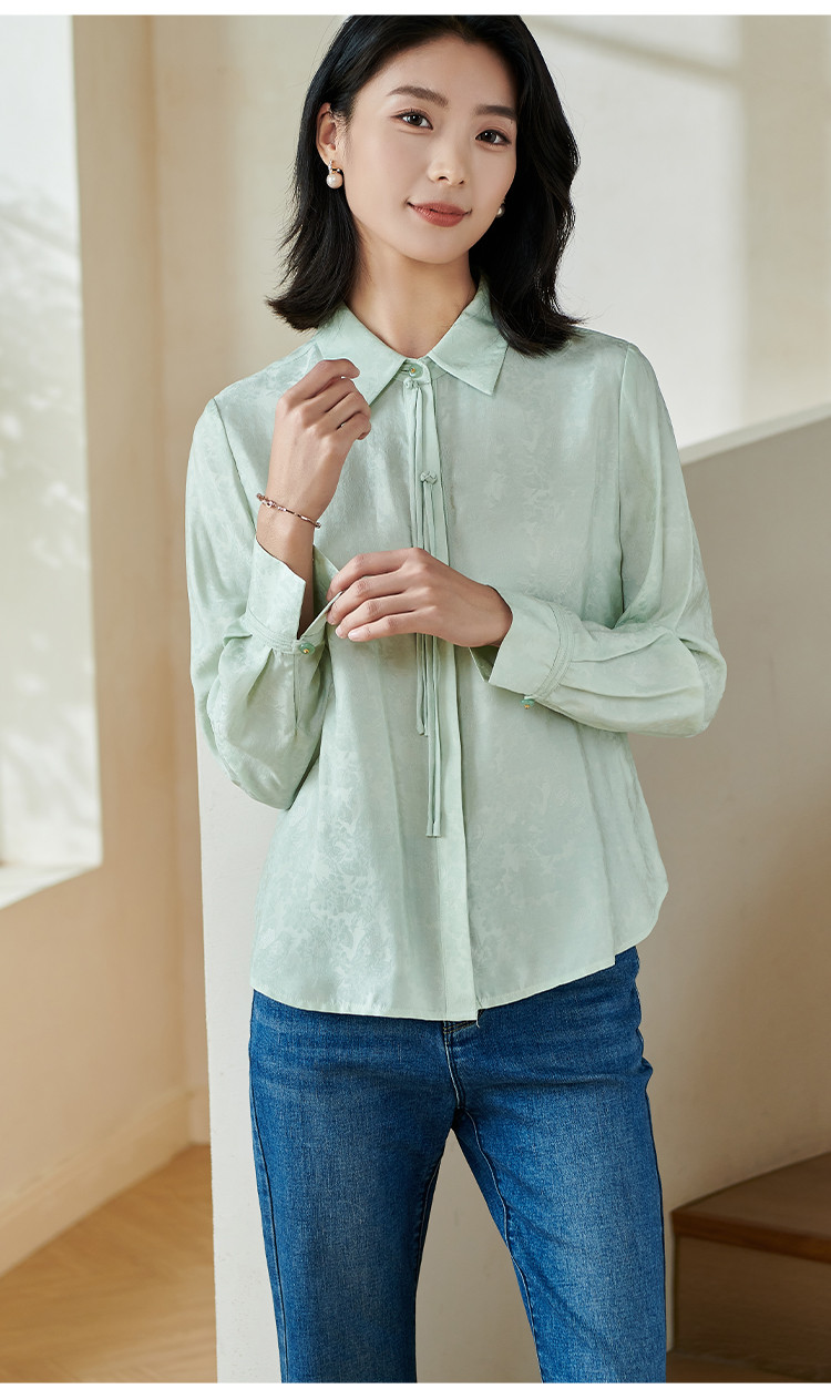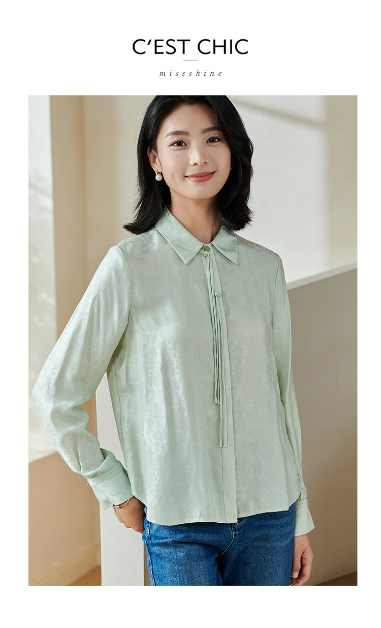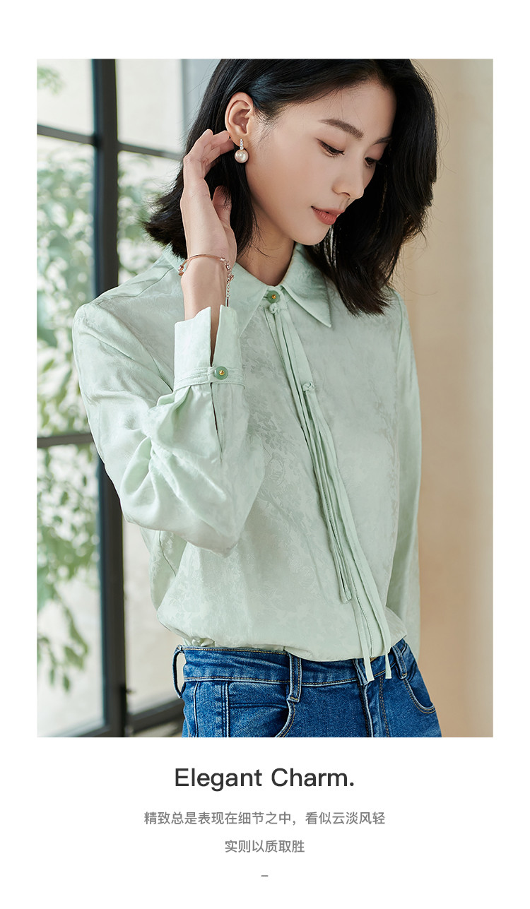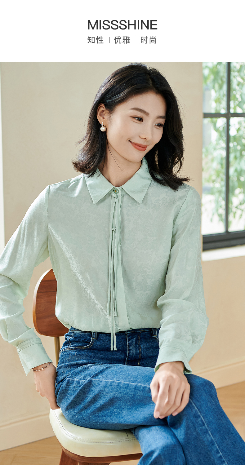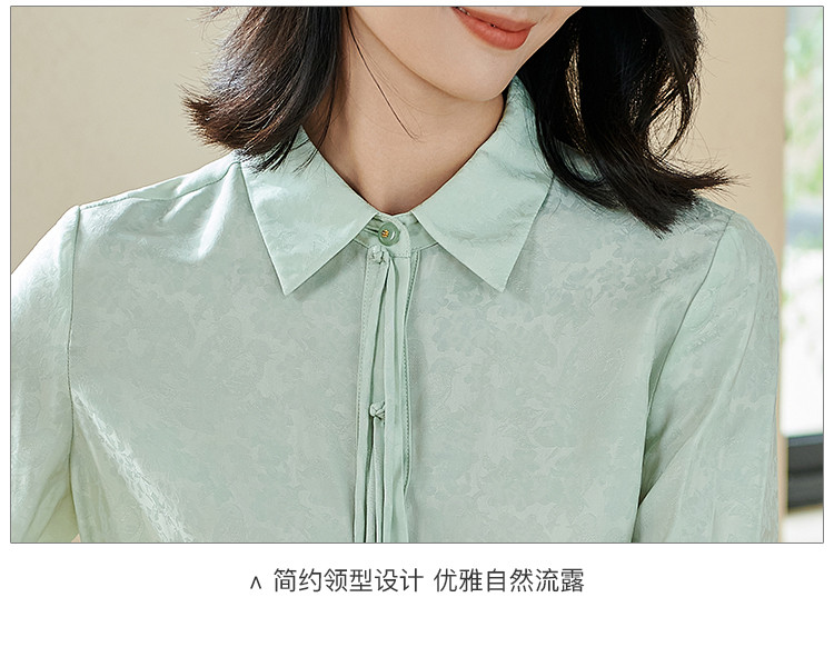 剩XL/XXL 米思阳2026春季新款新中式气质提花衬衫缎感直筒修身绿色上衣0065