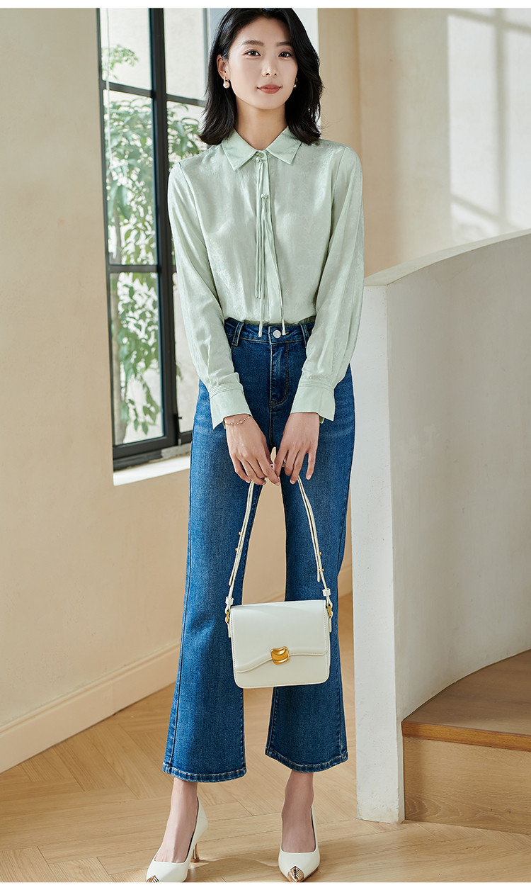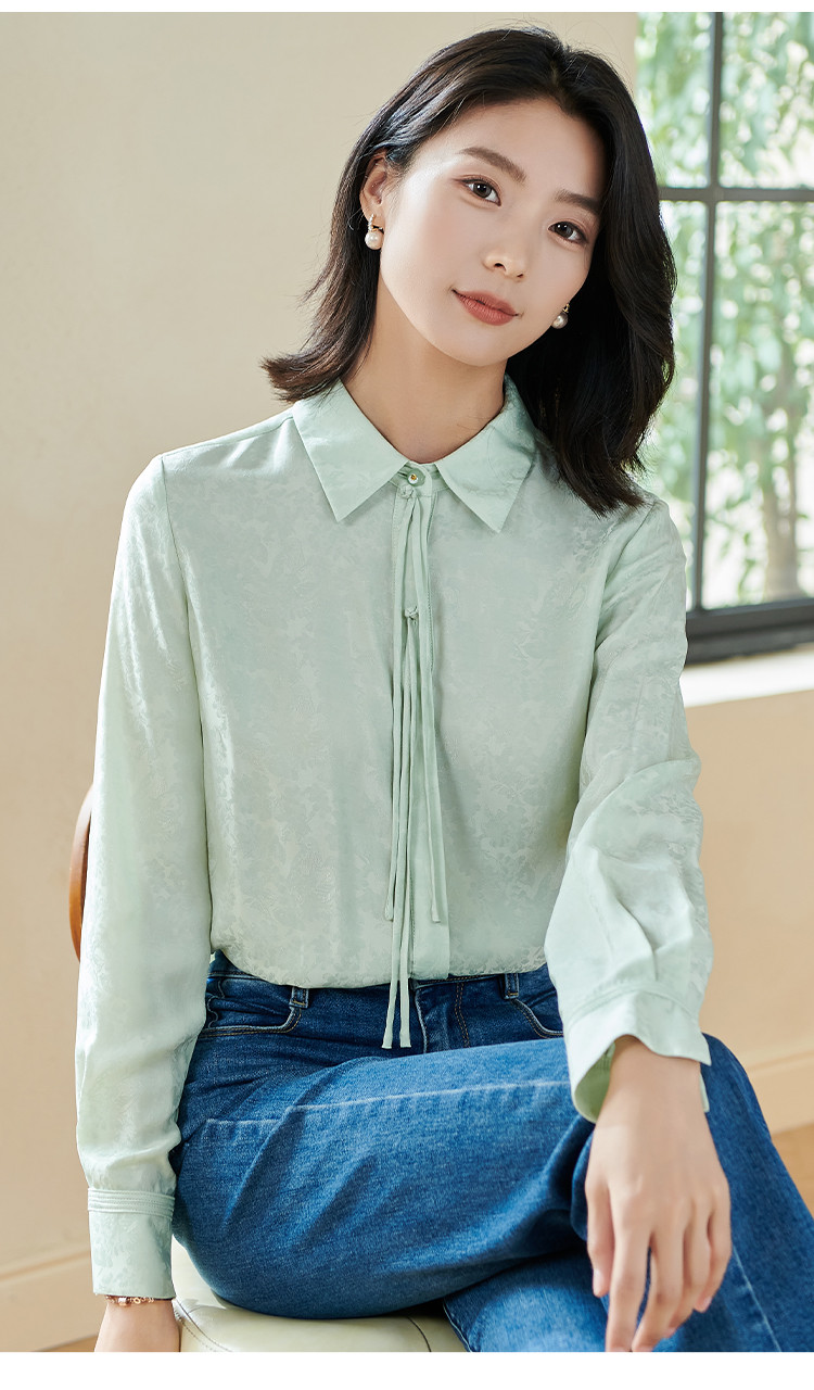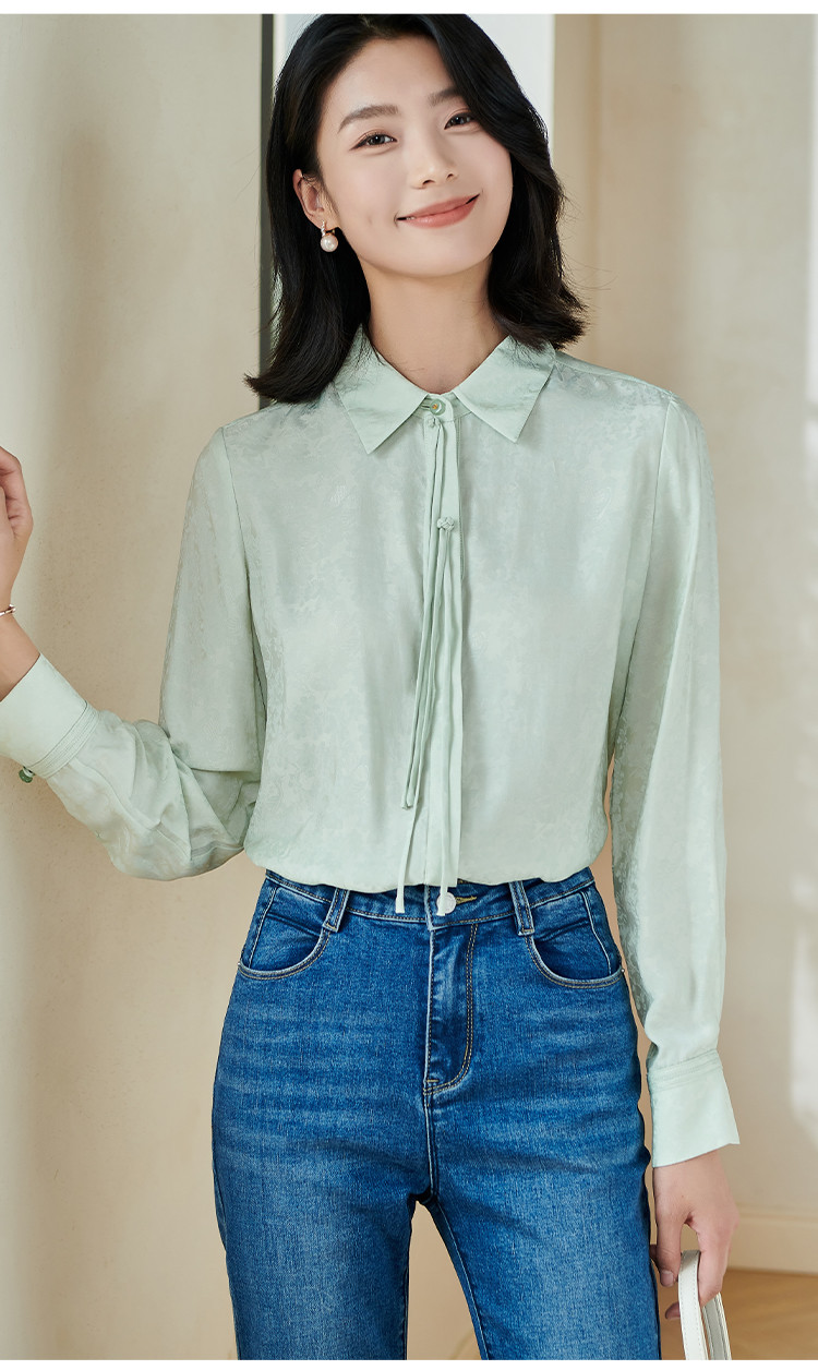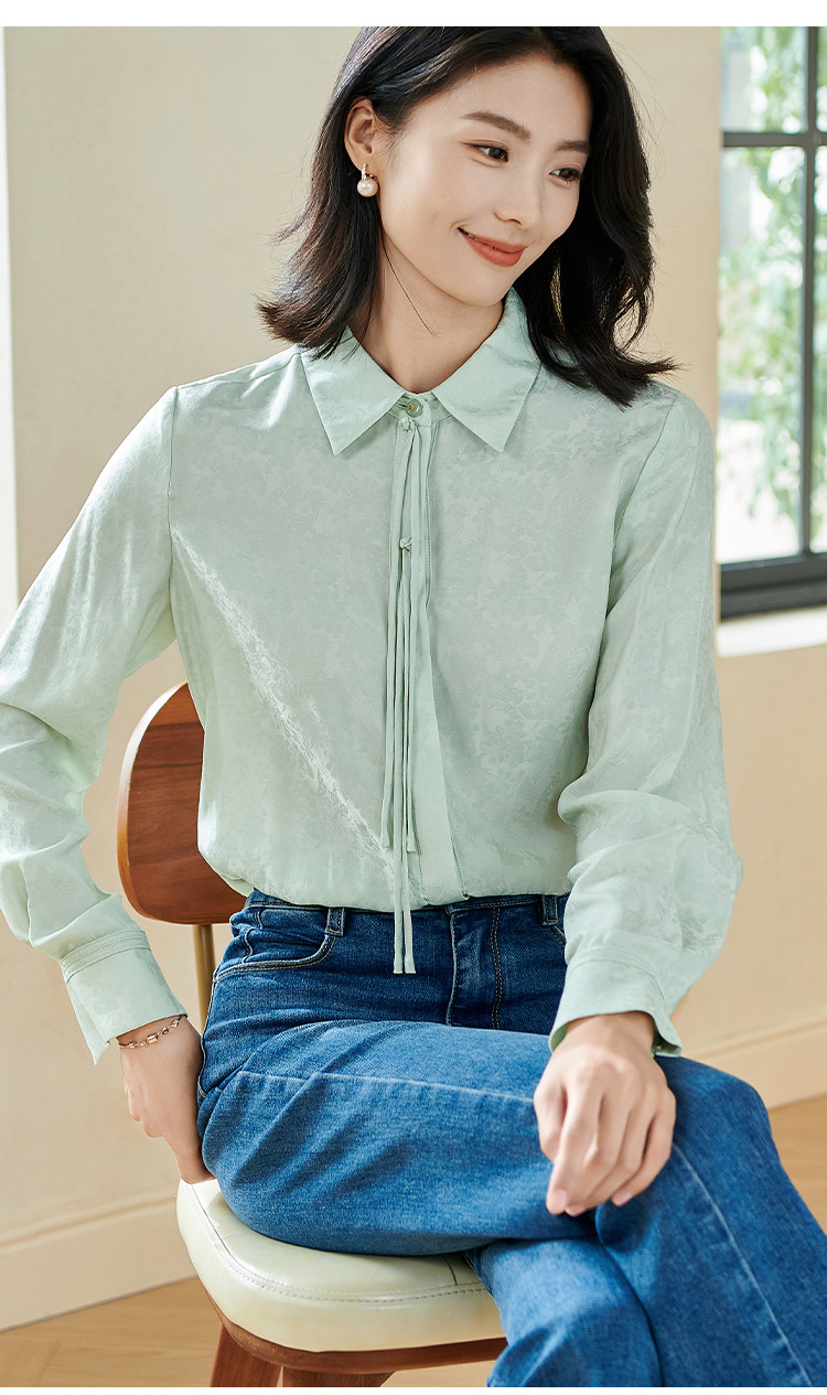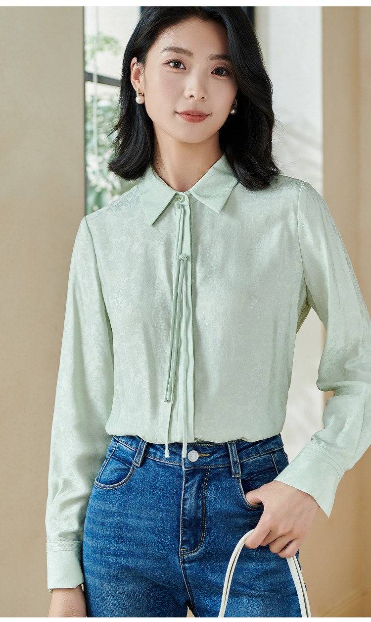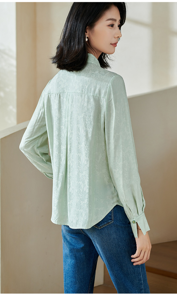剩XL/XXL 米思阳2026春季新款新中式气质提花衬衫缎感直筒修身绿色上衣0065