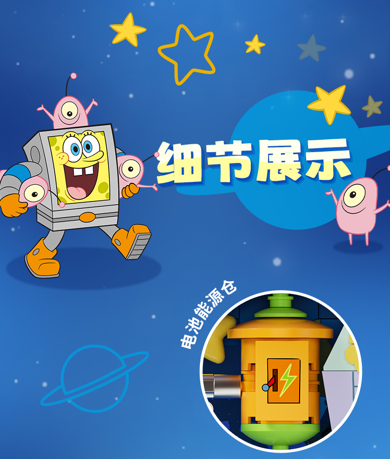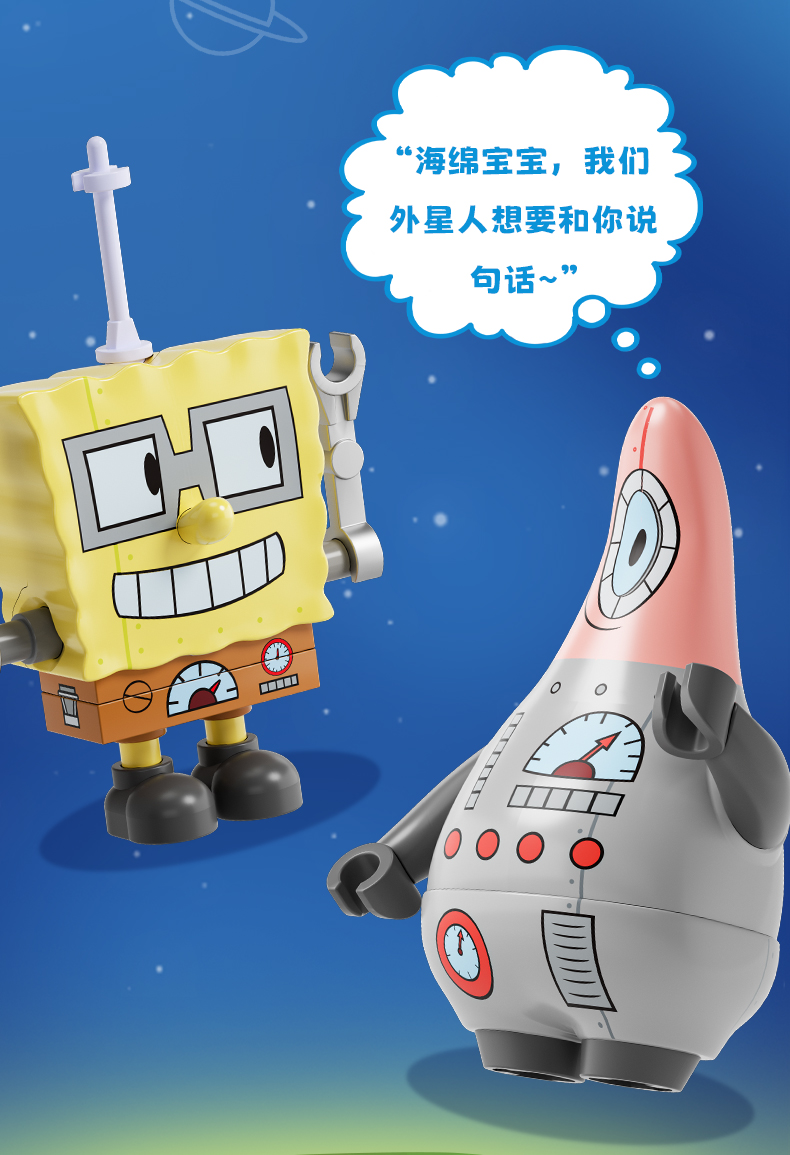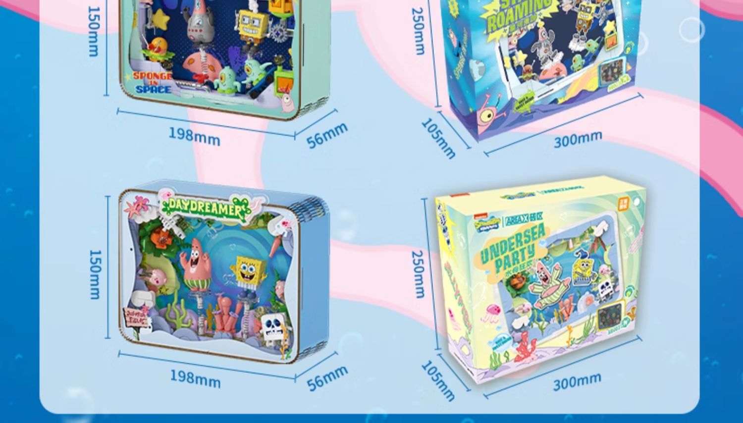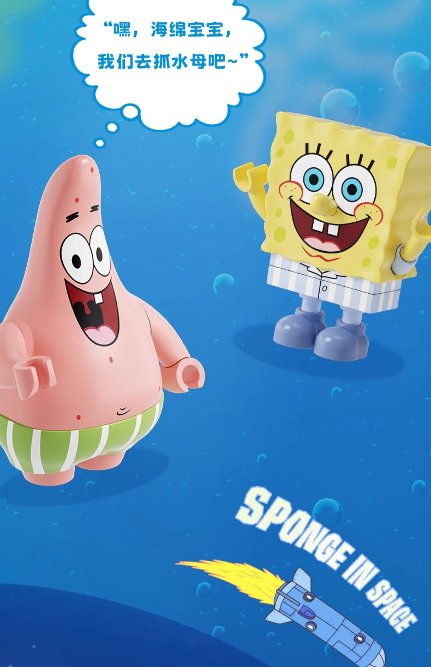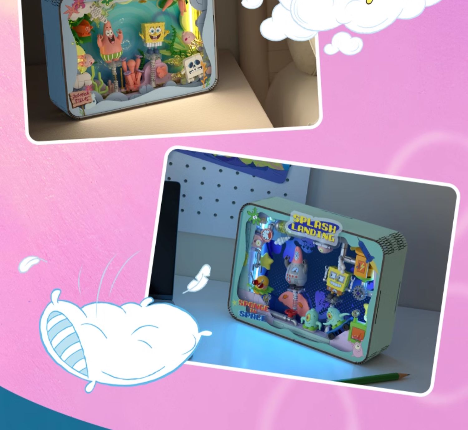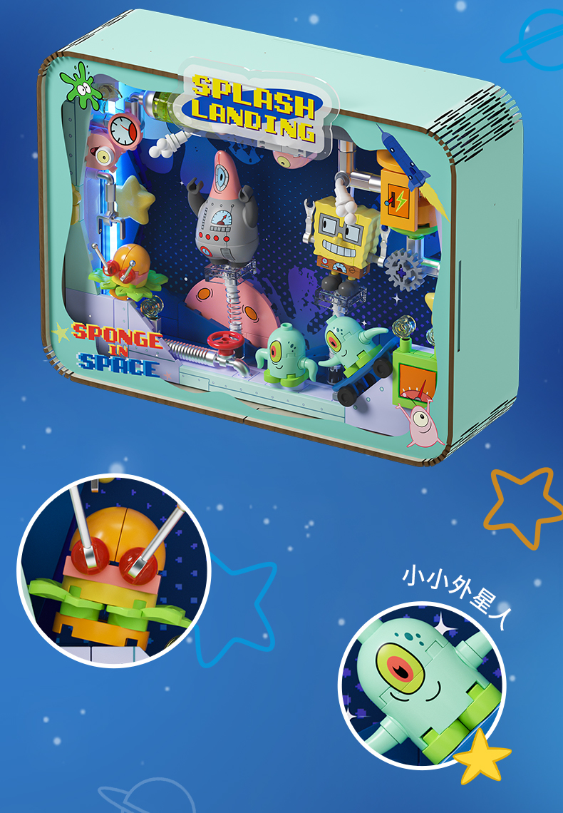 Areax砖区海绵宝宝正版授权积木 水母狂欢/星河漫游相框造型可选;✅感应灯光,拍打亮灯; ✅弹簧设计,人仔可动; ✅场景还原,木质新款