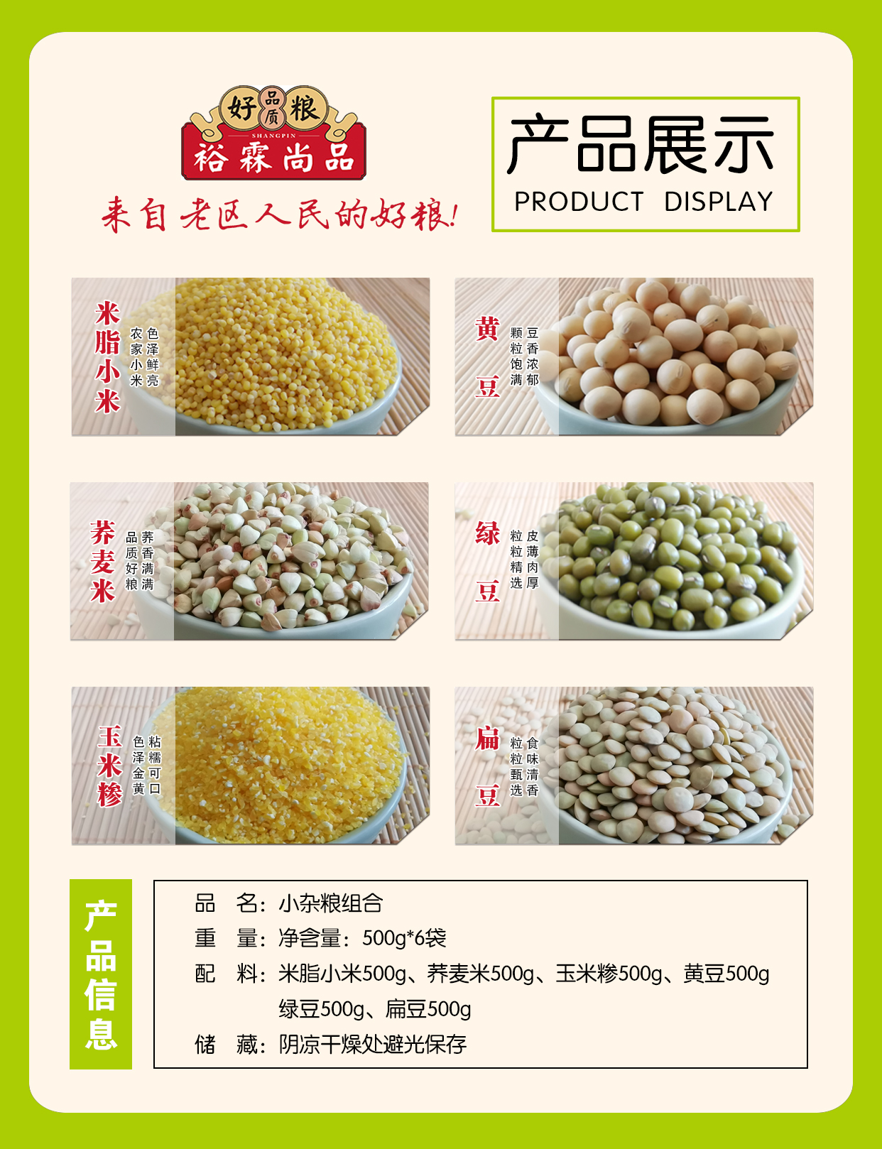 小米500g/荞麦米500g/玉米糁500g/黄豆500g/扁豆500g/绿豆500g