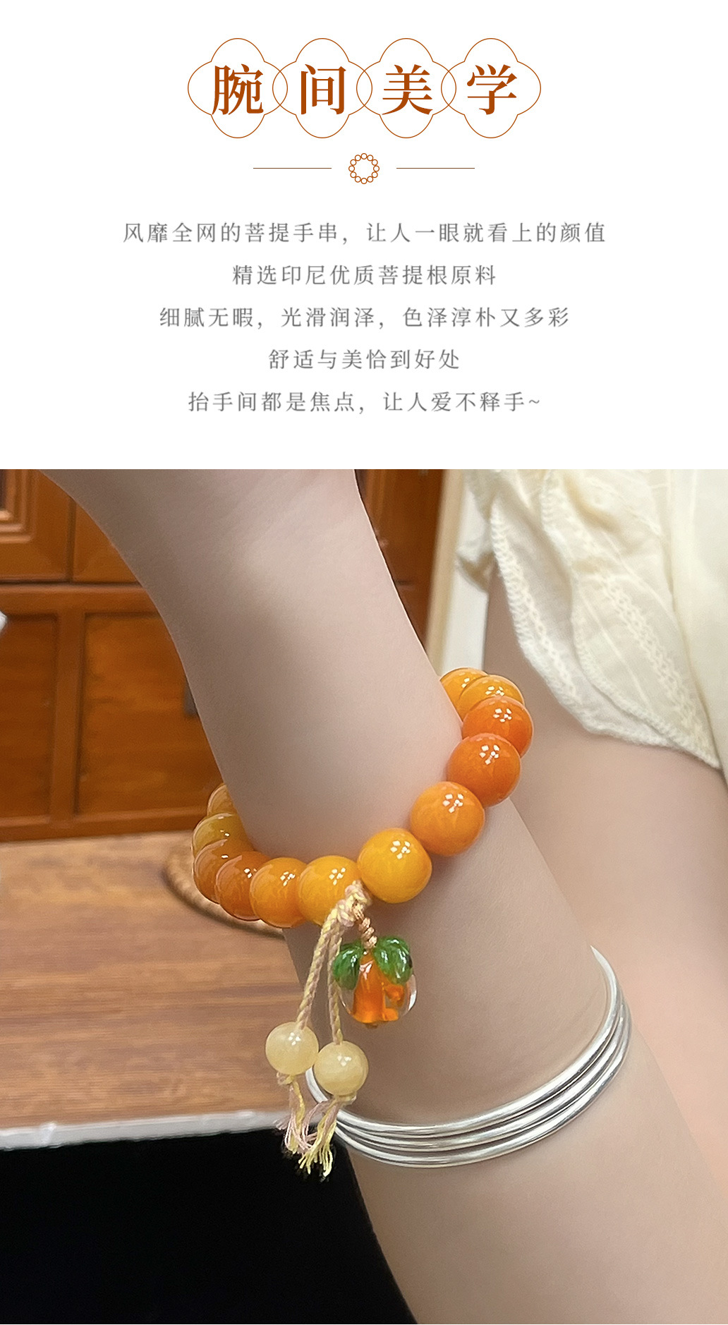 「19.9到手!柿柿平安」新款菩提根单圈手串 佛珠手链时尚饰品