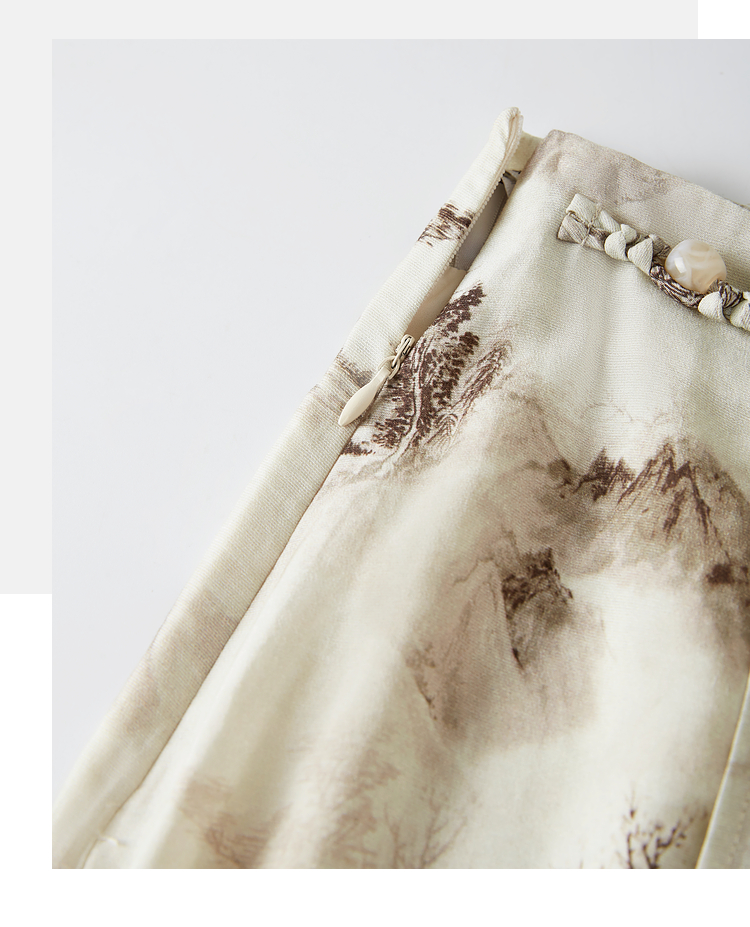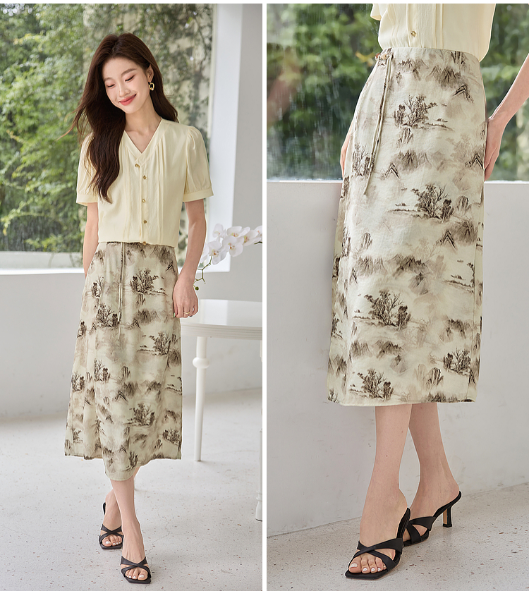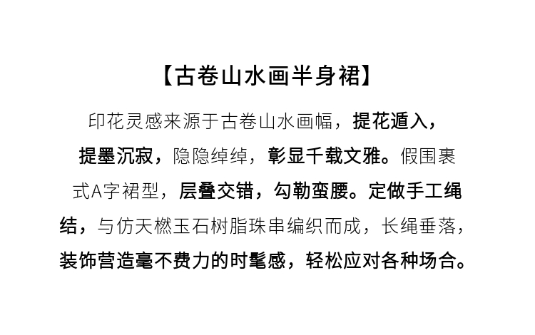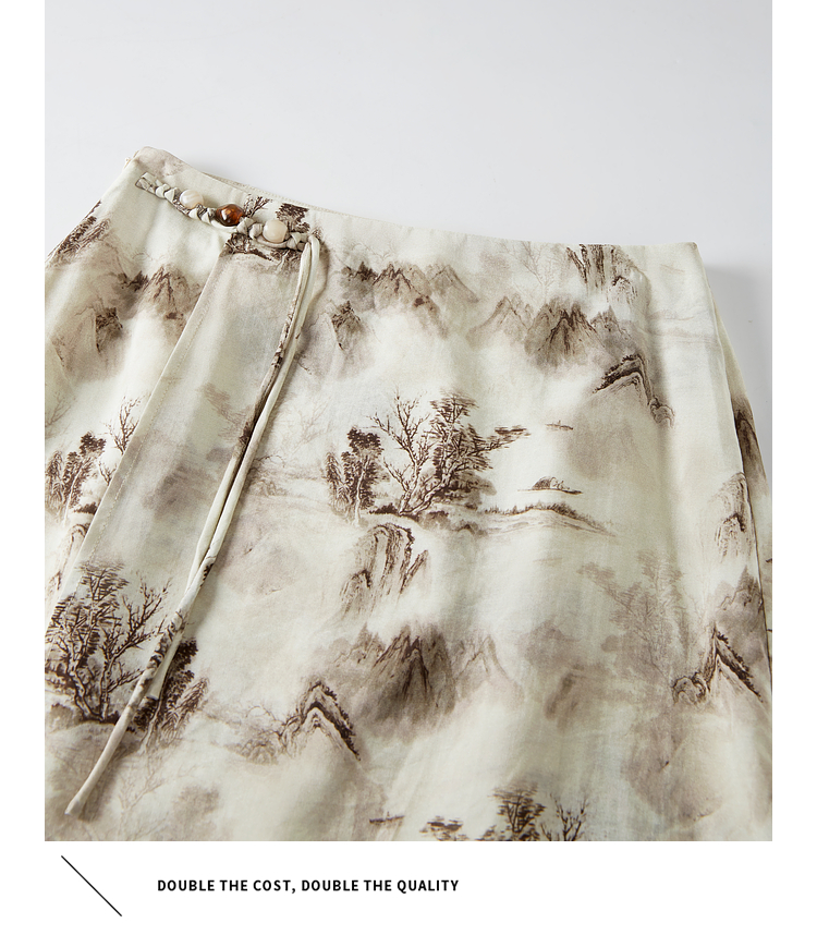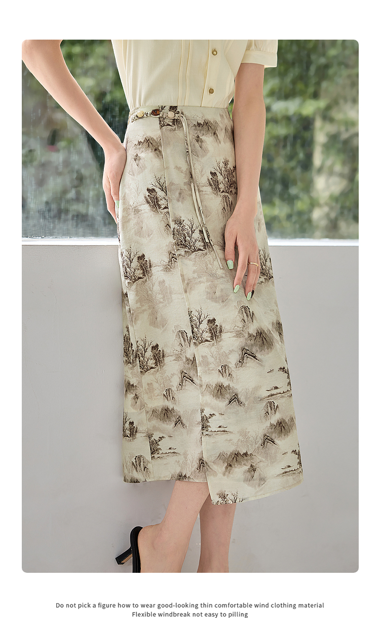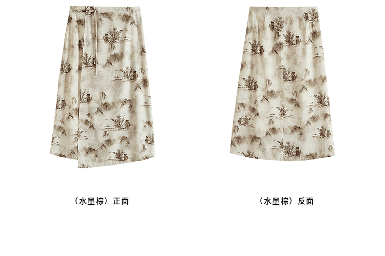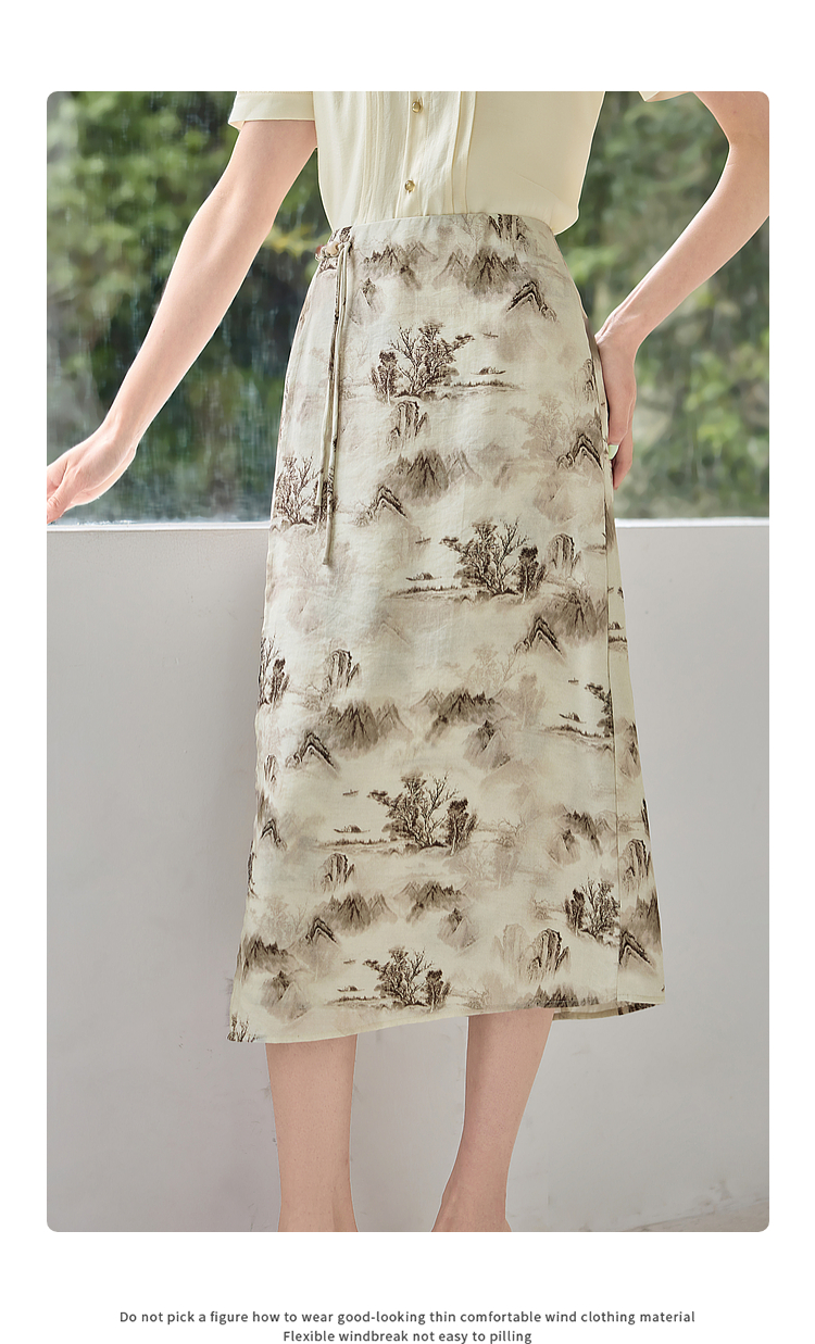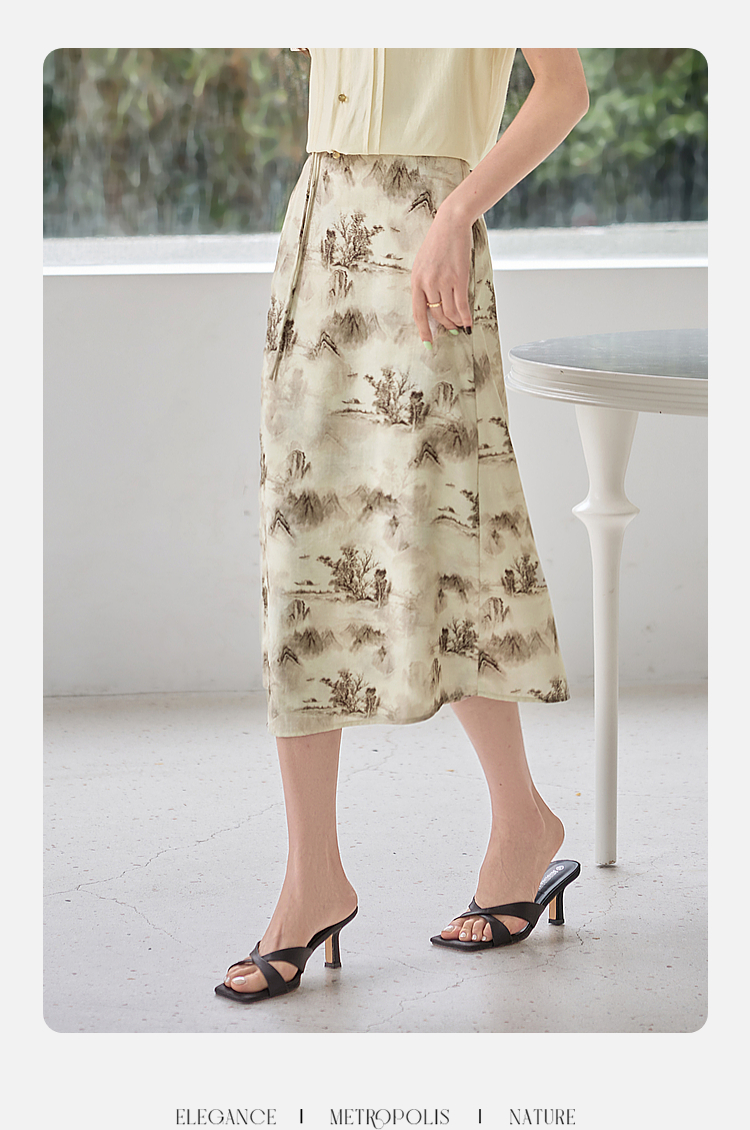 【专属特价】熙世界国风山水墨画印花半身裙2025夏季新款新中式a字中长裙子