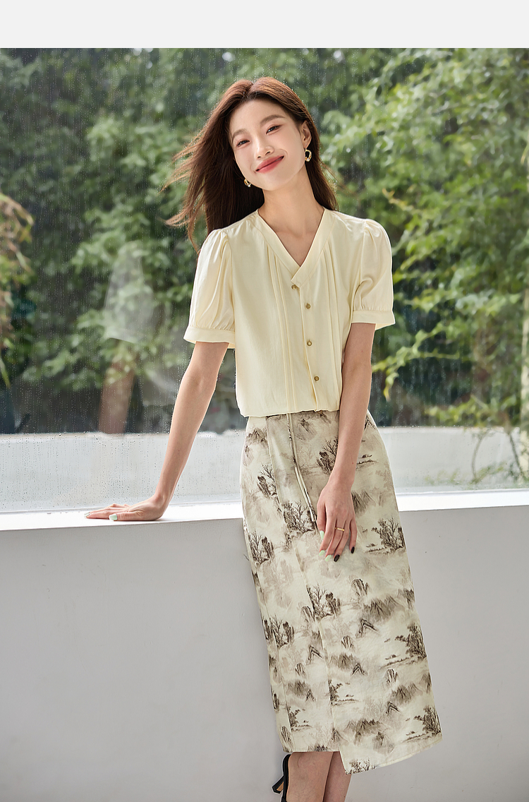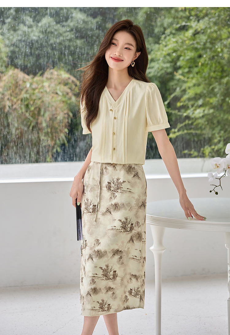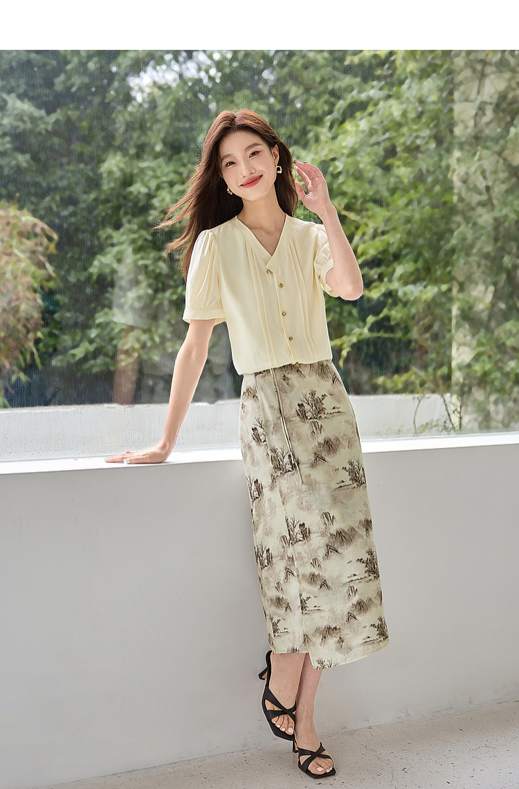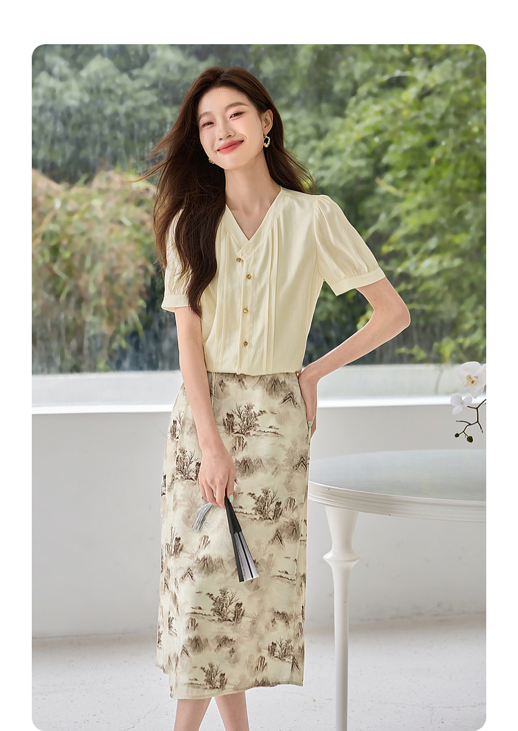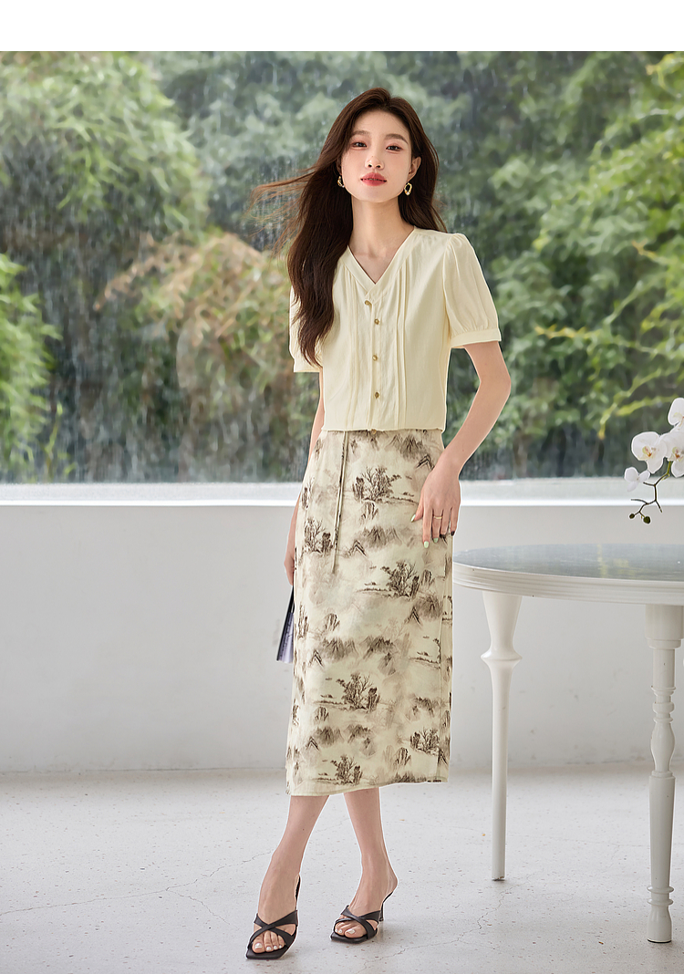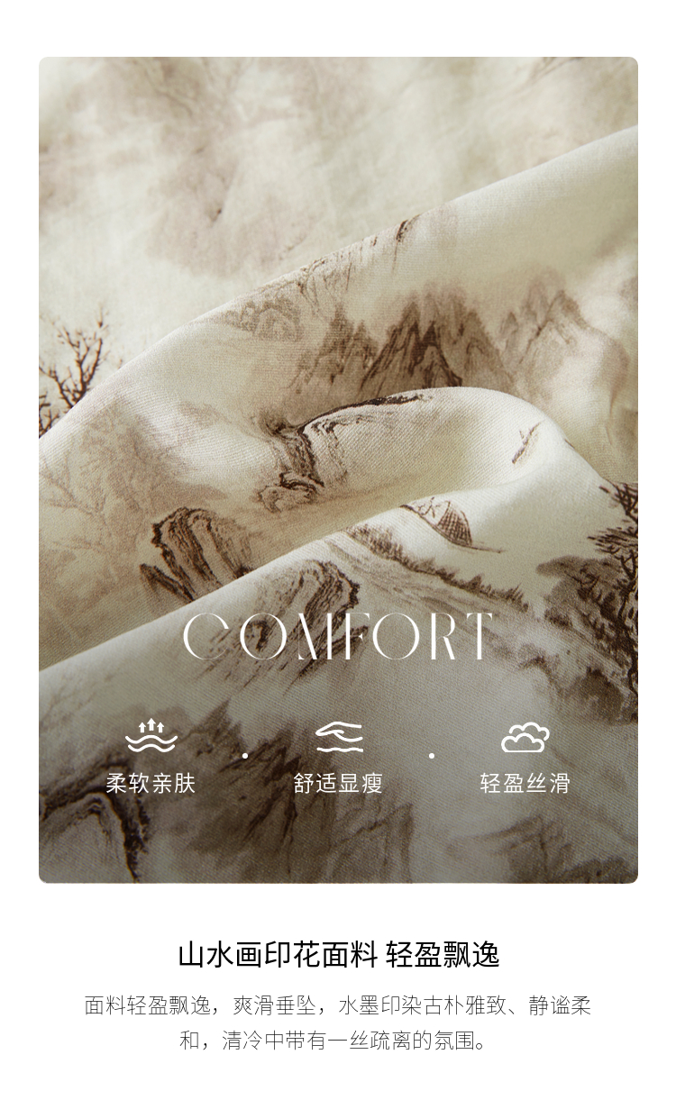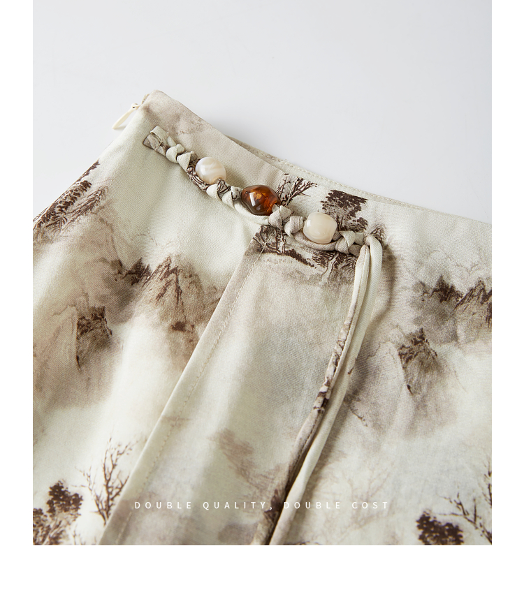 【专属特价】熙世界国风山水墨画印花半身裙2025夏季新款新中式a字中长裙子