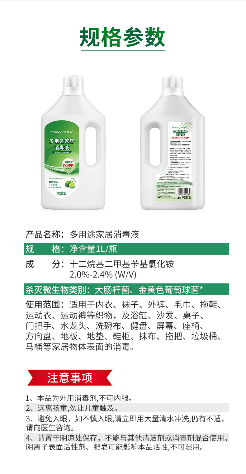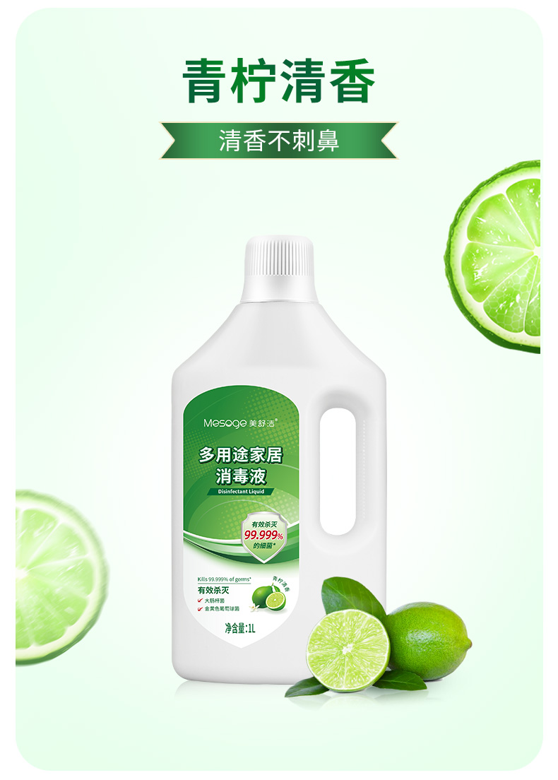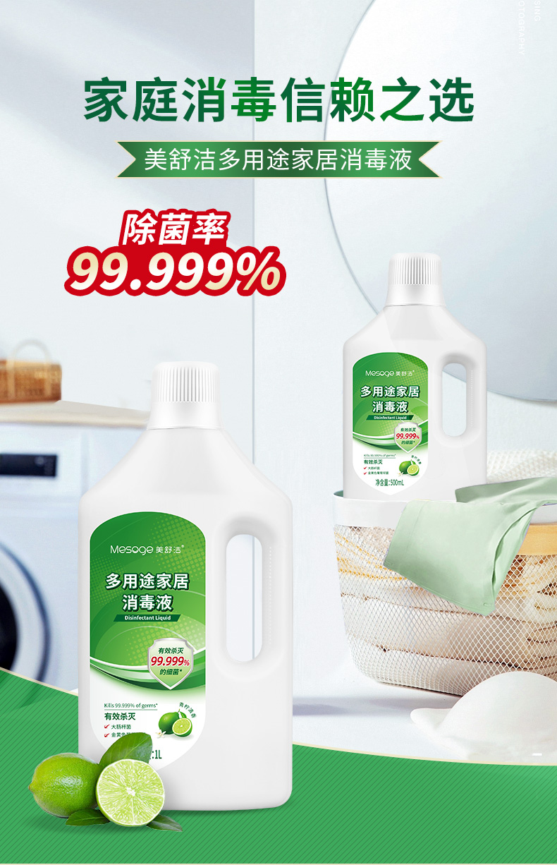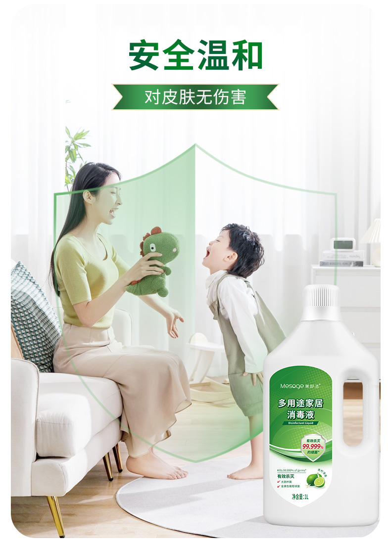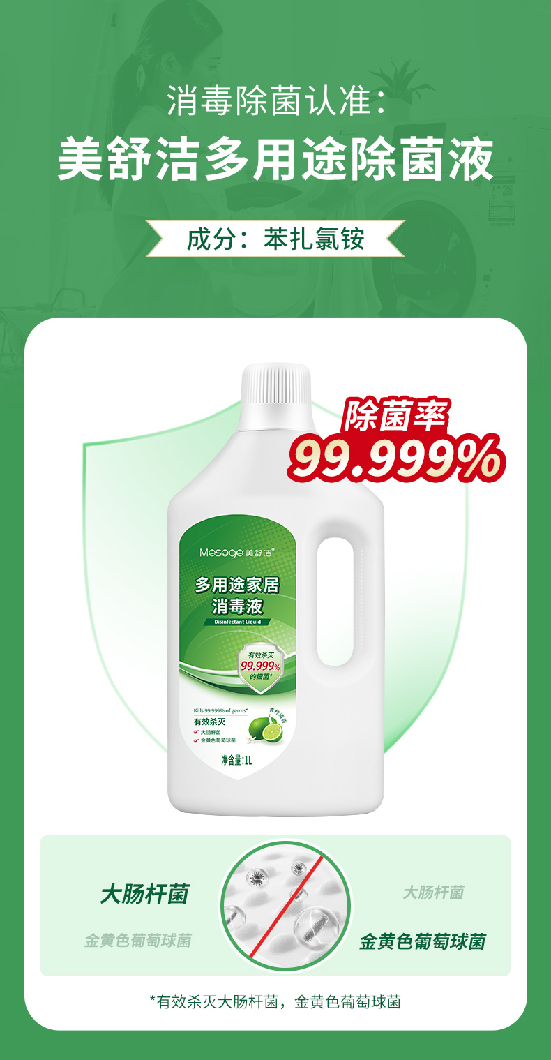 美舒洁苯扎氯铵家居消毒液1L+500ml