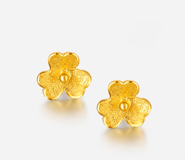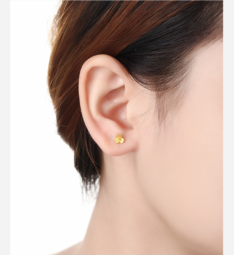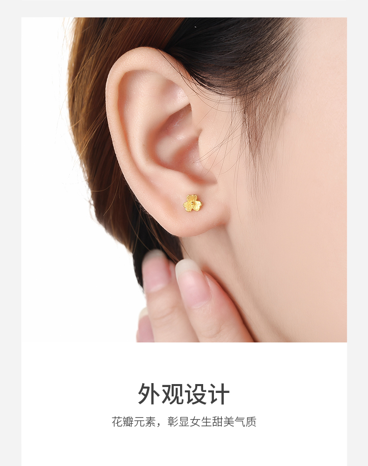 周六福黄金耳钉女款耳针迷你小金花足金耳饰定价