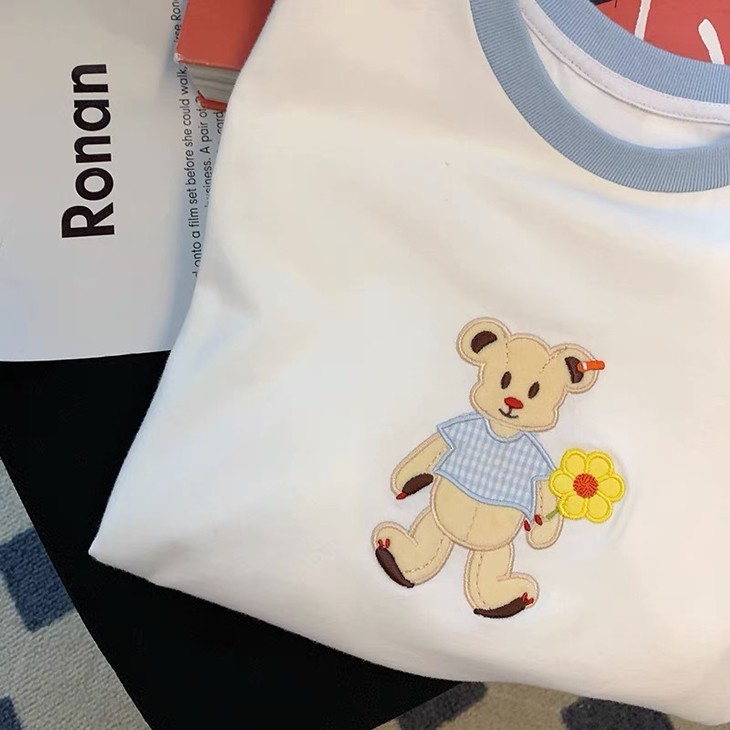 「刺绣款!49.9元包邮」夏季小熊绣花学生白色短袖t恤女宽松短袖t恤上衣