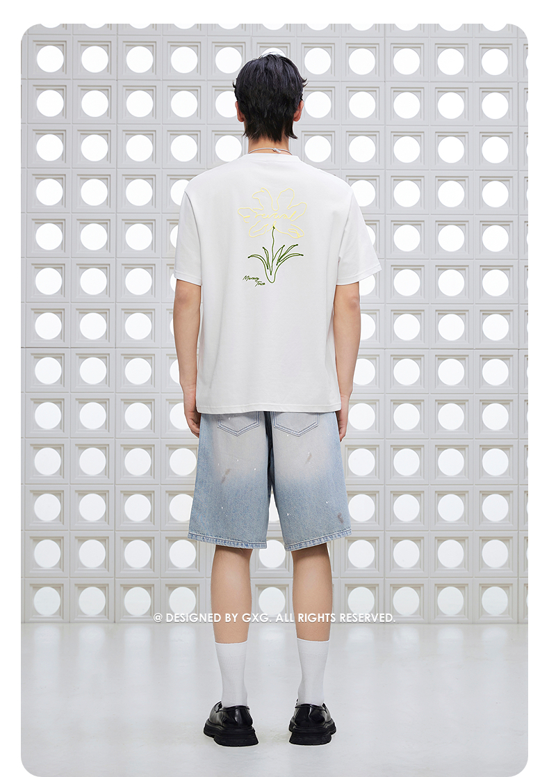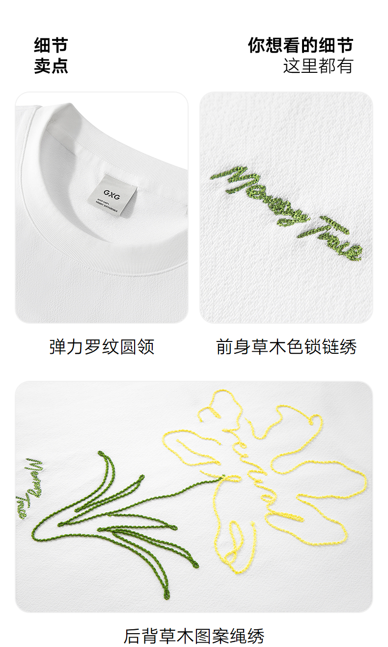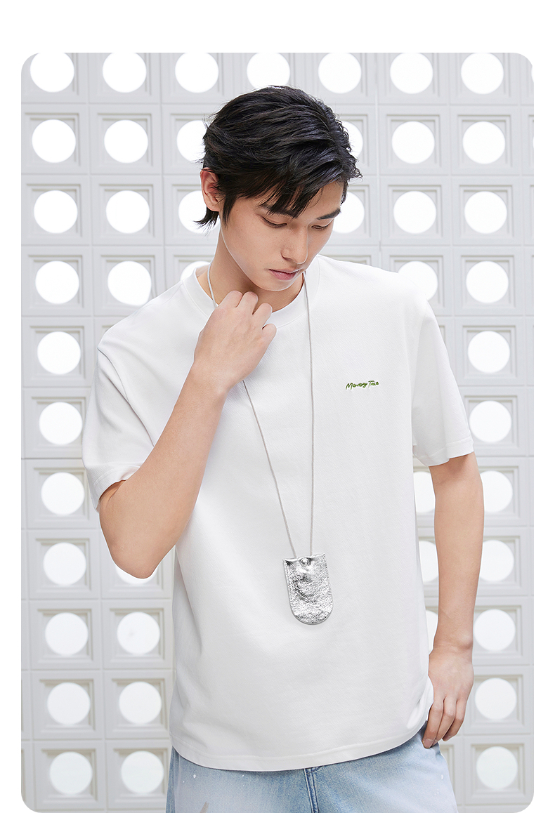 GXG男装 圆领T恤背后刺绣上衣短袖针织 2025夏季热卖
