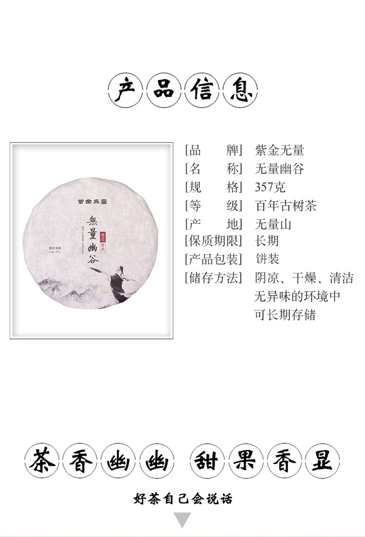 普洱生茶 | 紫金无量 2019年 无量幽谷 百年古树生茶(秋茶) 357g