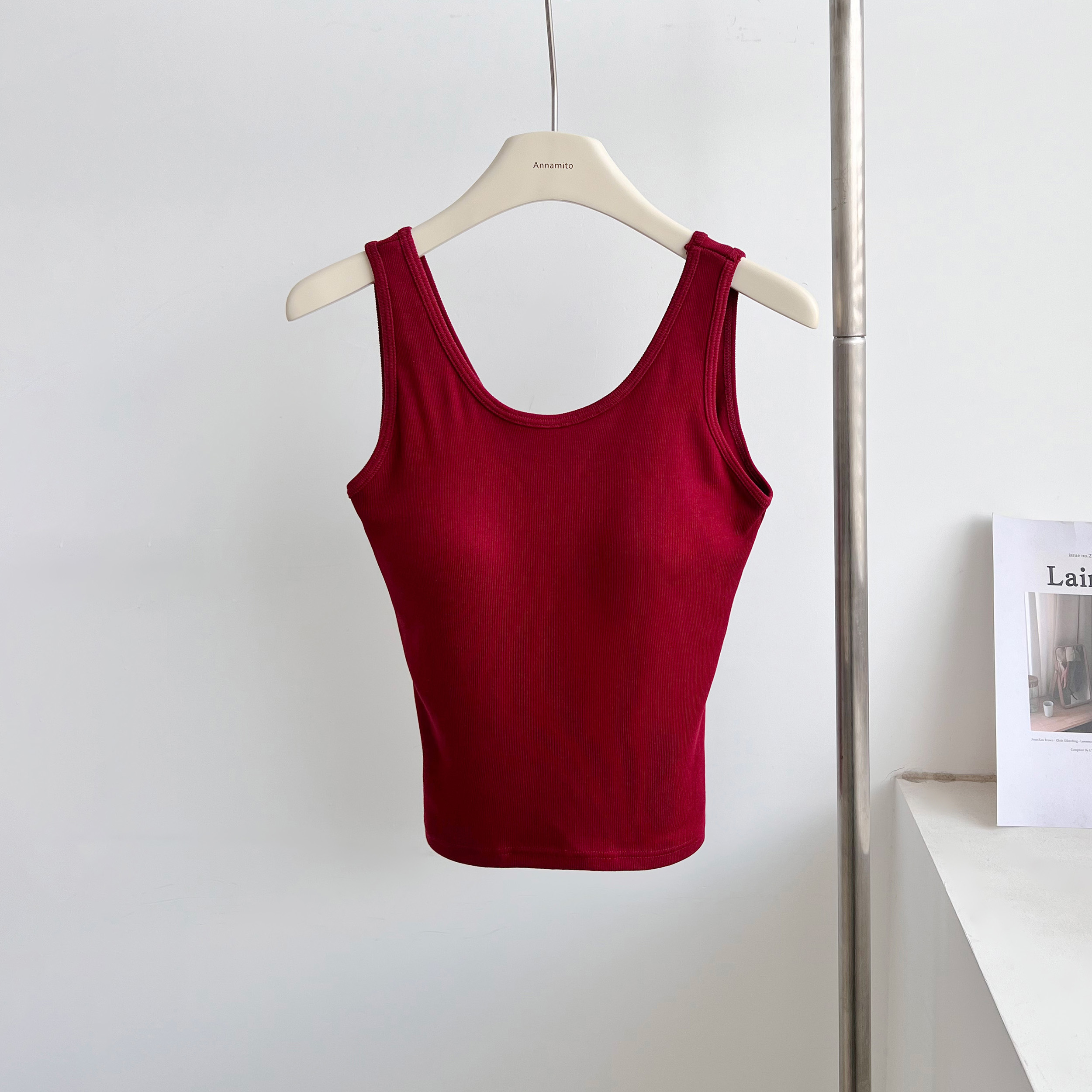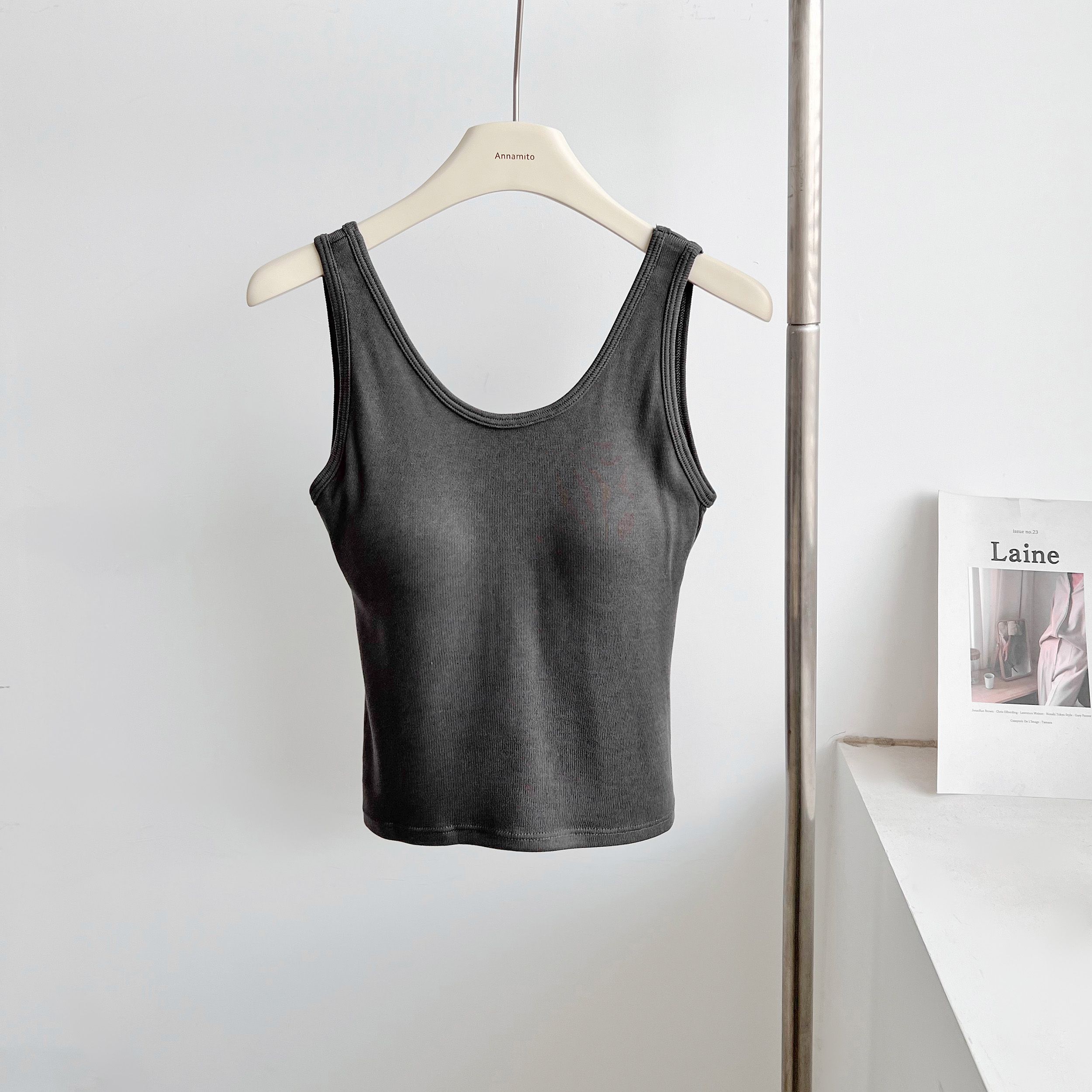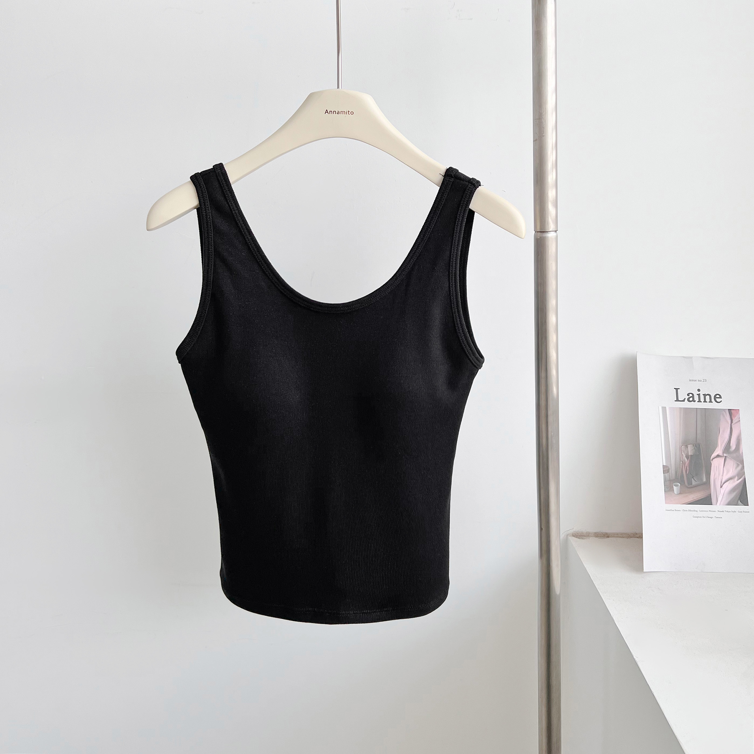 老米优品🎈5-7天。法式简约 品质nice《显瘦磨毛绒无袖U型美背背心》自带胸垫,舒适自由~~ BX240913A