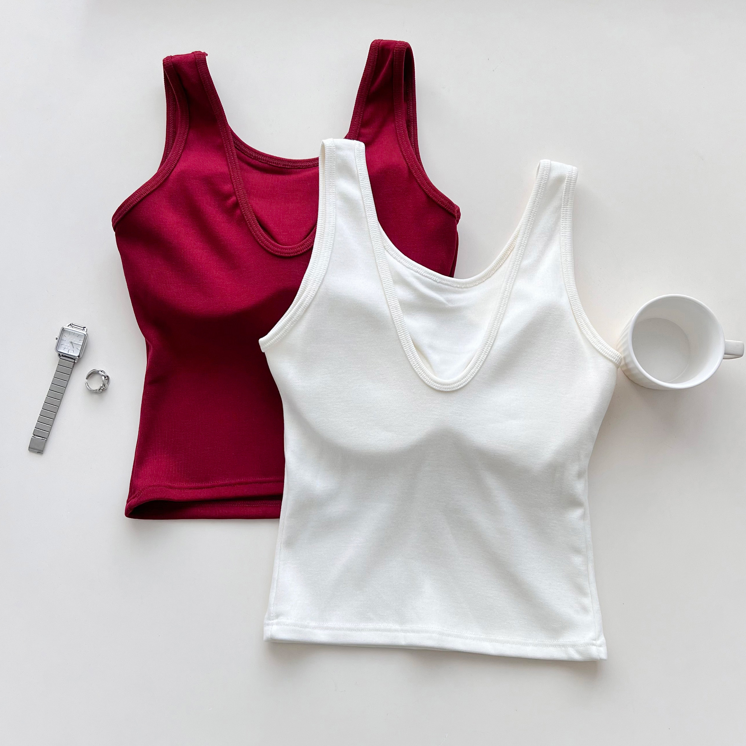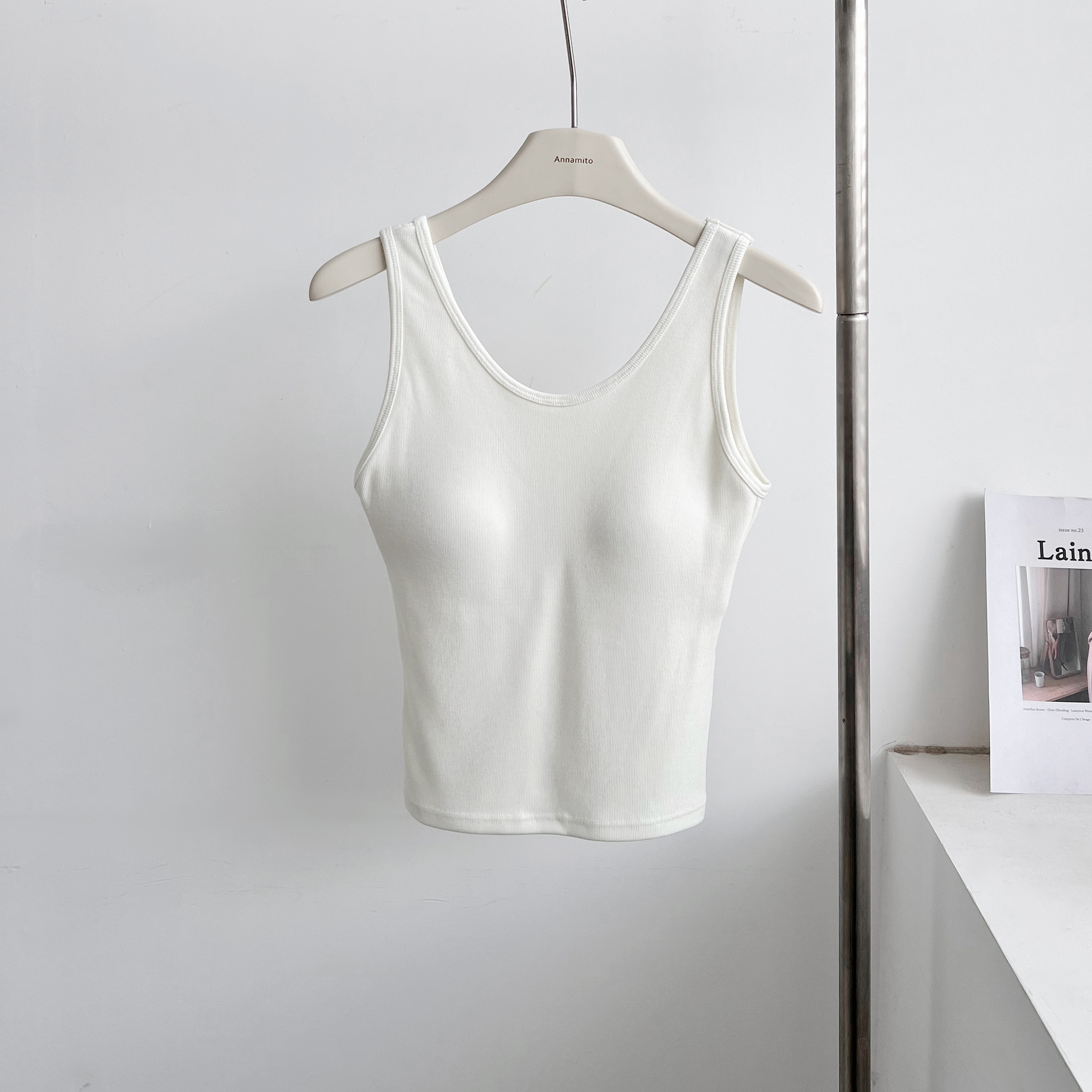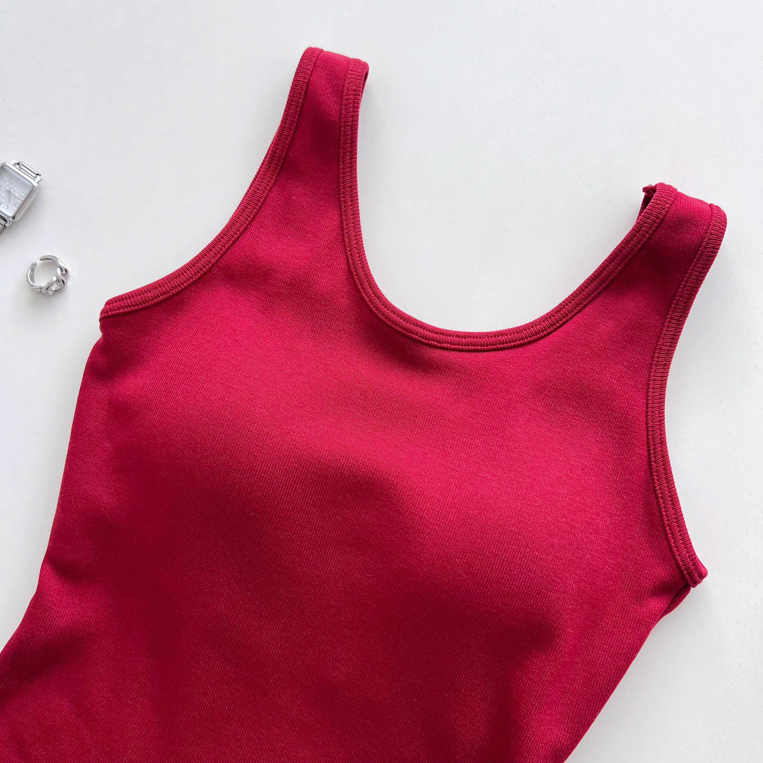 老米优品🎈5-7天。法式简约 品质nice《显瘦磨毛绒无袖U型美背背心》自带胸垫,舒适自由~~ BX240913A