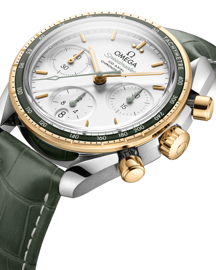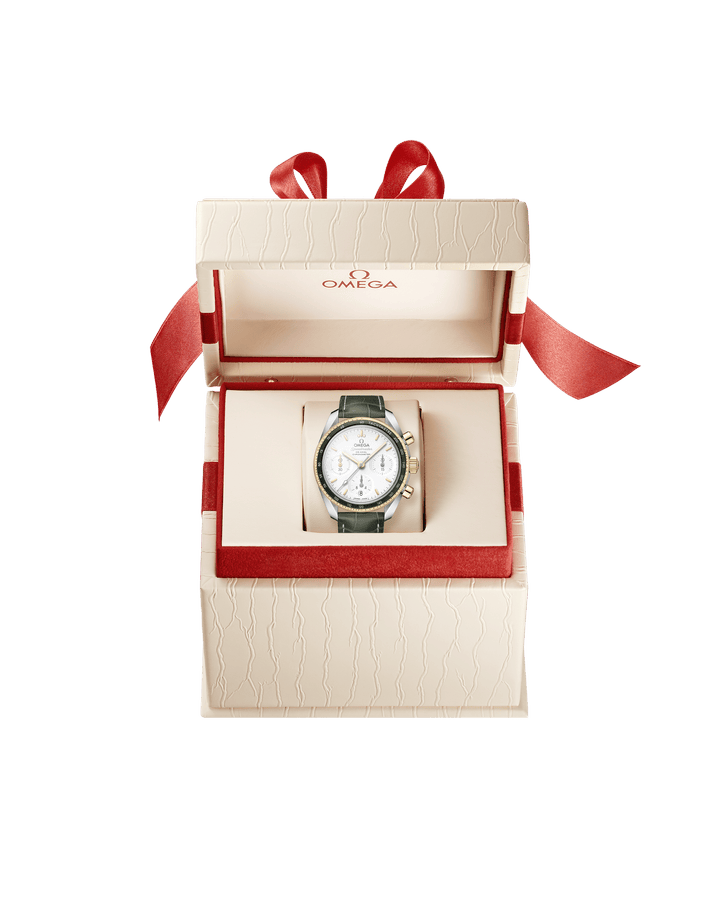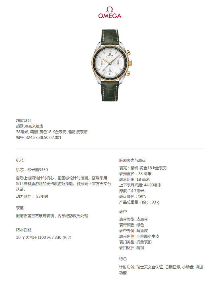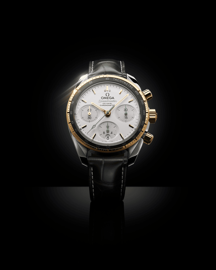 超霸系列38毫米腕表在简约外观、大小以及配色上进行了精心设计,保留了欧米茄出名计时腕表一贯的内在精髓和标志性外观。