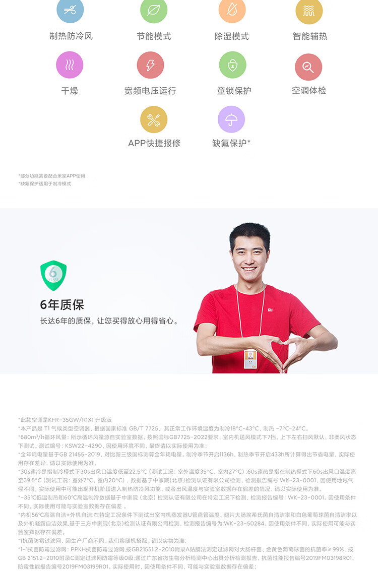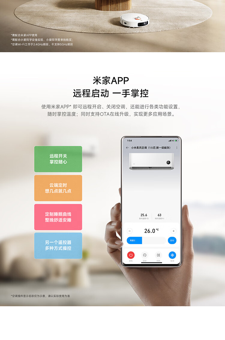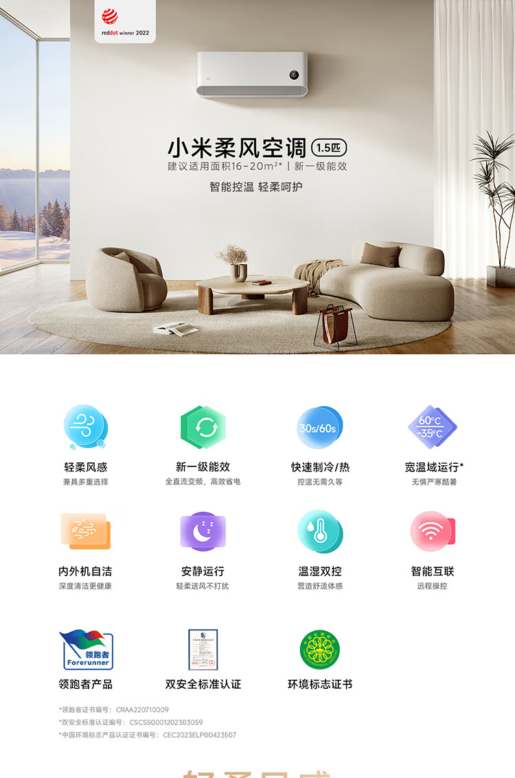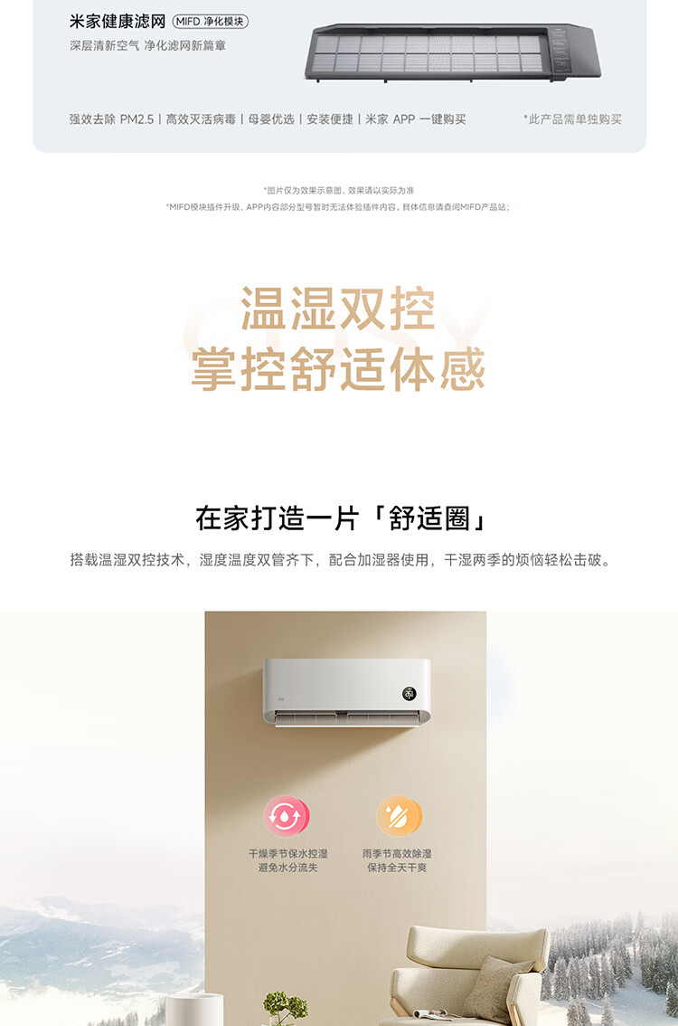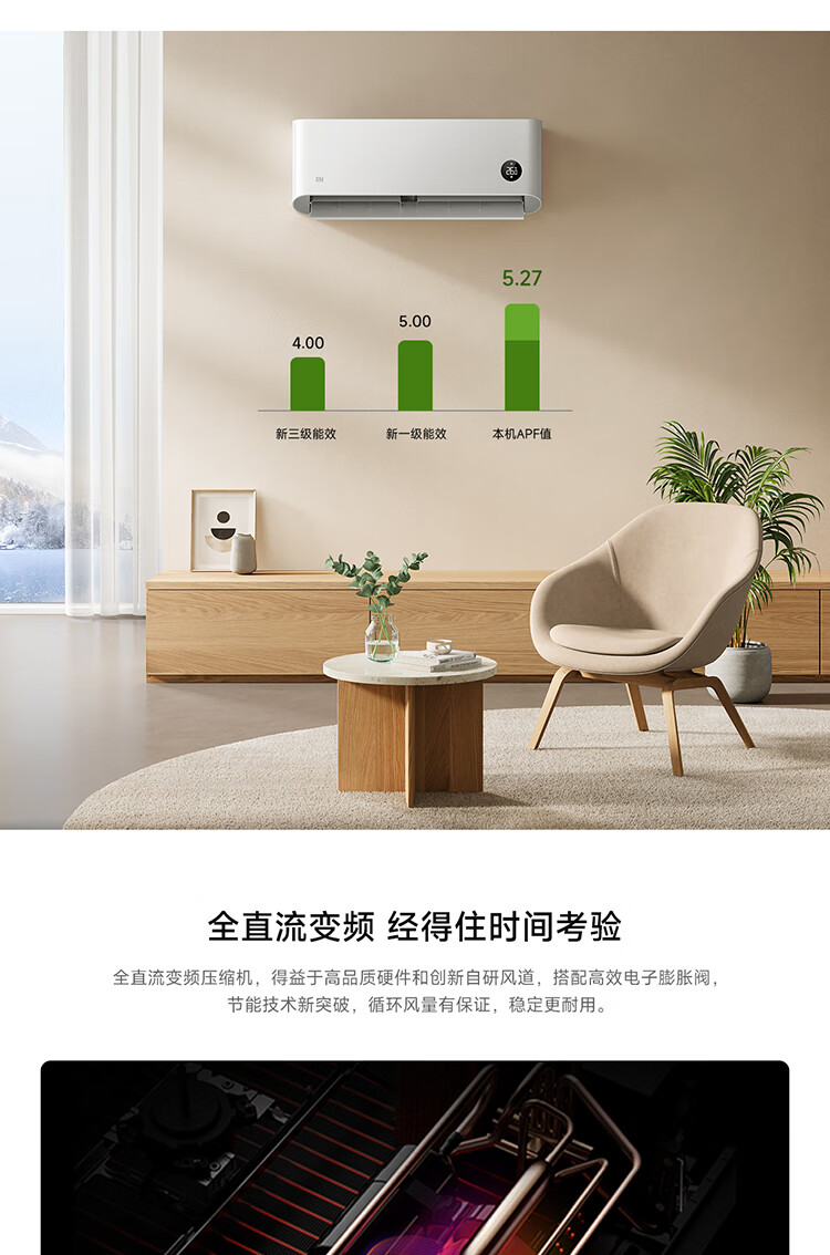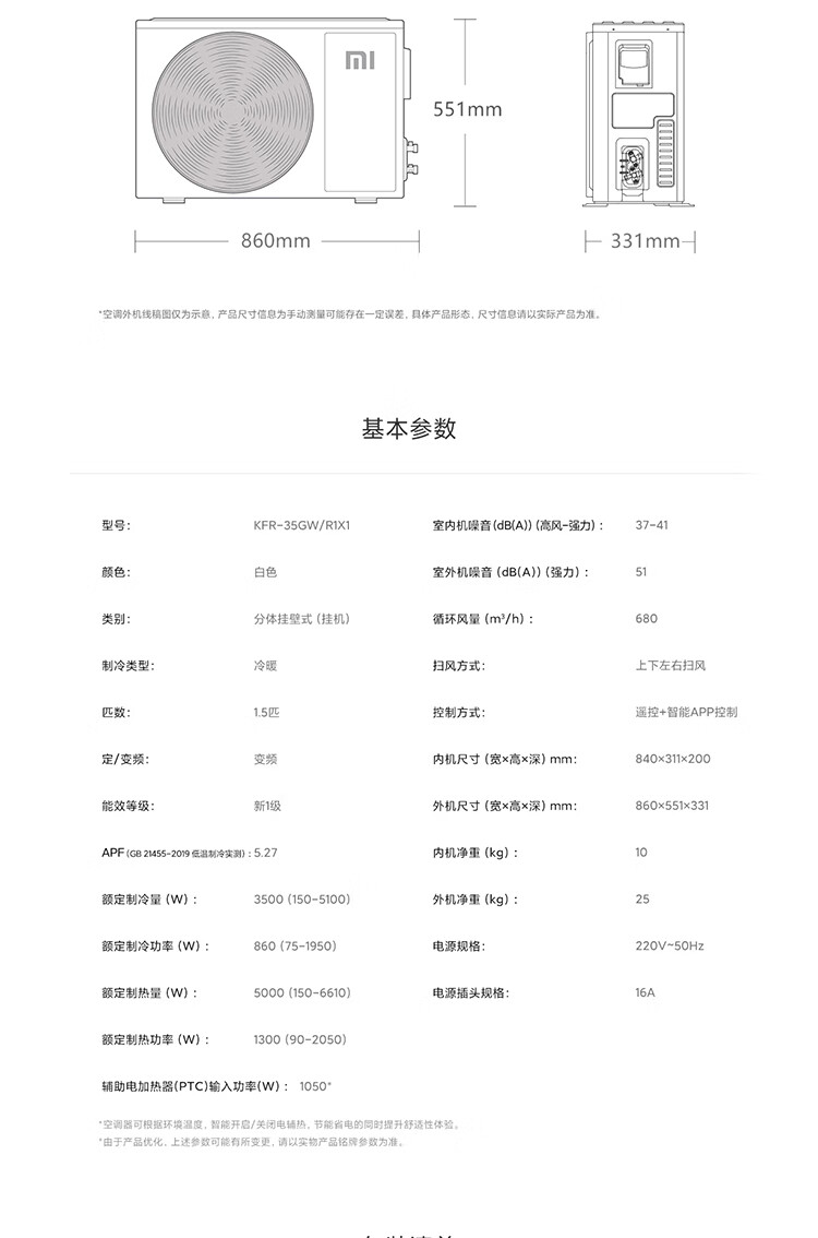 小米(MI)米家柔风空调挂机1.5匹新一级能效卧室壁挂式智能互联冷暖变频空调KFR-35GW/R1X1 1.5匹 一级能效