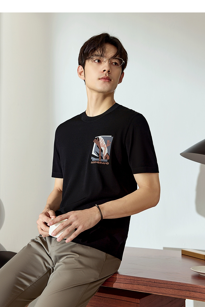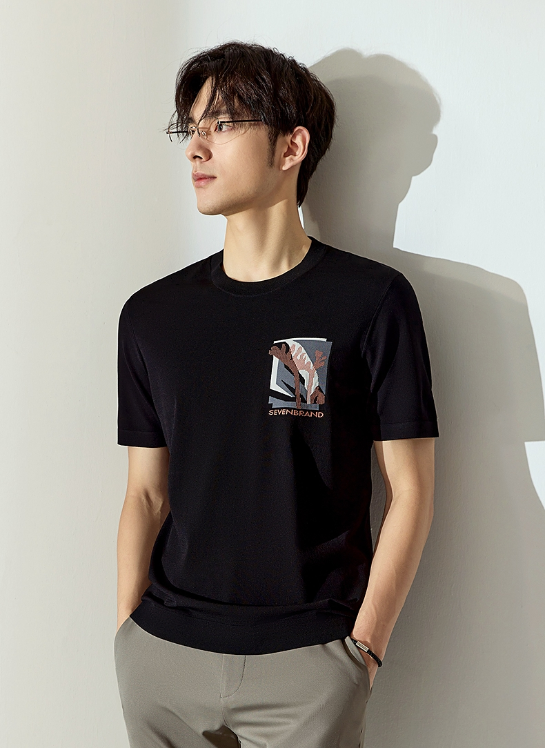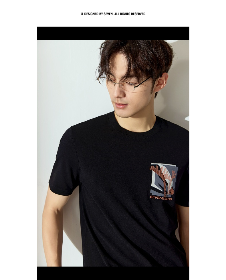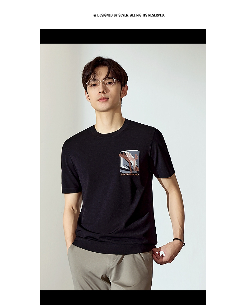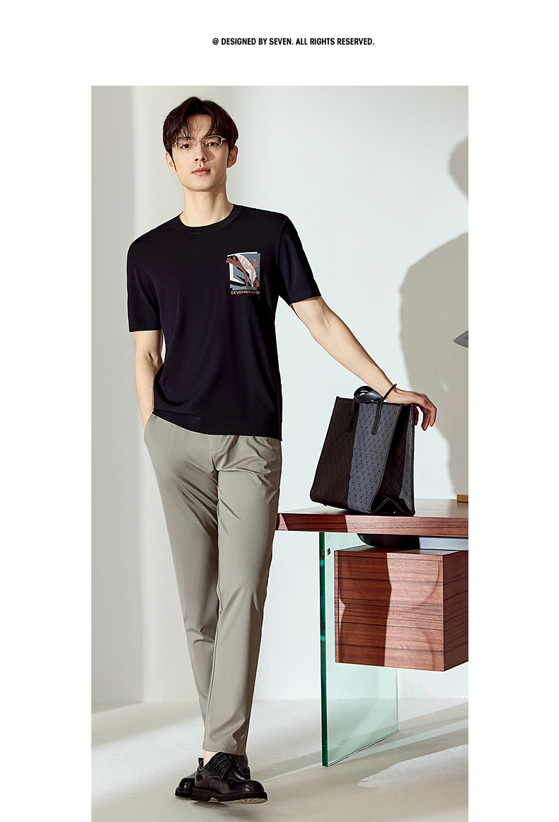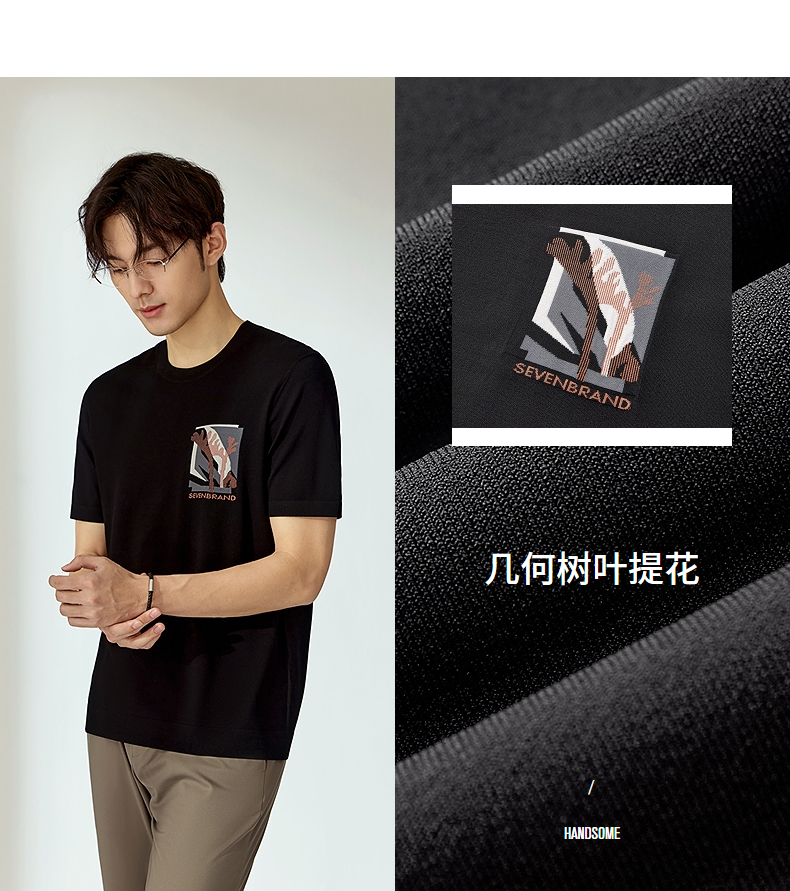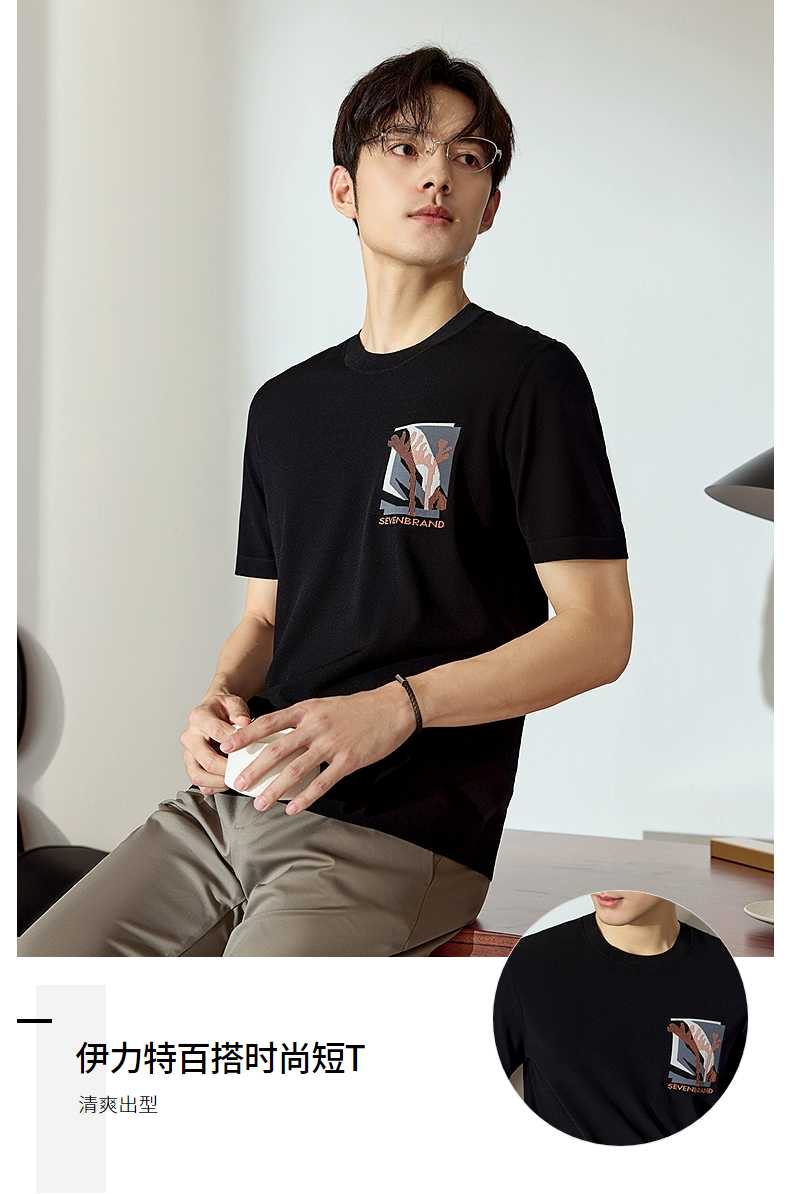 【高端系列】柒牌短袖T恤男夏季凉感时尚休闲伊力特弹力圆领上衣128T70510