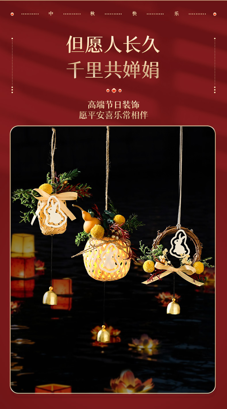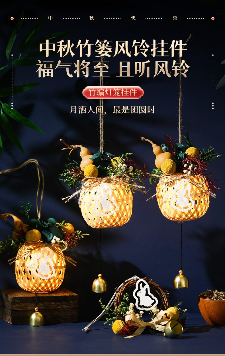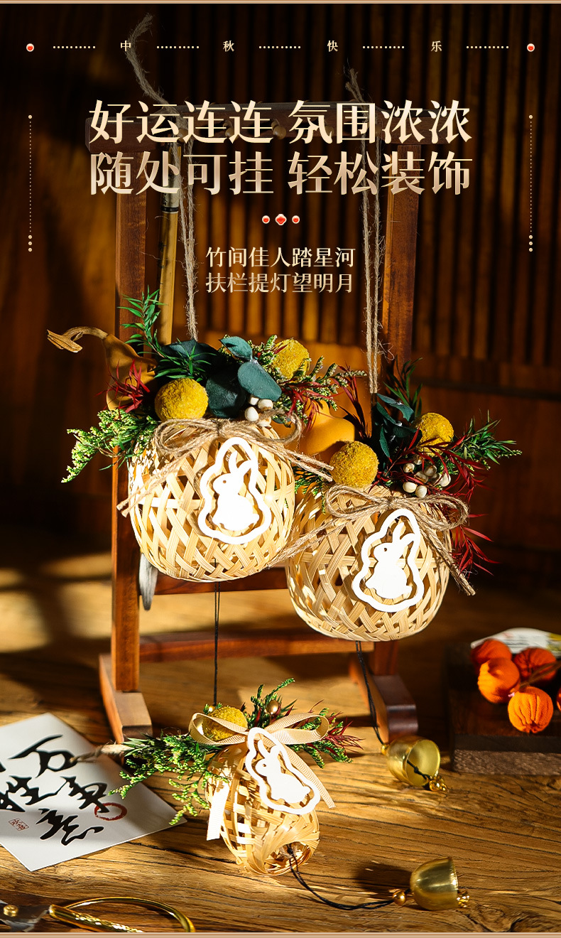 【中秋灯笼竹编手工diy材料包】新款儿童手提古风小兔子花灯挂饰 亲子手工 让小朋友体验动手乐趣
