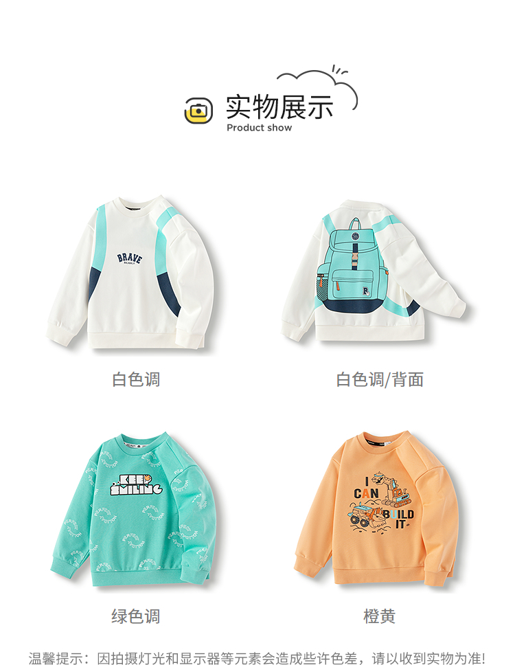 巴拉巴拉童装儿童卫衣男童春秋装印花长袖上衣宽松圆领内搭潮流