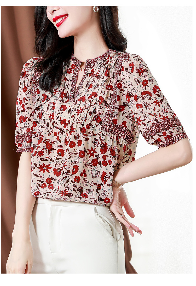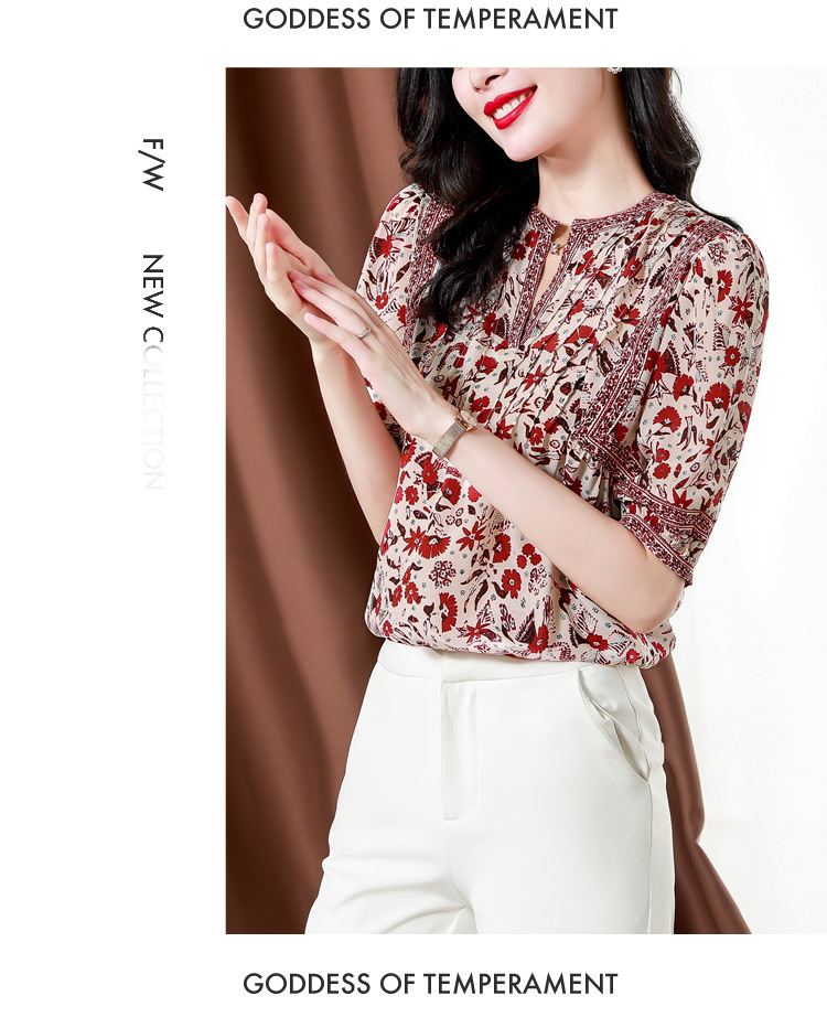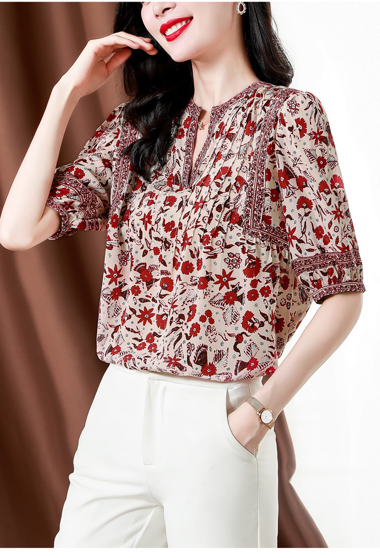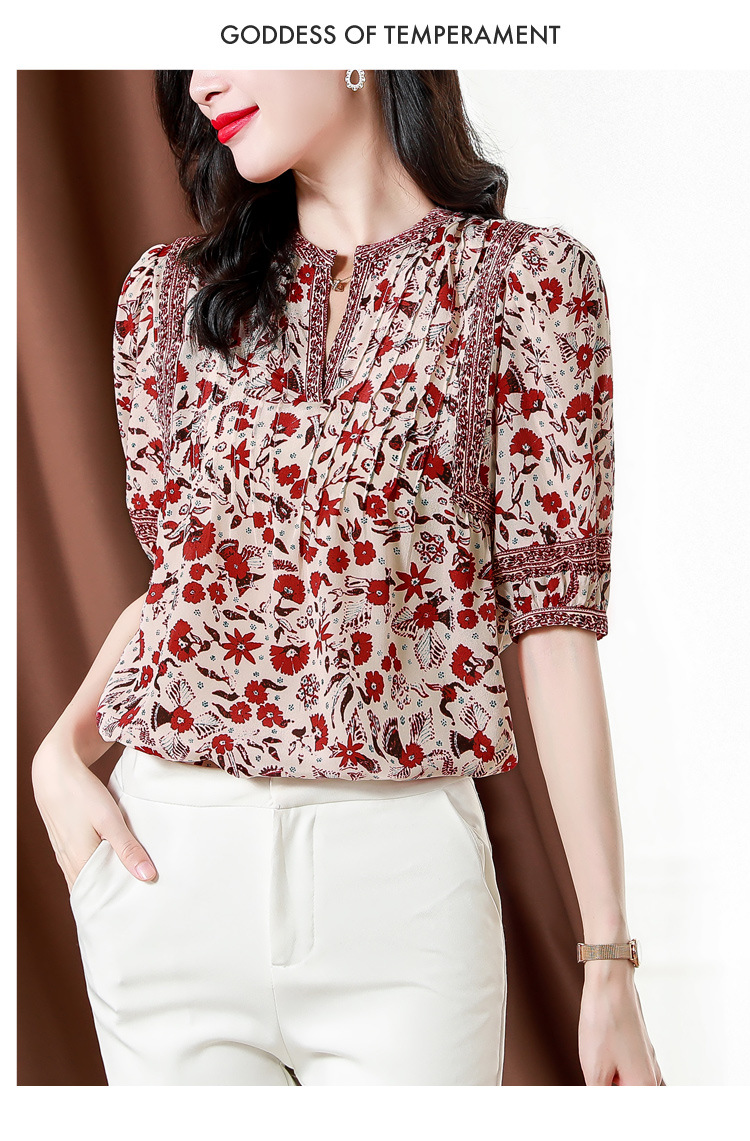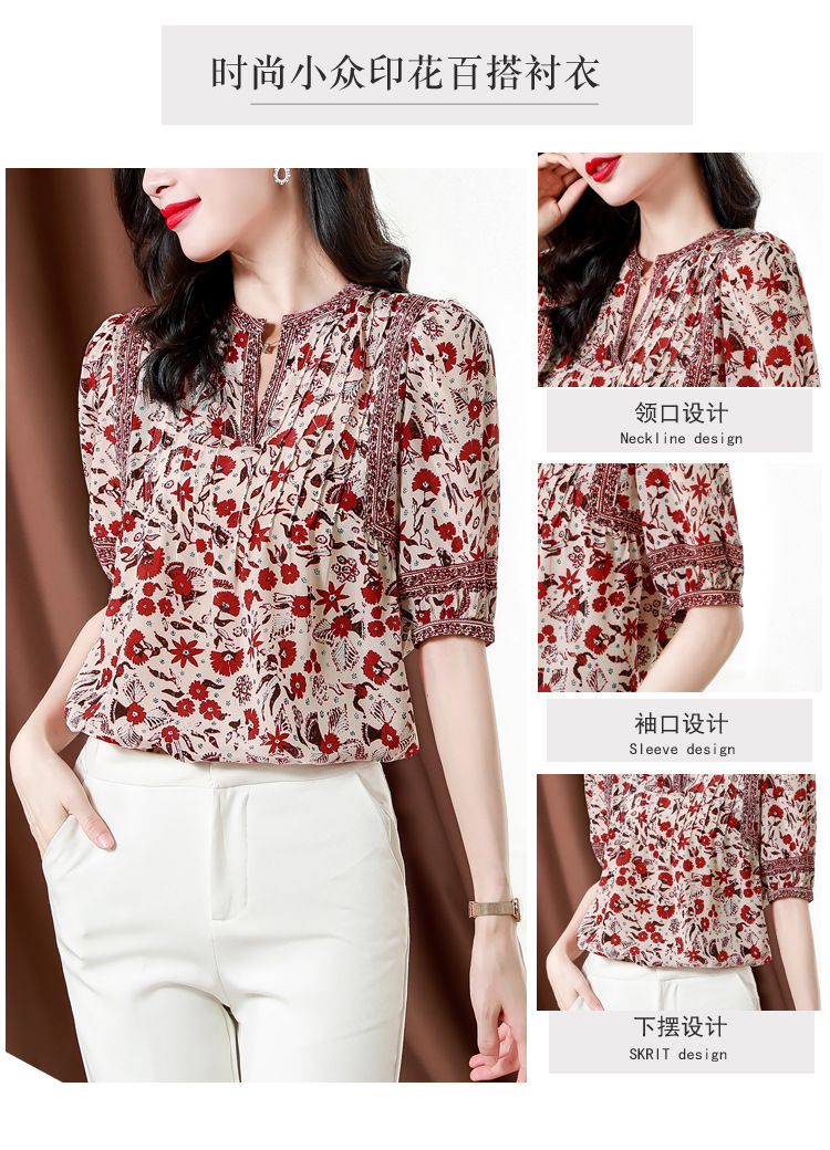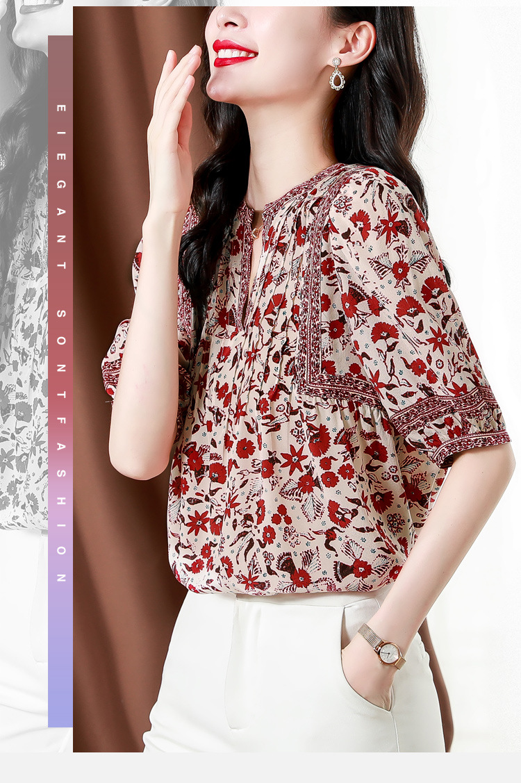 异域风印花雪纺衫,中袖宽松显瘦小衫KQL-B43N8202