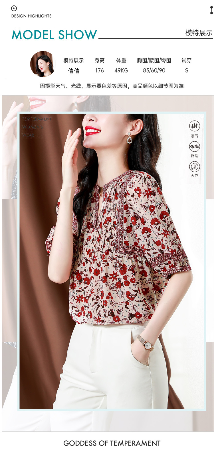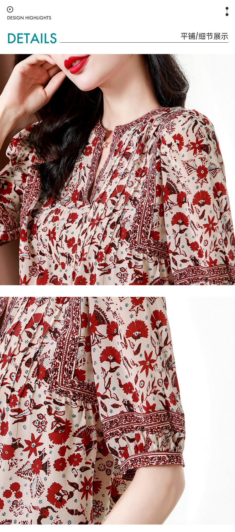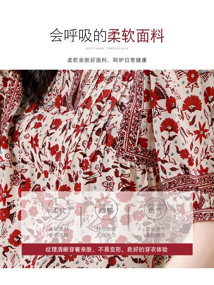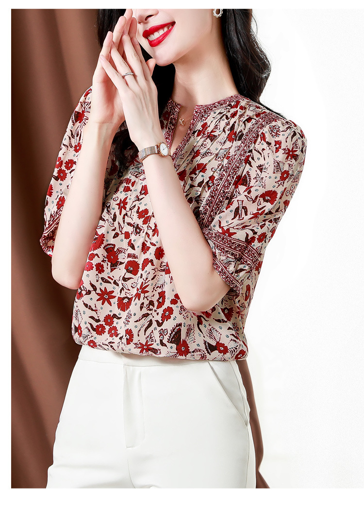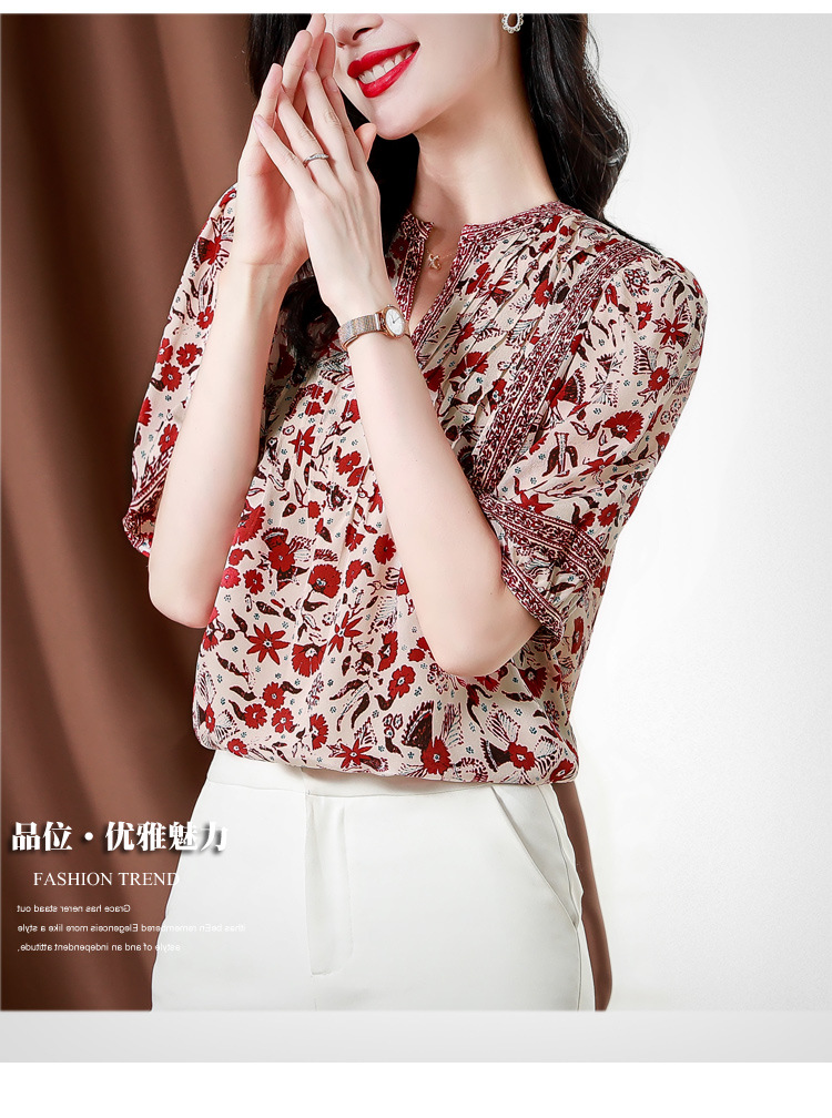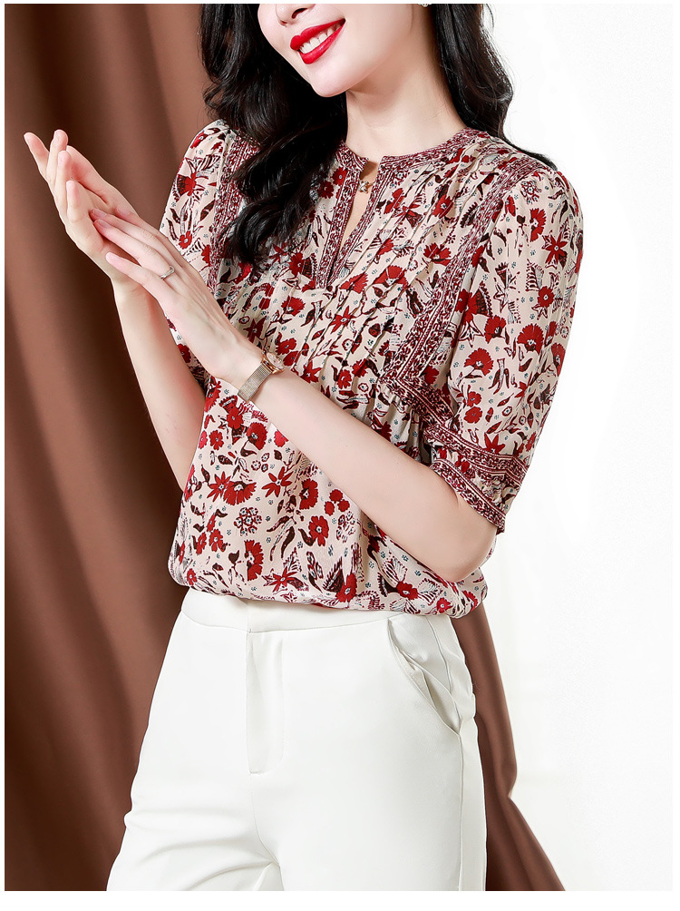 异域风印花雪纺衫,中袖宽松显瘦小衫KQL-B43N8202